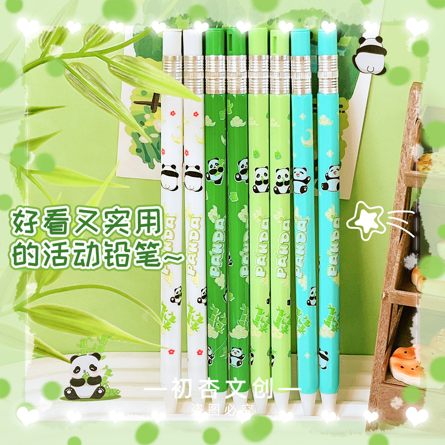 블루 프린트 8801 만화 팬더 대나무 2.0 자동 연필 두꺼운 심 학생 샤프 펜슬 상품 선물 펜스토어 가기