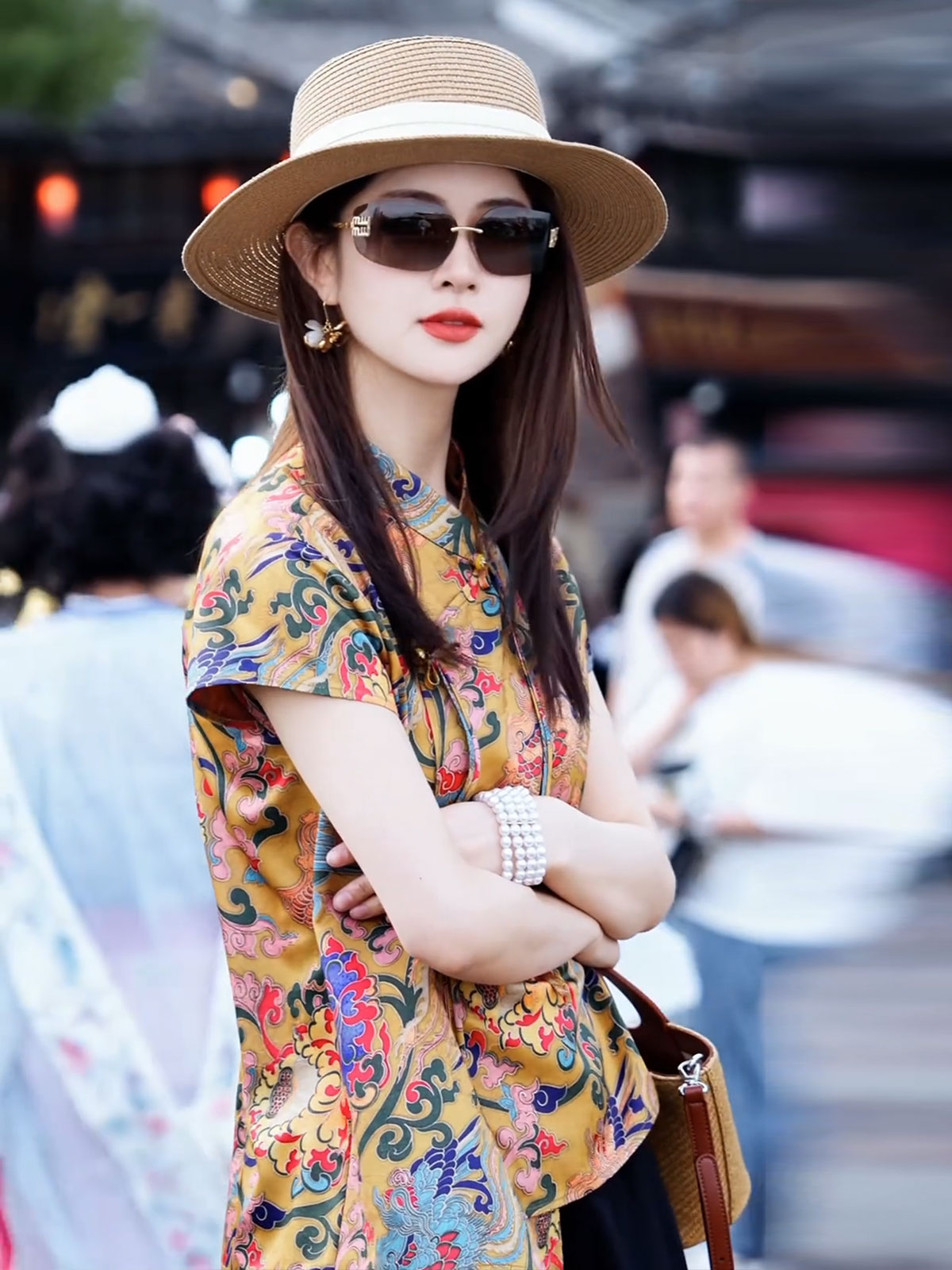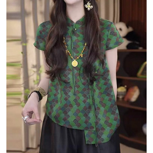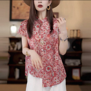 새로운 중국 스타일 여성 의류 2025 새로운 스타일의 작은 셔츠 디자인 틈새 반팔 프린트 셔츠 버튼 업 칼라 탑스토어 가기