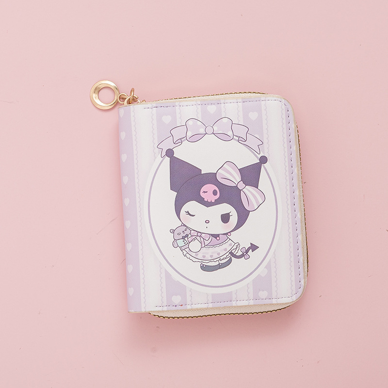 국경 간 배송 소녀 짧은 스타일 Kuromi Sanrio 학생 만화 어린이 지갑 동전 지갑 ID 가방 카드 가방스토어 가기