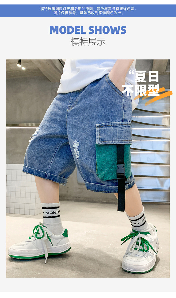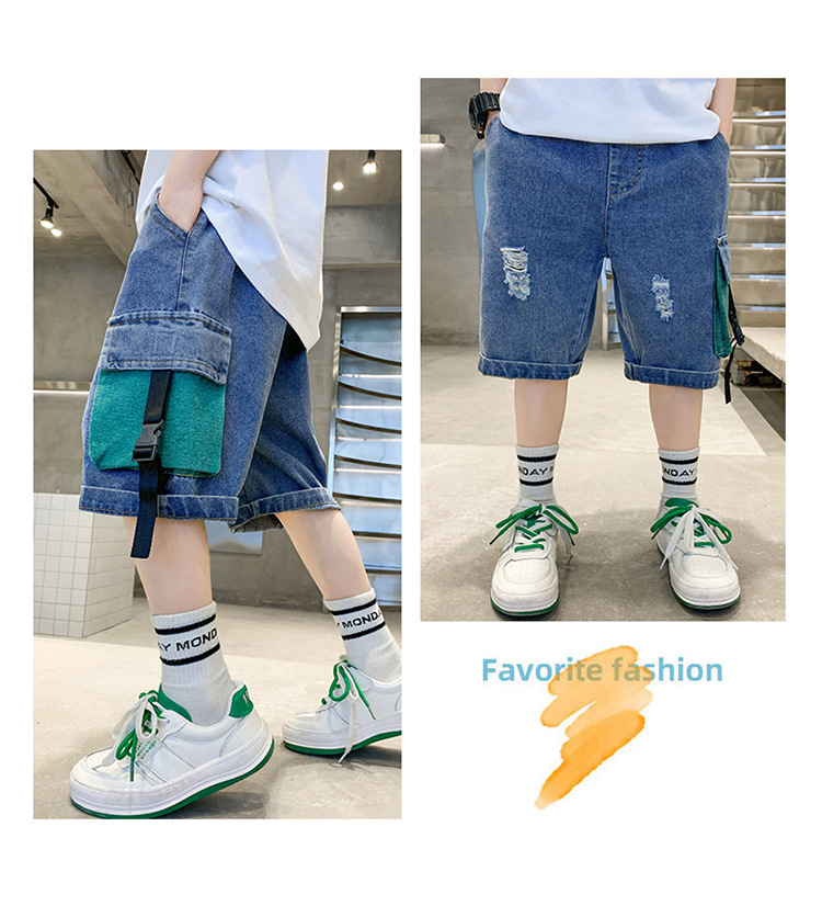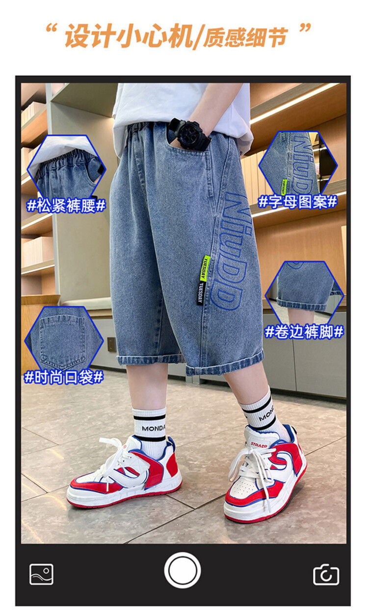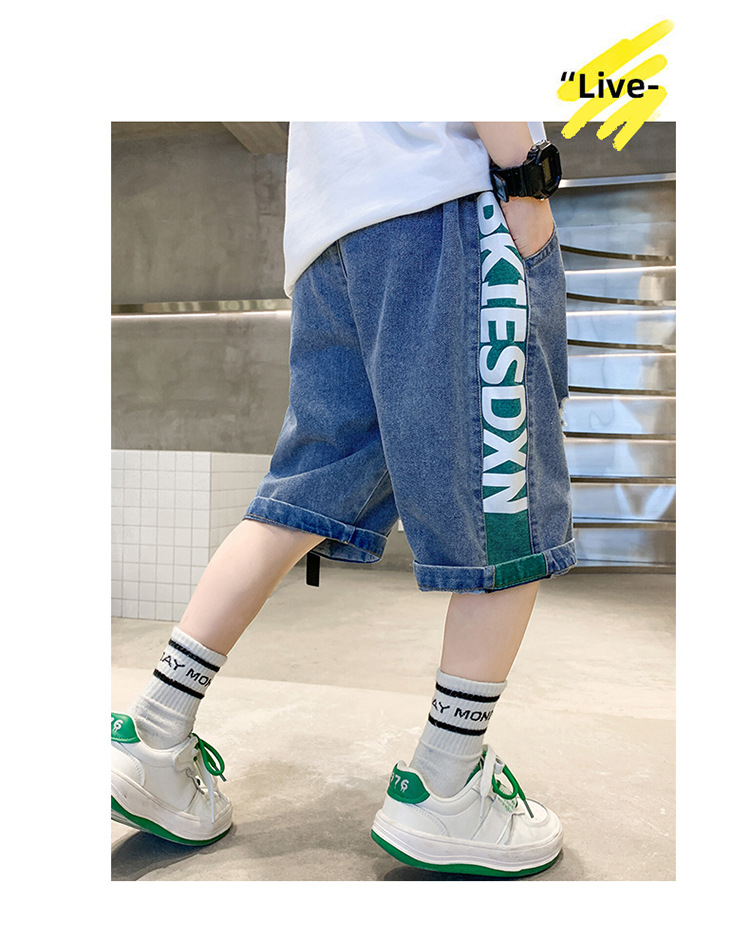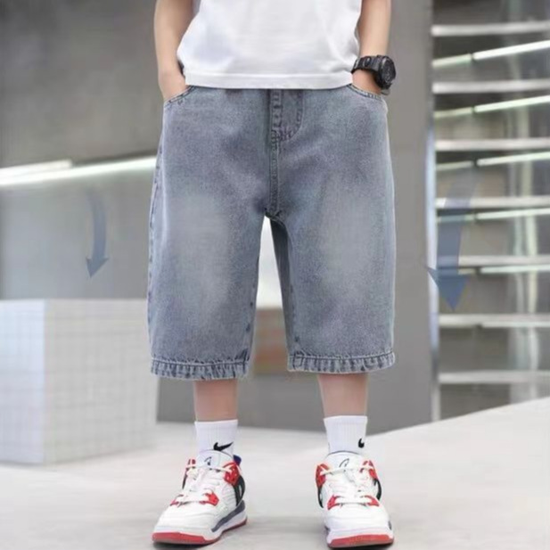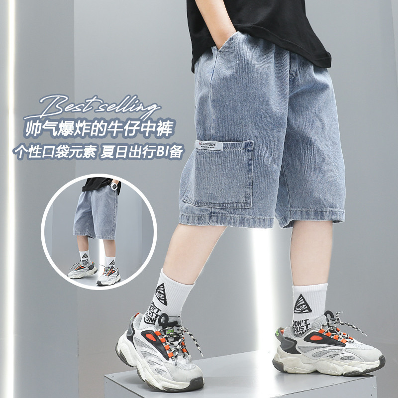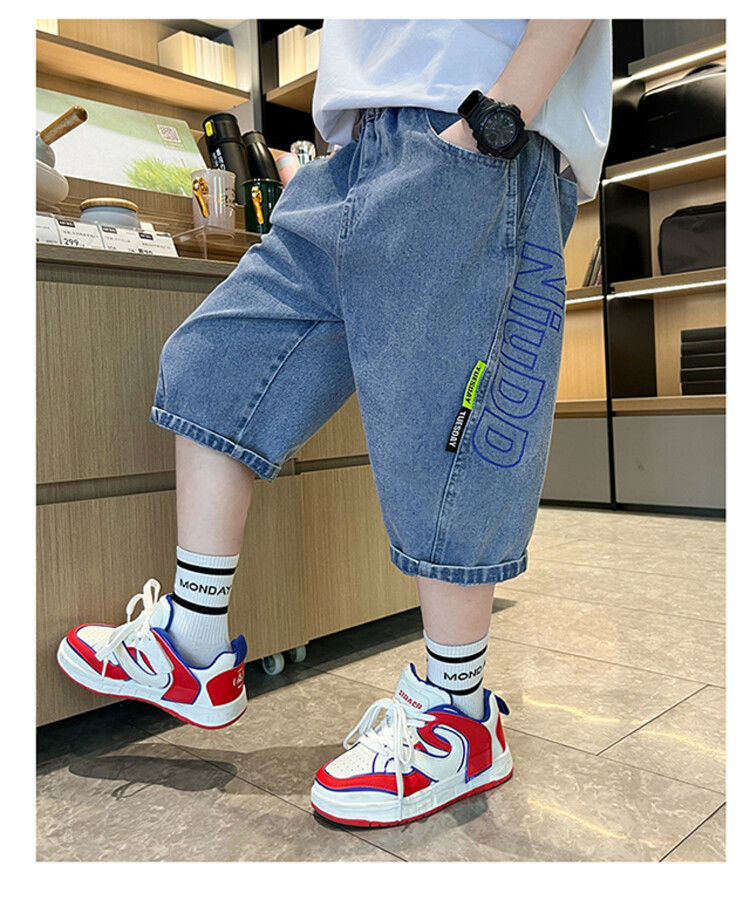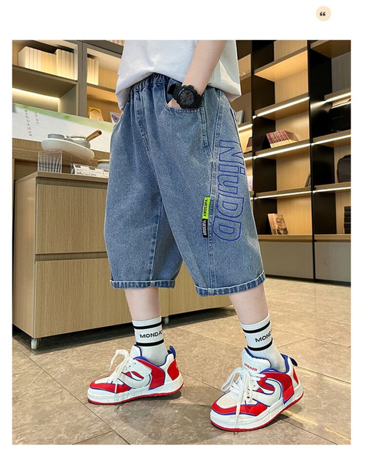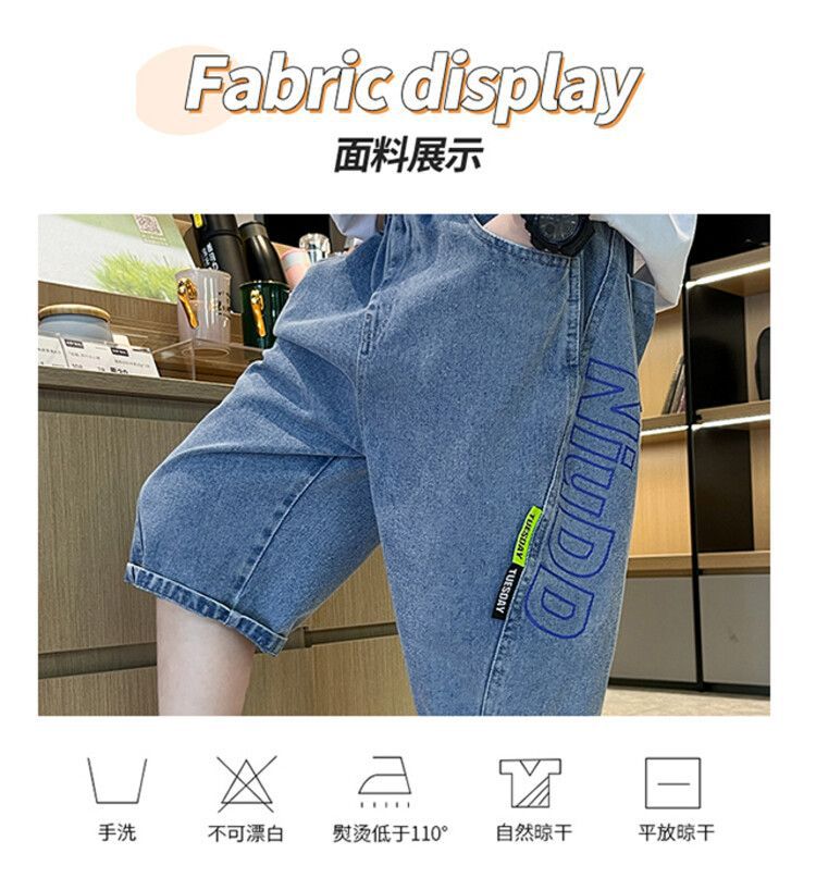 남아용 반바지, 청바지, 무릎 위 7부 바지, 얇은, 중대형 남아용 여름 아우터, 루즈하고 멋진 중간 길이 바지, 트렌디함스토어 가기