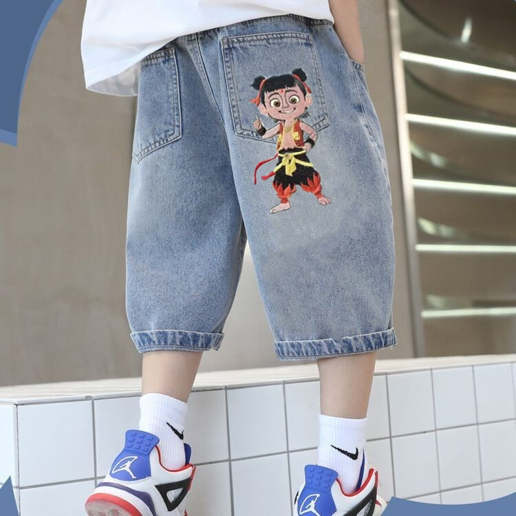 남아용 반바지, 청바지, 무릎 위 7부 바지, 얇은, 중대형 남아용 여름 아우터, 루즈하고 멋진 중간 길이 바지, 트렌디함