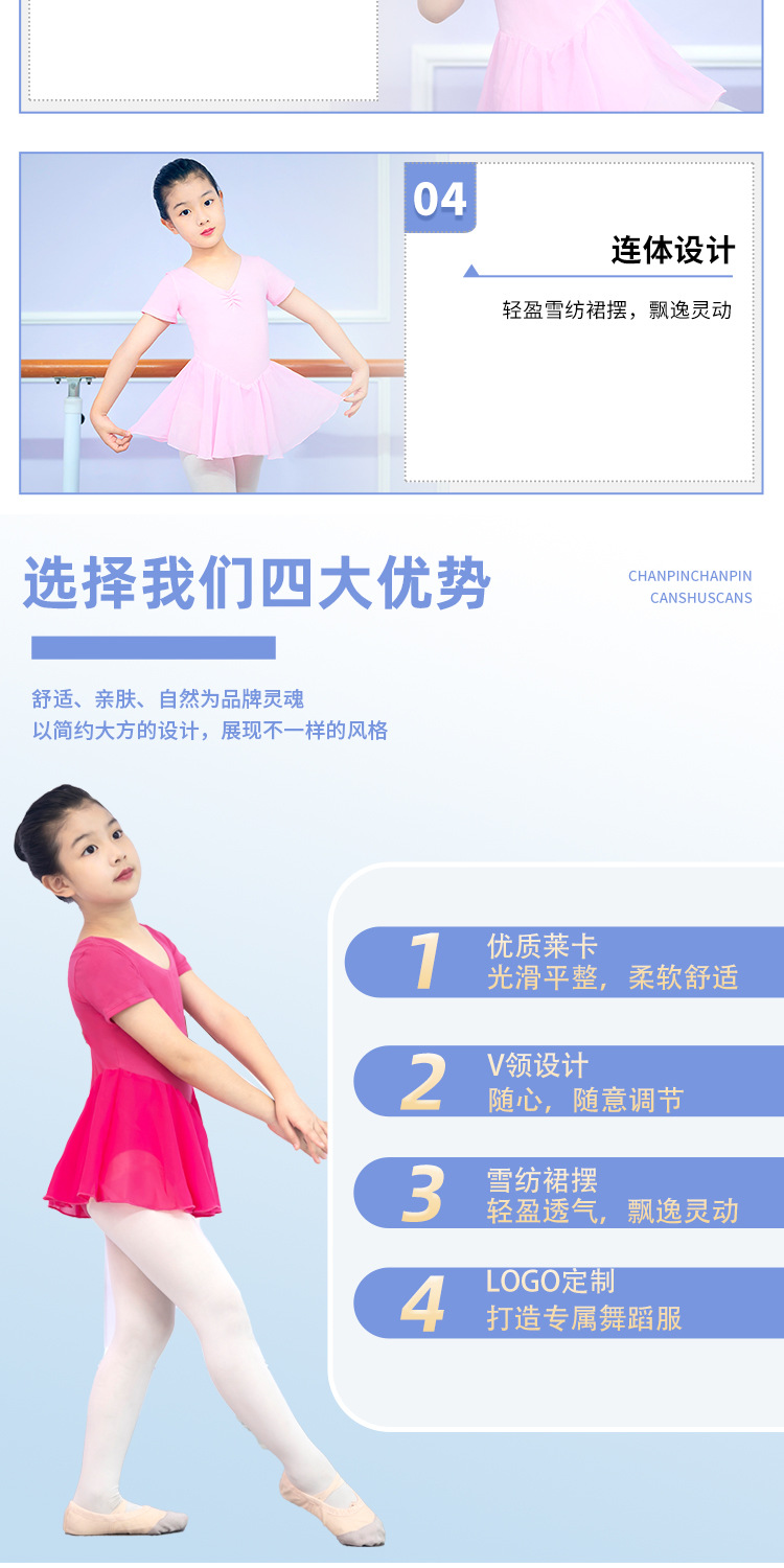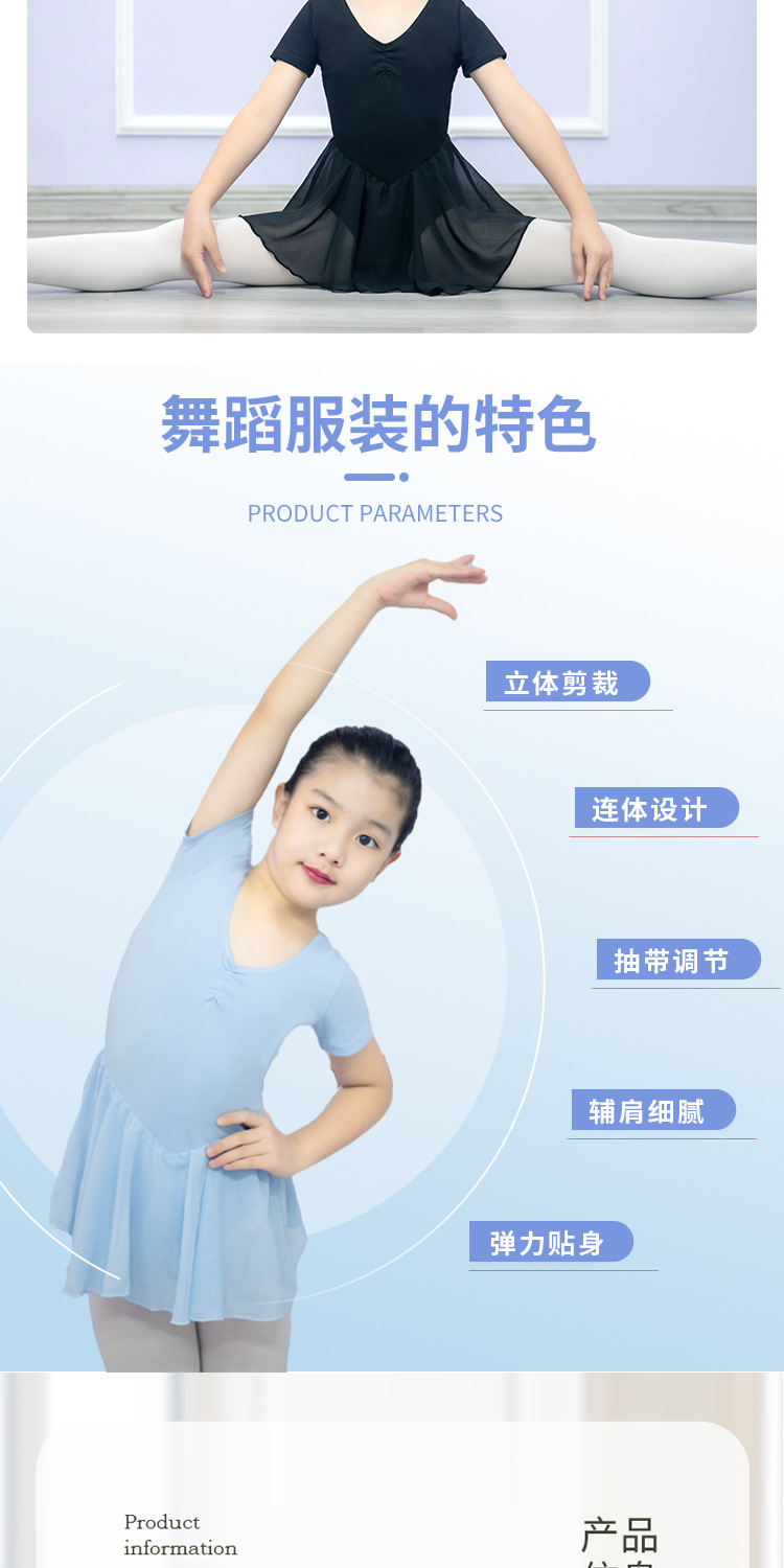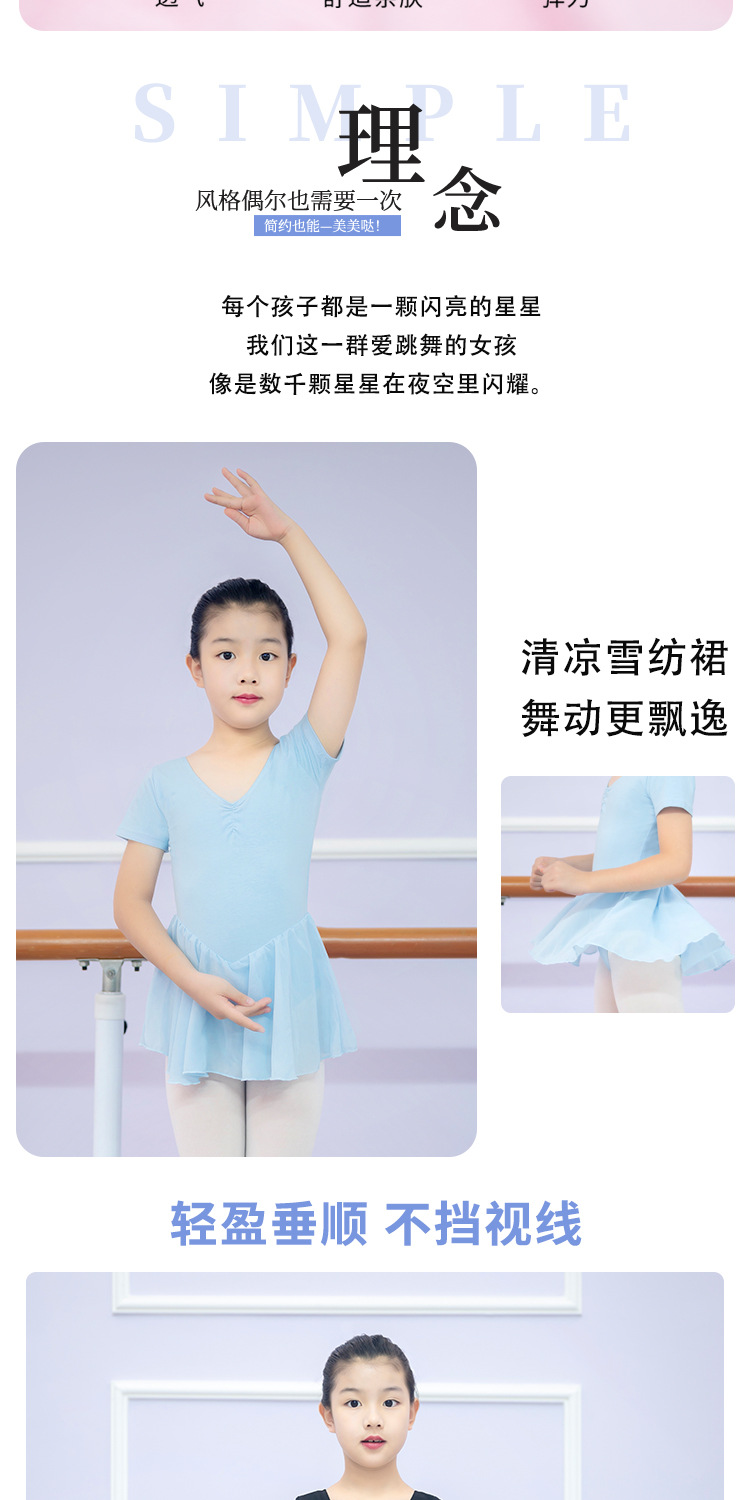 아동용 댄스 연습복, 바디 의류, 여아 발레 댄스 의류, 반팔 중국 무용 여름 신작 아동복스토어 가기