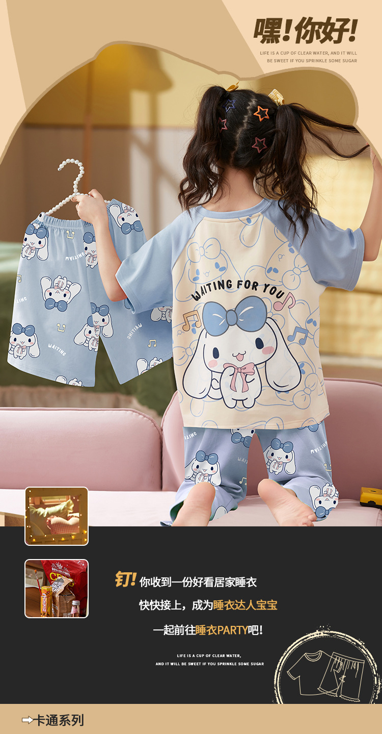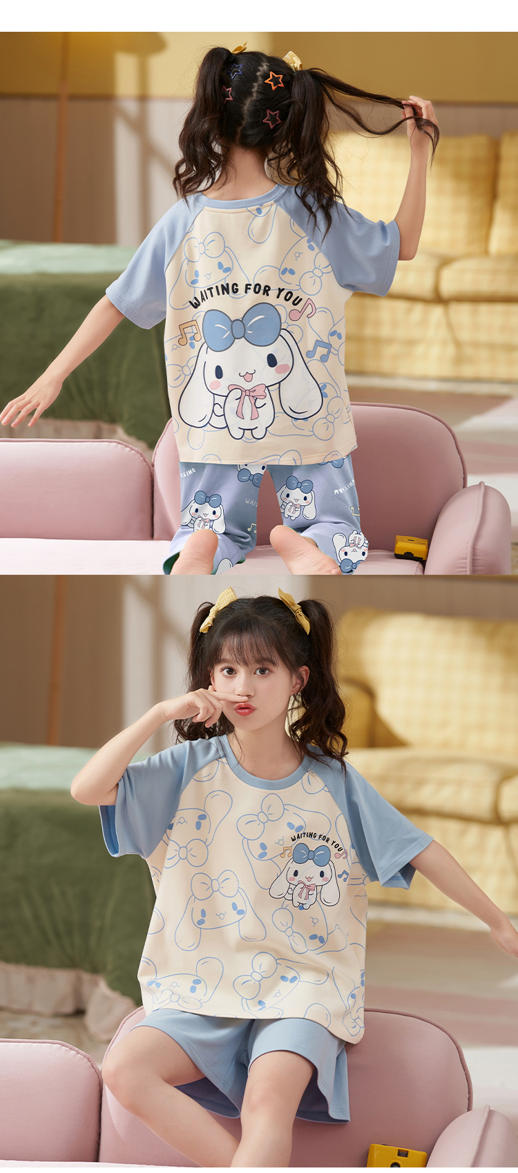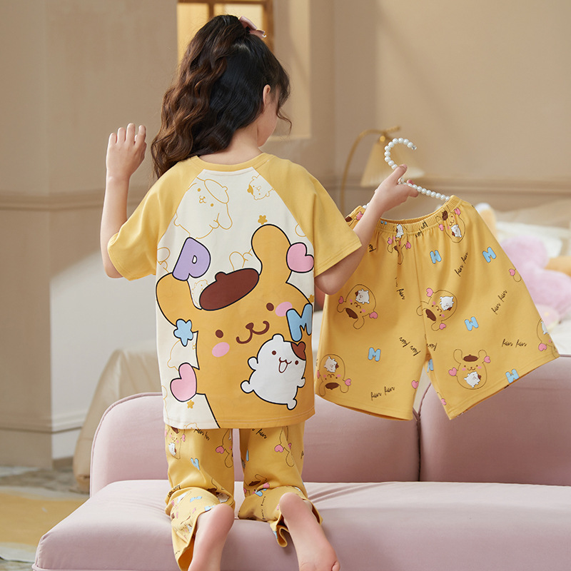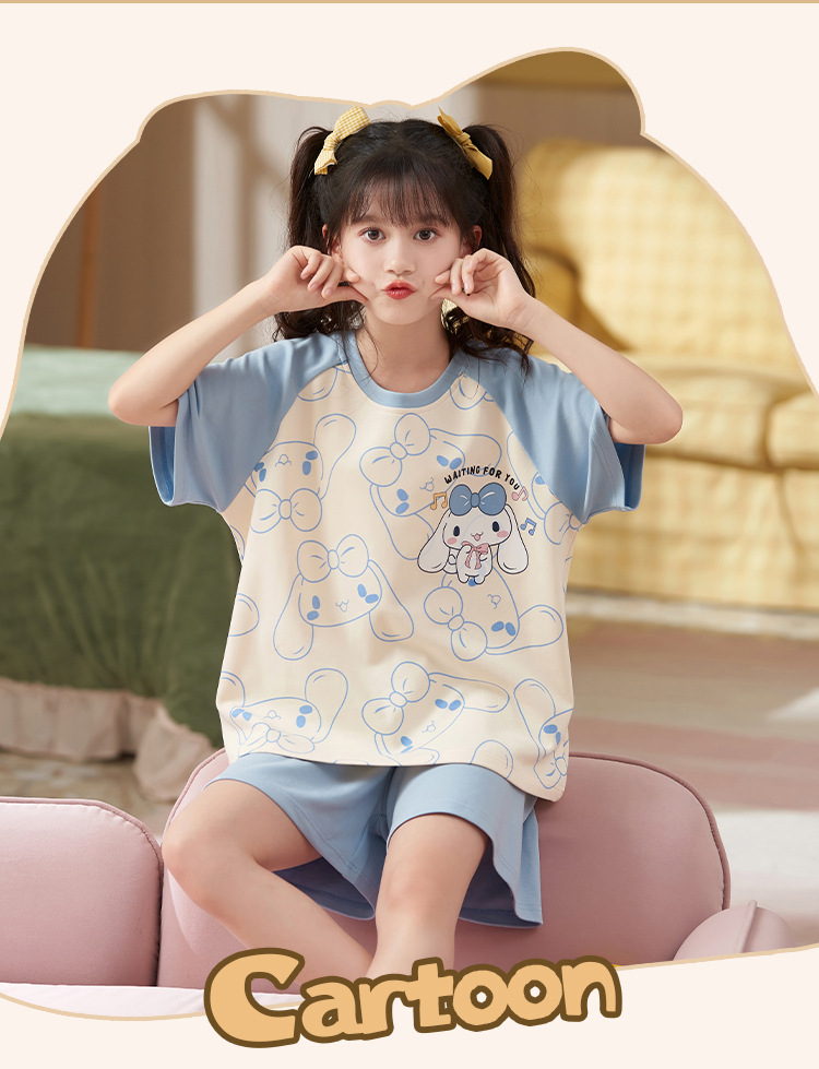 여름 잠옷 소녀 얇은 반팔 중대형 어린이 공주 스타일 달콤한 아기 3 피스 세트 여름 소녀 가정 의류스토어 가기