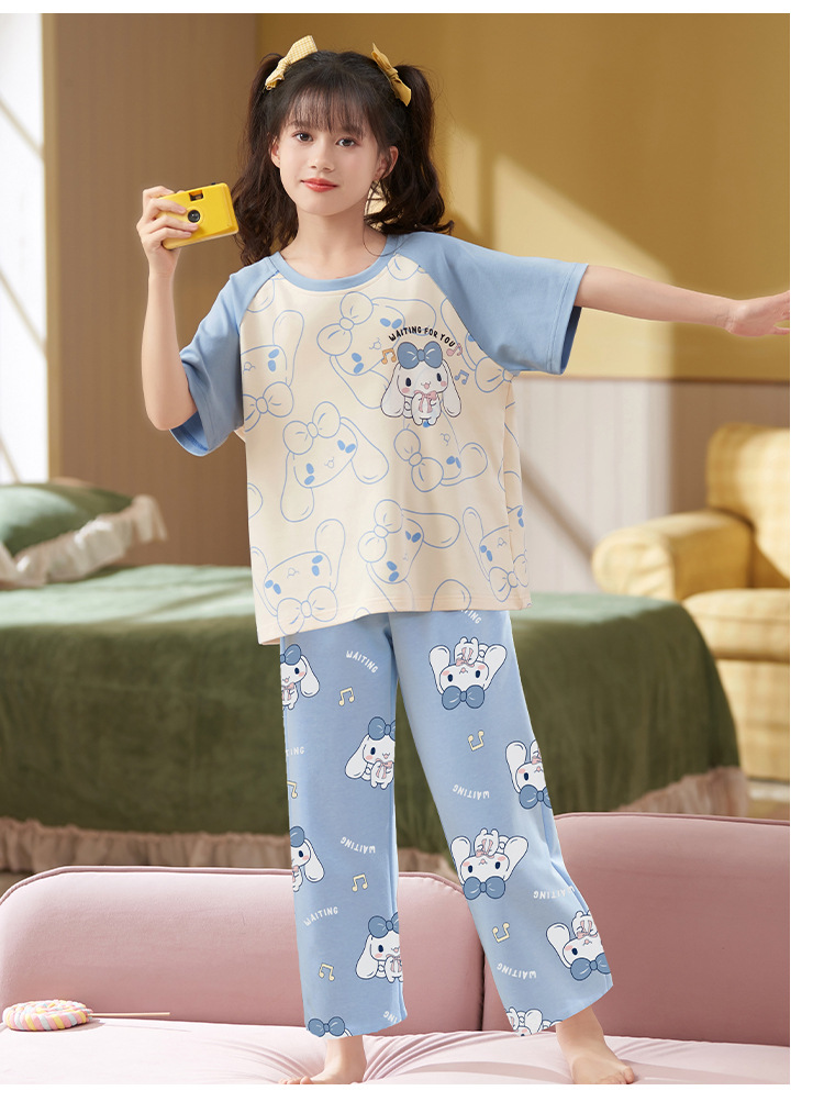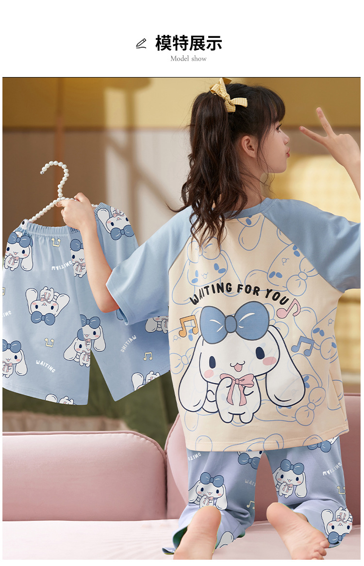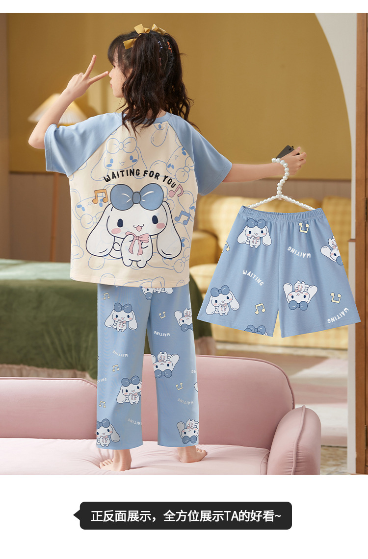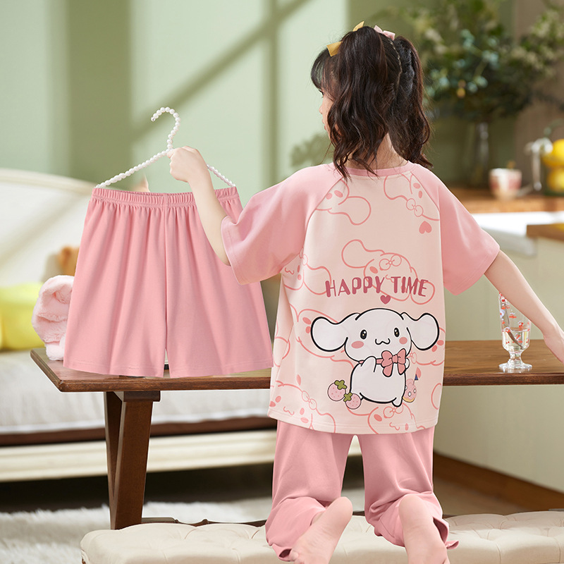 여름 잠옷 소녀 얇은 반팔 중대형 어린이 공주 스타일 달콤한 아기 3 피스 세트 여름 소녀 가정 의류
