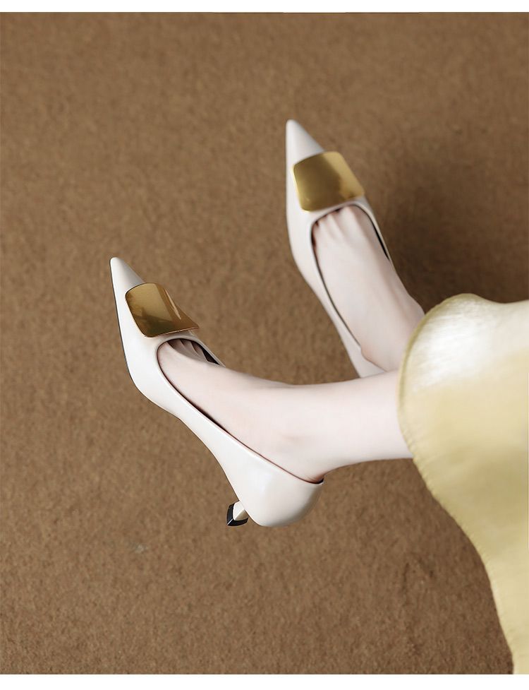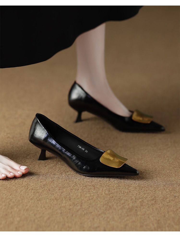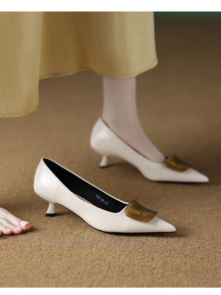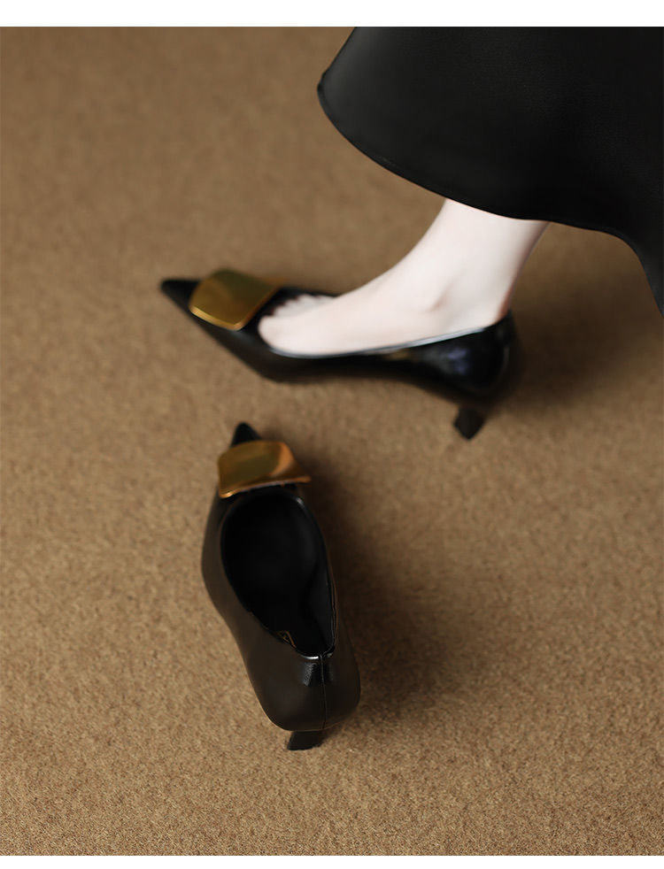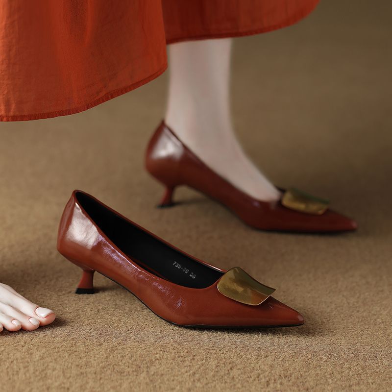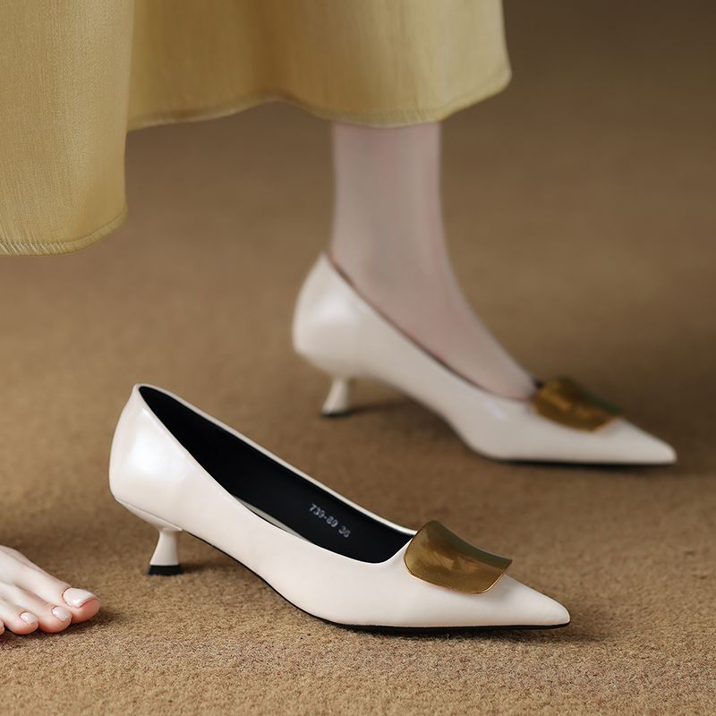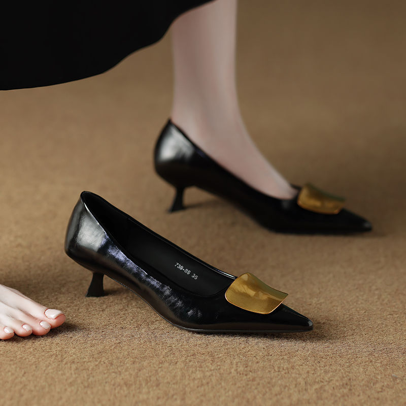 2025년 신형 부드러운 가죽 프렌치 스타일 작은 구두, 슬립온, 뾰족한 앞코, 깊이가 얕고 아름답고 피곤하지 않은 하이힐 통근화스토어 가기