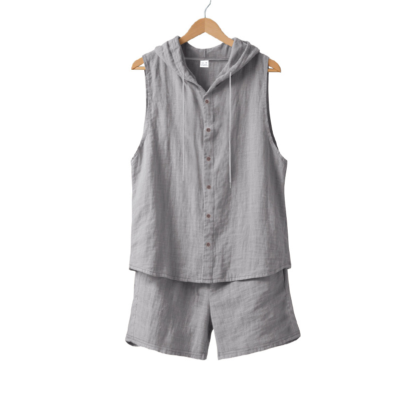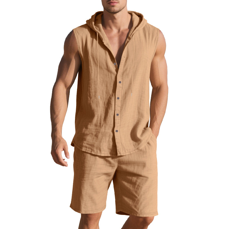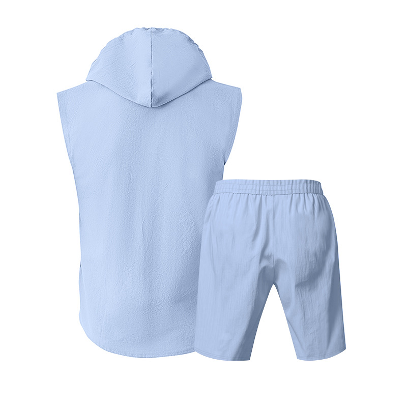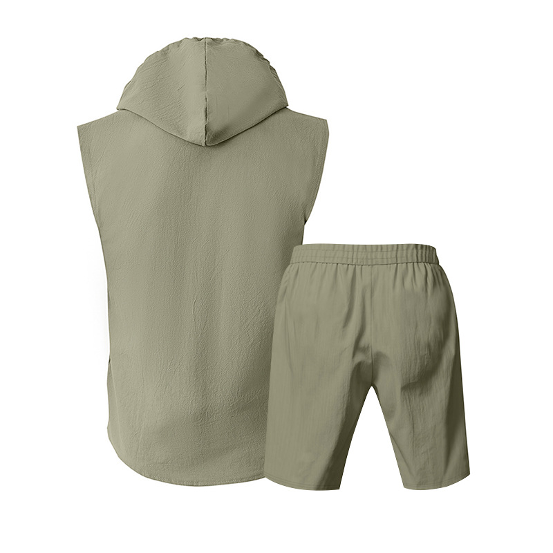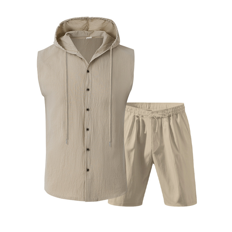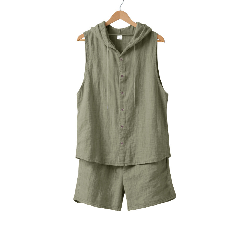 25 크로스보더 아마존 여름 린넨 슈트 남성 캐주얼 민소매 조끼 후드 린넨 셔츠 반바지 슈트