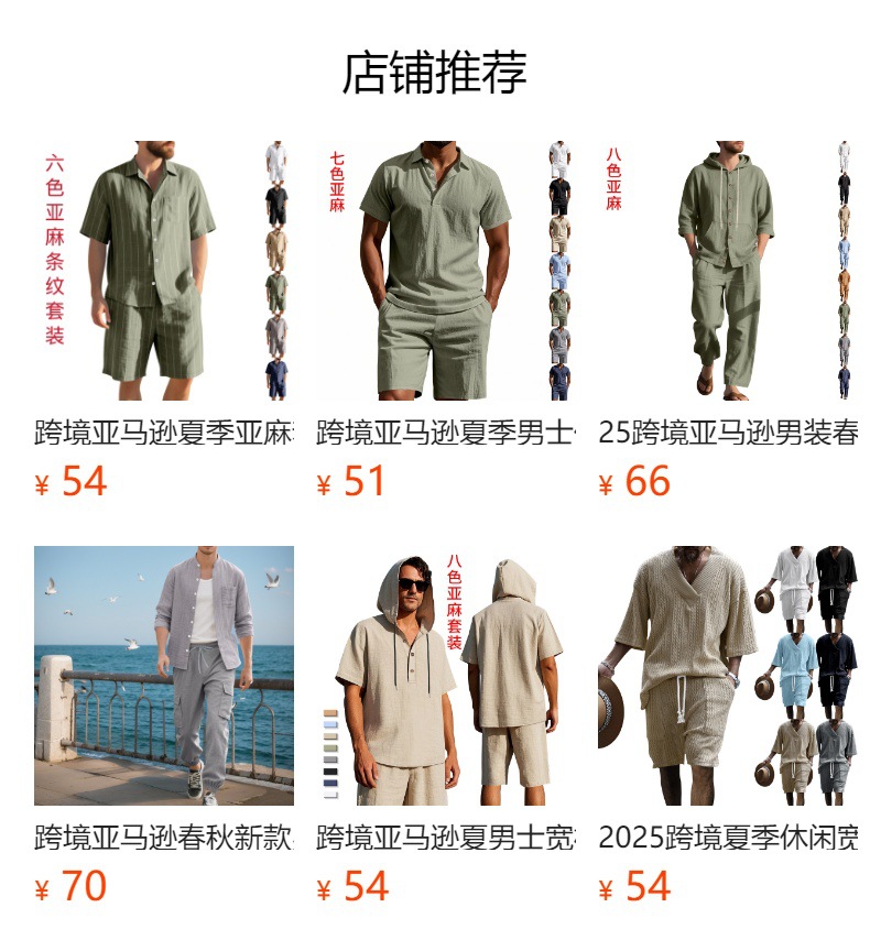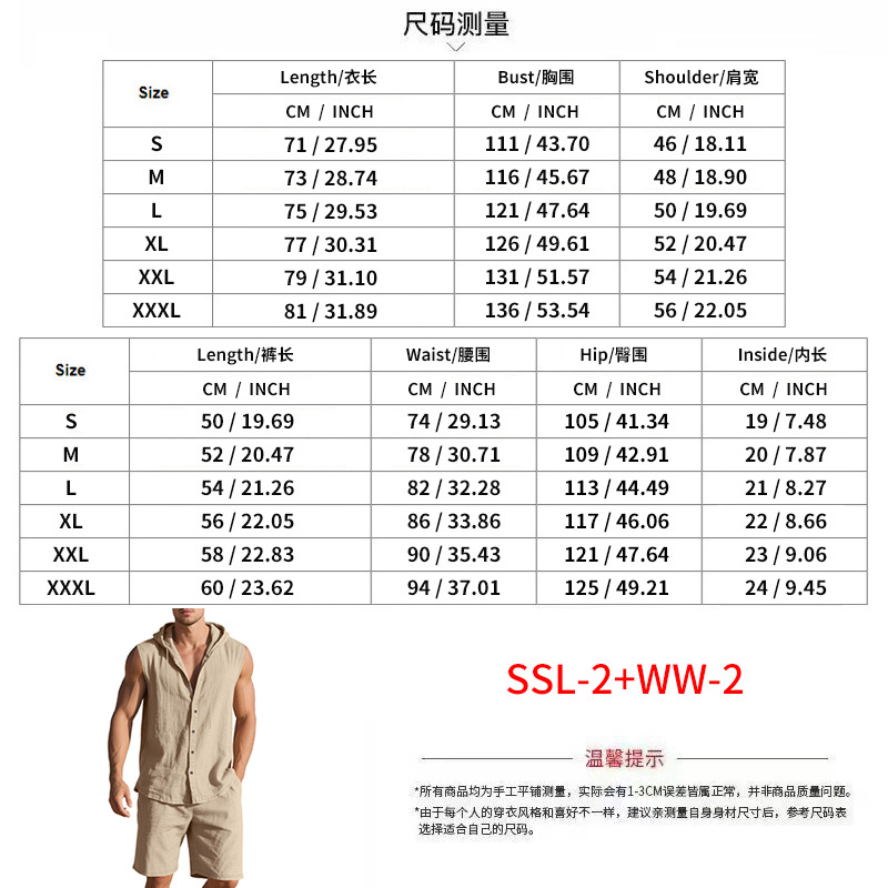 25 크로스보더 아마존 여름 린넨 슈트 남성 캐주얼 민소매 조끼 후드 린넨 셔츠 반바지 슈트스토어 가기