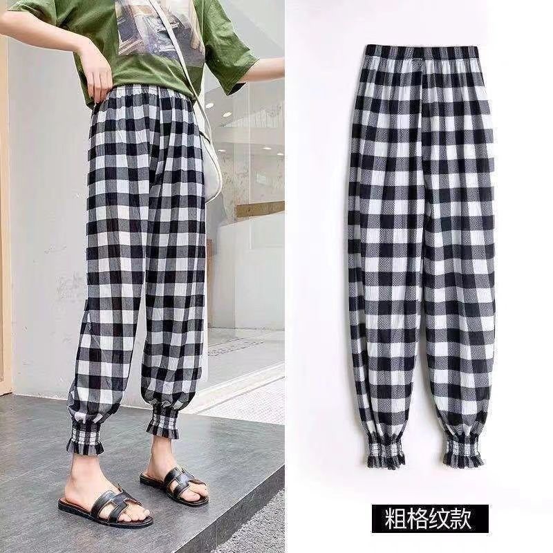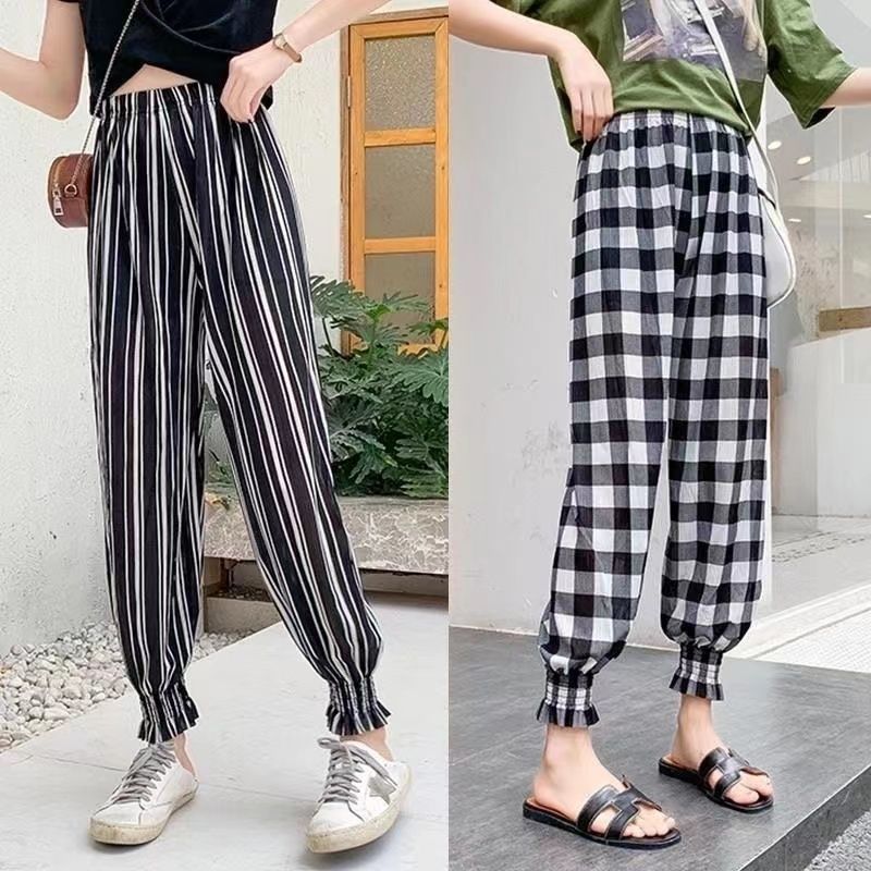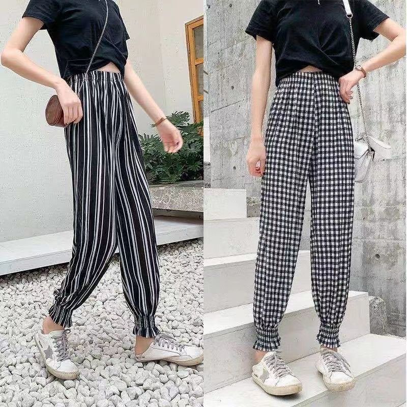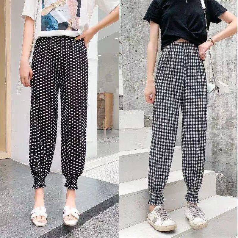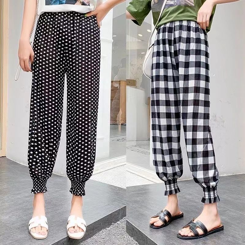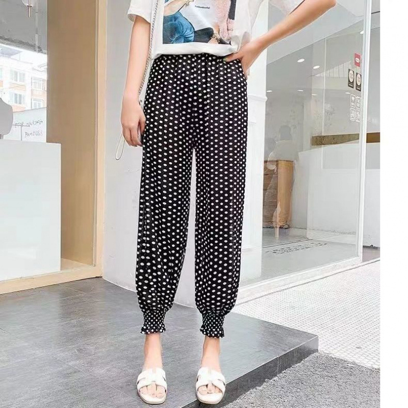 여름 여성용 얇은 루즈 팬츠 9부 블루머 당근 팬츠 하렘 팬츠 학생 아이스 실크 모기스토어 가기