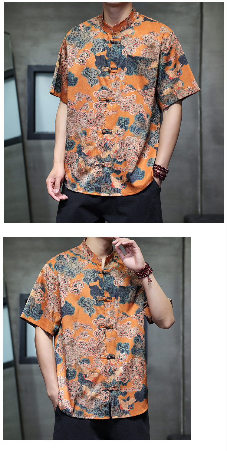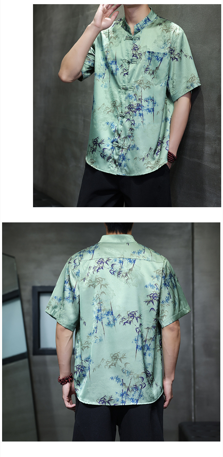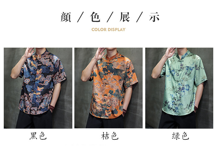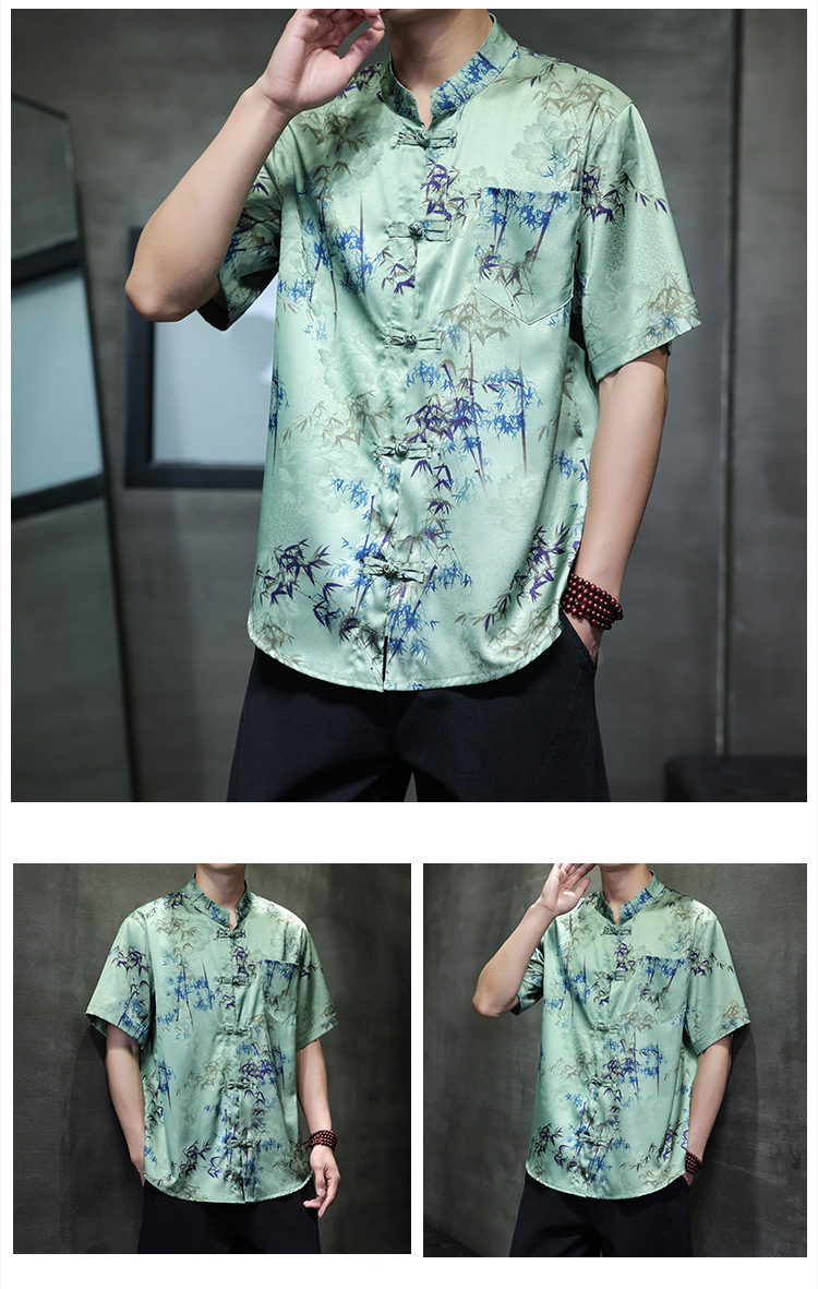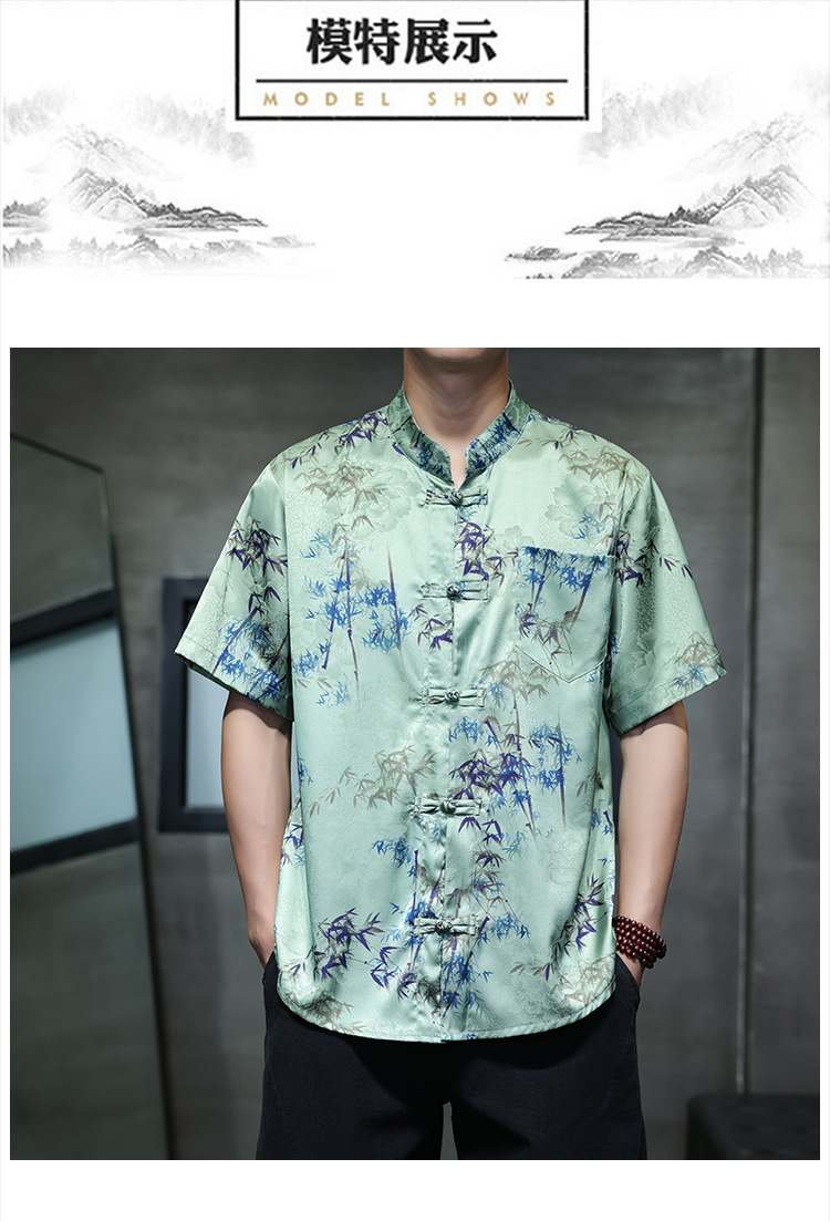 중국 스타일 여름 새로운 중국 스타일 얇은 남성용 얼음 실크 느슨한 맞춤형 통기성 대형 반팔 셔츠 Tang 정장 버클스토어 가기