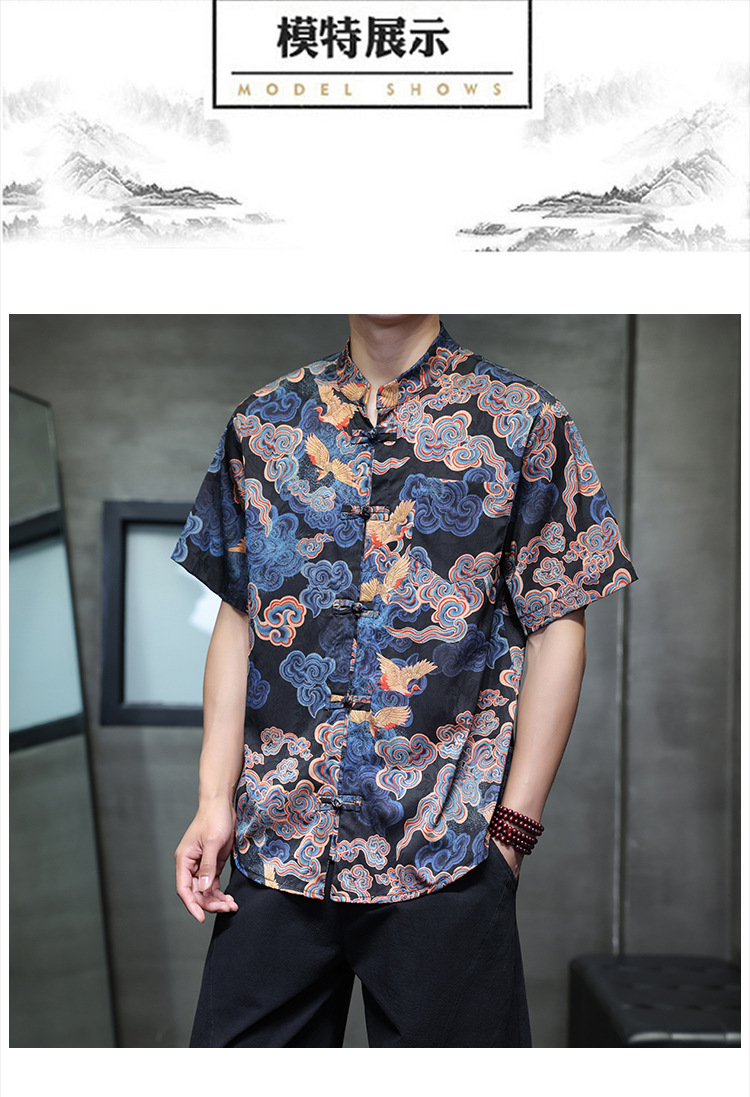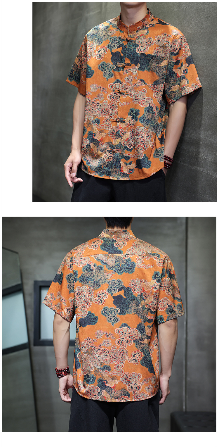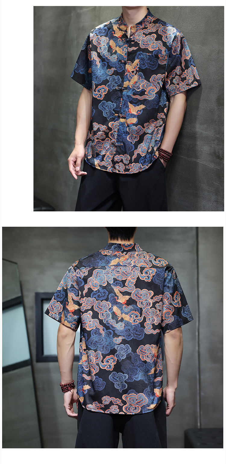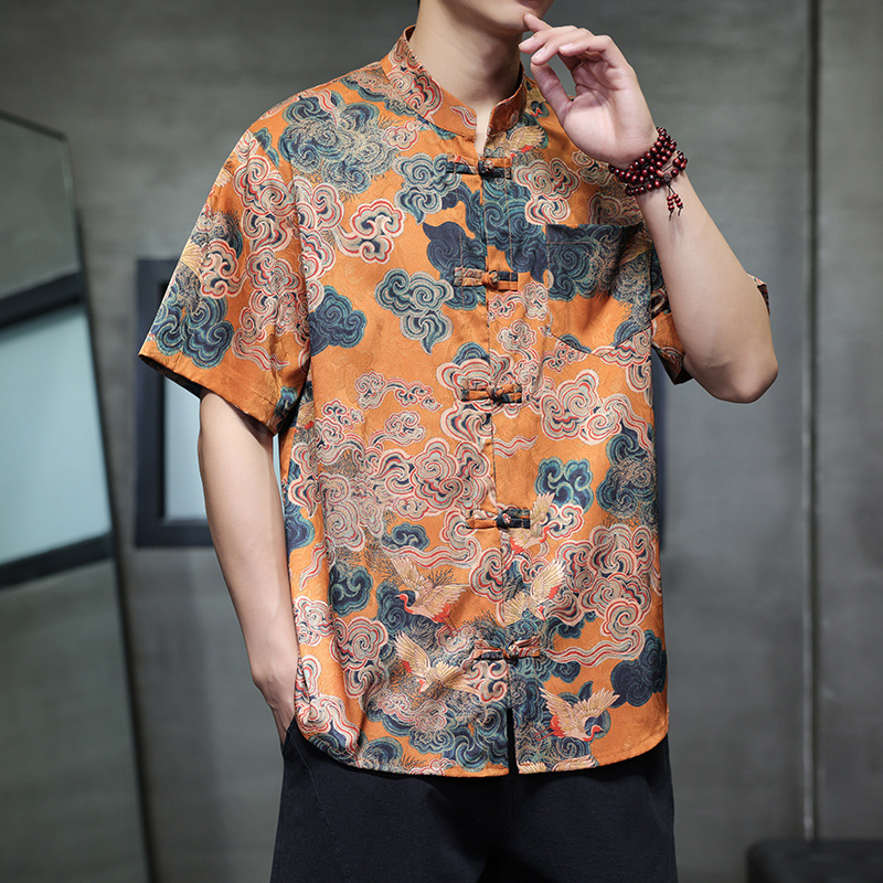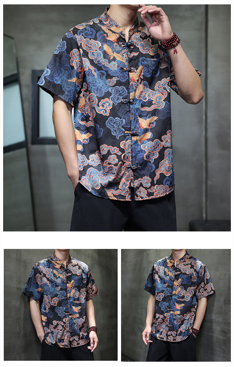 중국 스타일 여름 새로운 중국 스타일 얇은 남성용 얼음 실크 느슨한 맞춤형 통기성 대형 반팔 셔츠 Tang 정장 버클스토어 가기