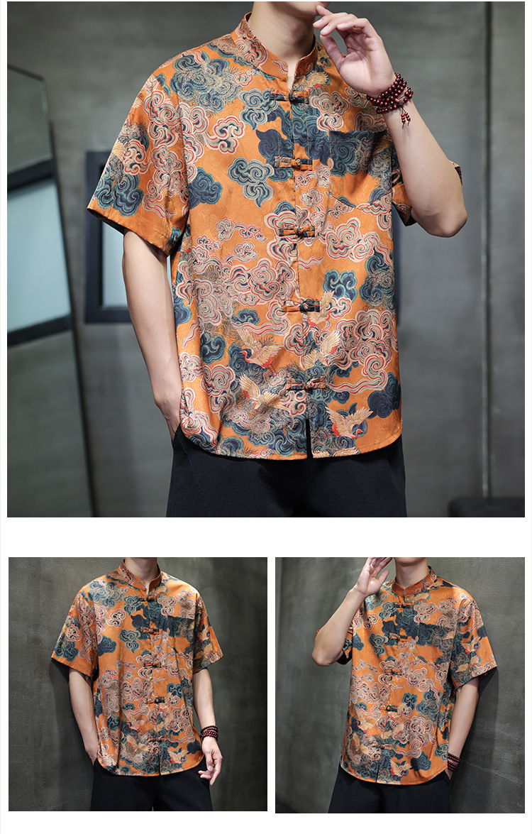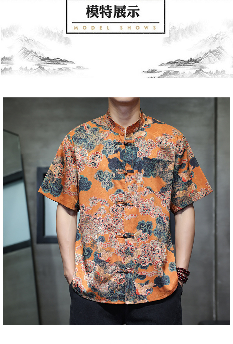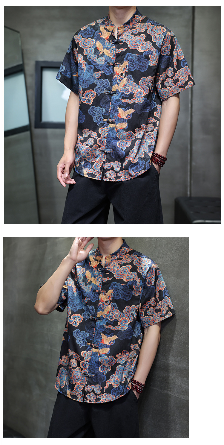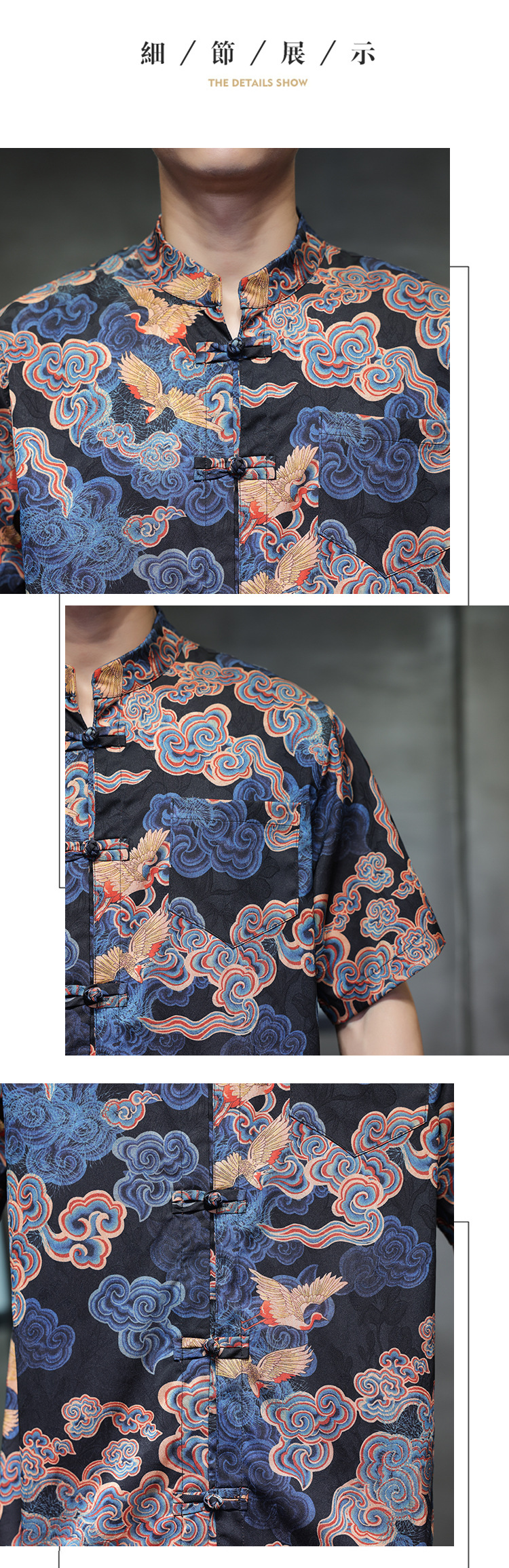 중국 스타일 여름 새로운 중국 스타일 얇은 남성용 얼음 실크 느슨한 맞춤형 통기성 대형 반팔 셔츠 Tang 정장 버클스토어 가기