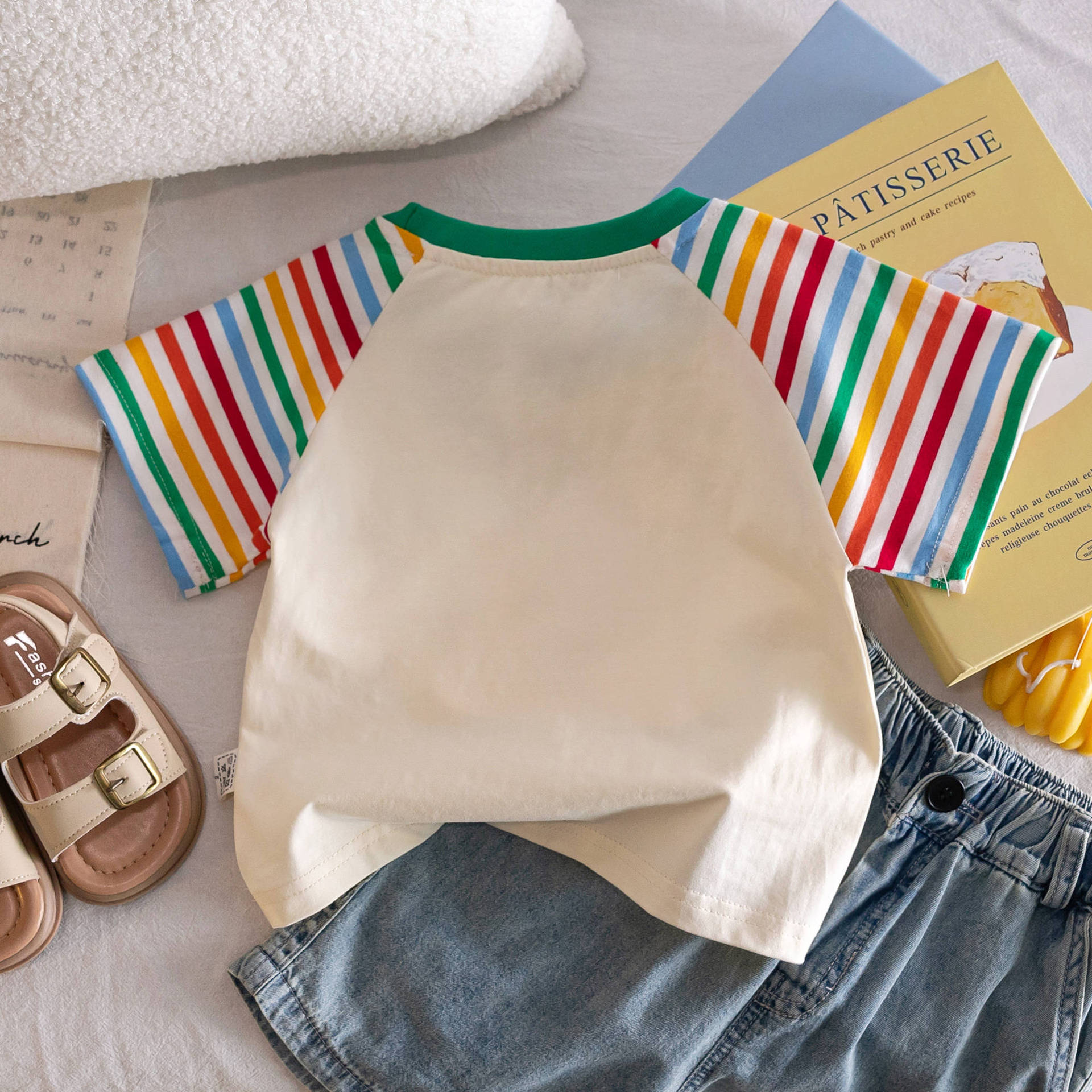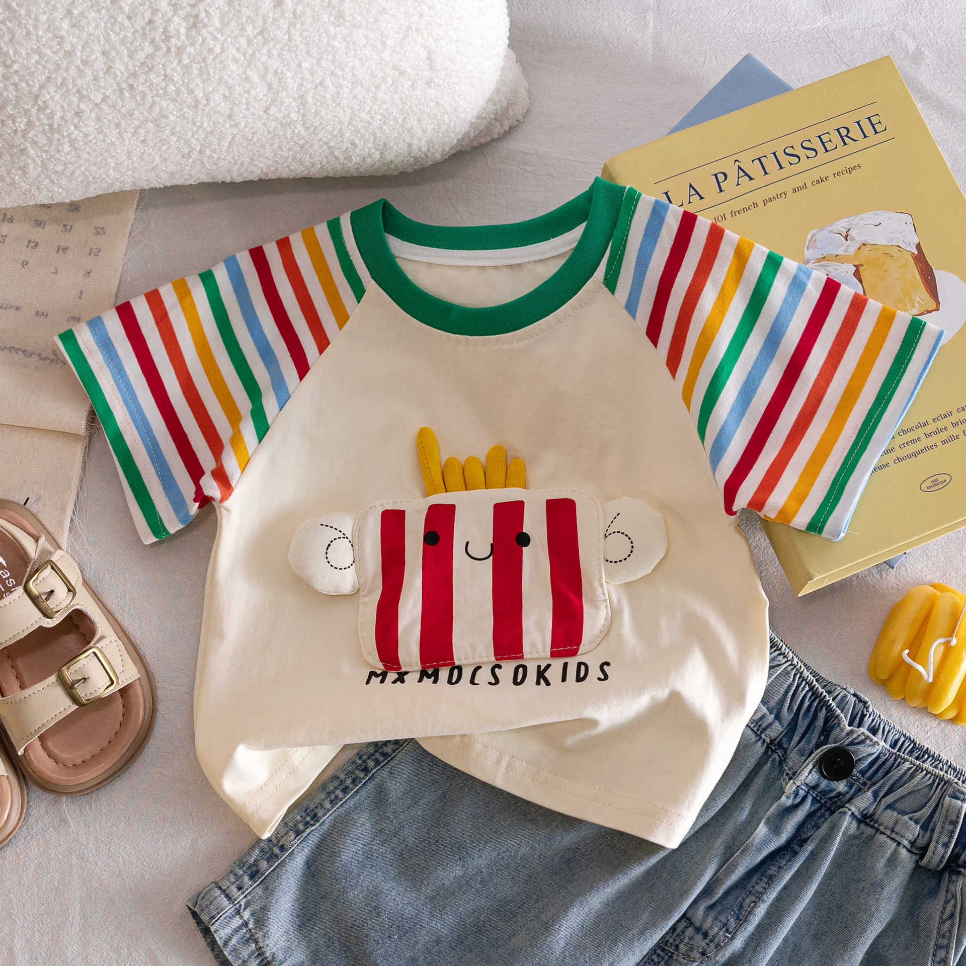 소년 반팔 티셔츠 여름 2025 새로운 어린이 잘 생긴 반팔 탑 소년 아기 옷 여름 바닥 셔츠스토어 가기