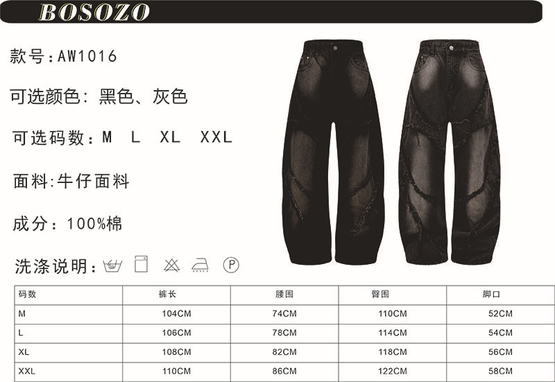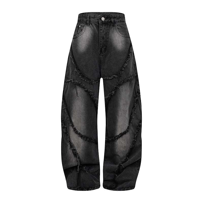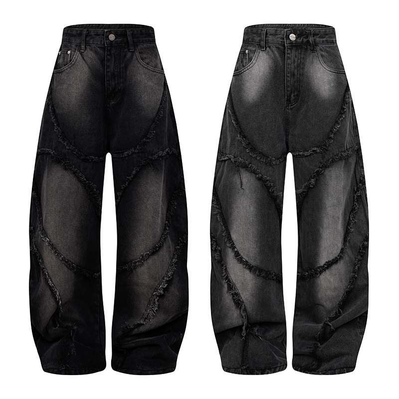 아메리칸 트렌디 브랜드 헤비듀티 스플라이스 로우 엣지 세이버 청바지 남성용 뉴 하이 스트리트 루즈 트렌디 와이드 레그 롱 팬츠스토어 가기