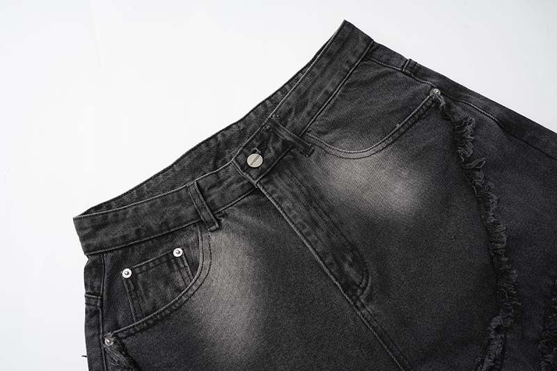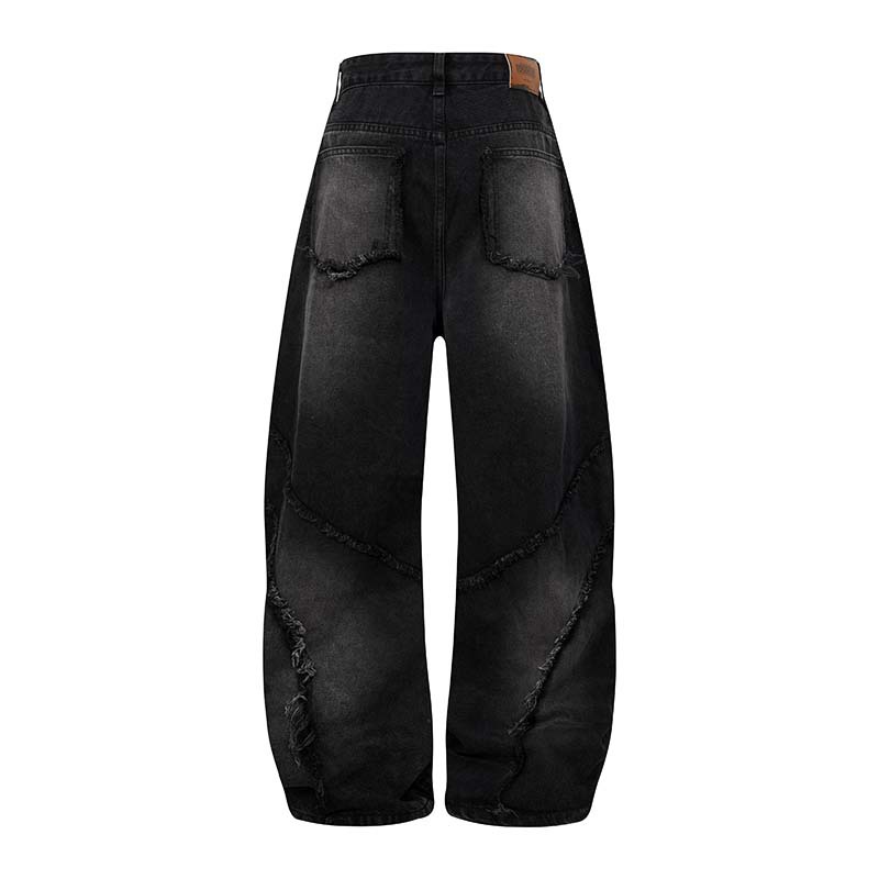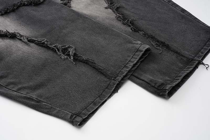 아메리칸 트렌디 브랜드 헤비듀티 스플라이스 로우 엣지 세이버 청바지 남성용 뉴 하이 스트리트 루즈 트렌디 와이드 레그 롱 팬츠
