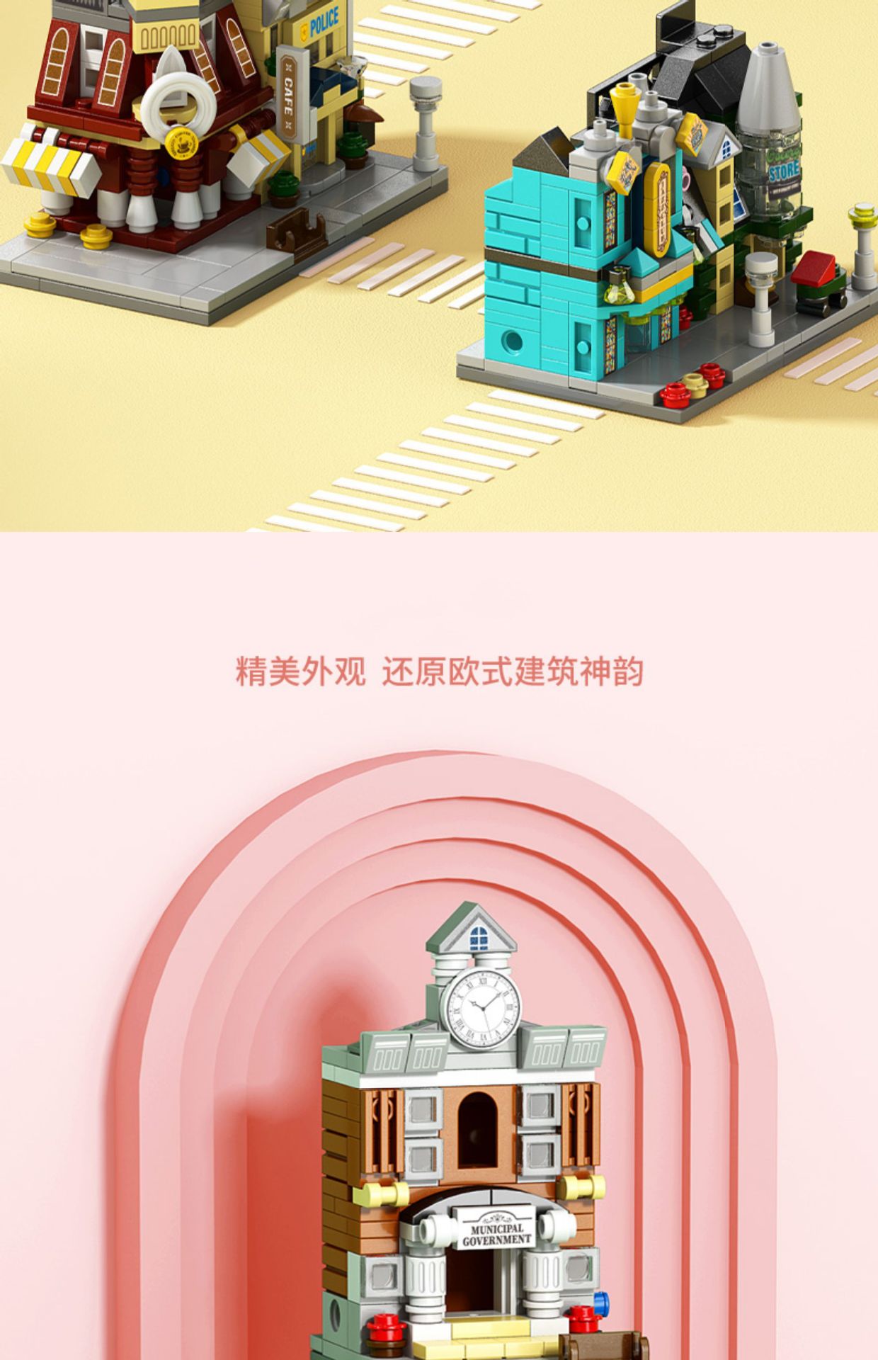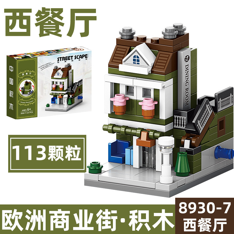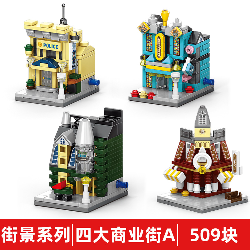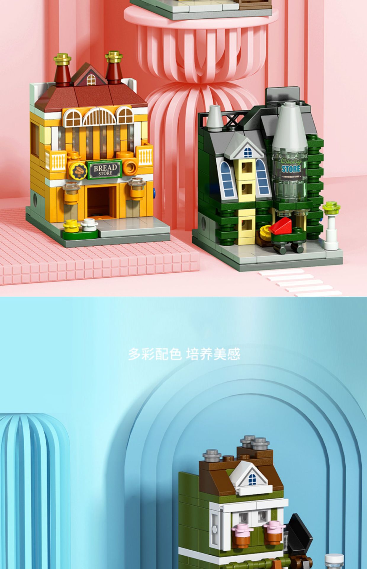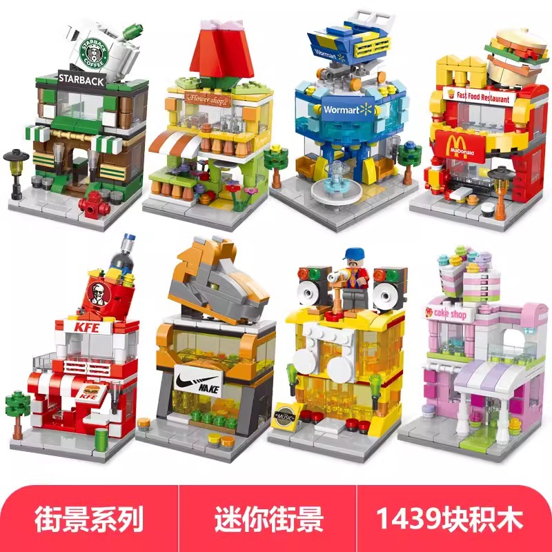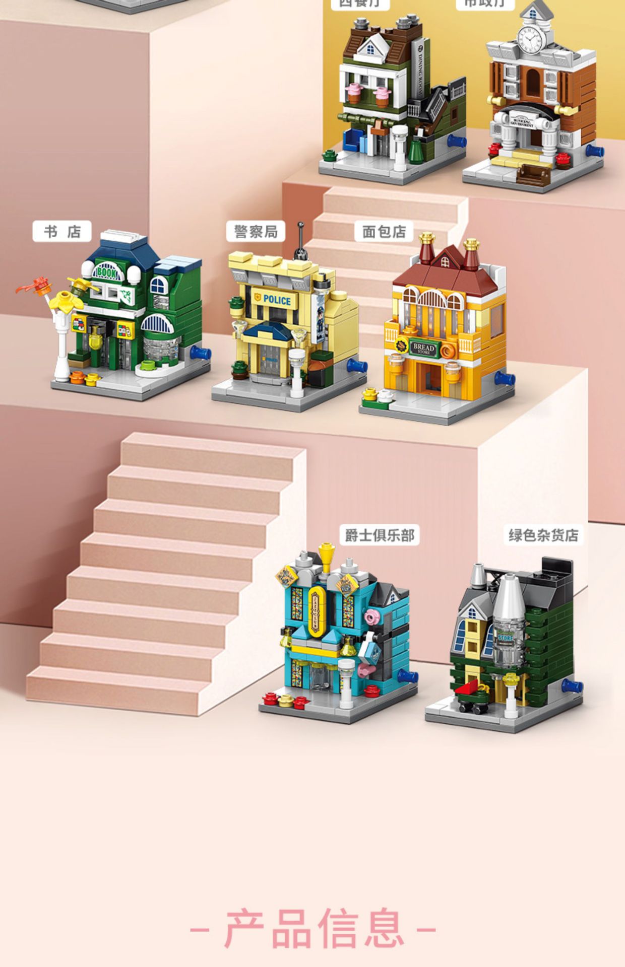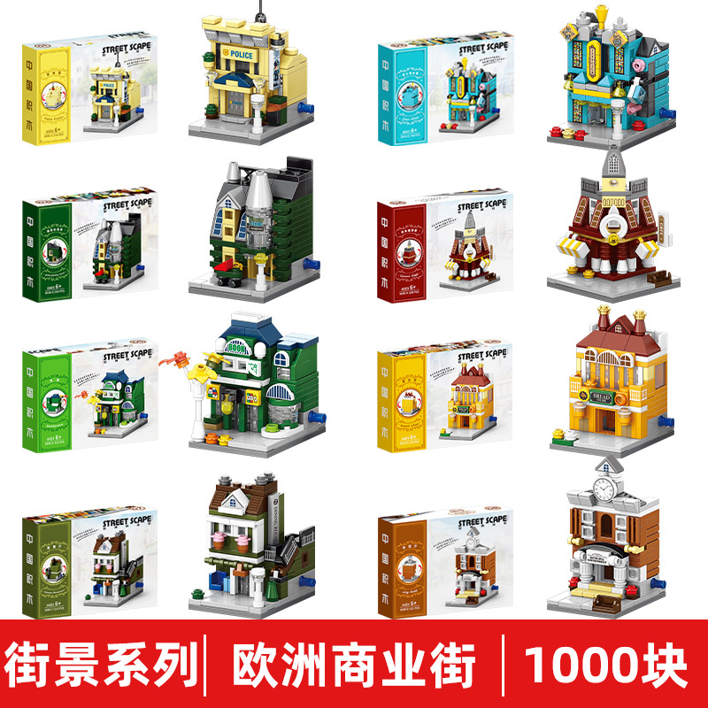 2025 새로운 빌딩 블록 작은 입자 유럽 거리 풍경 건물 모델 어린이 조립 장난감 남성 졸업생 생일 선물스토어 가기