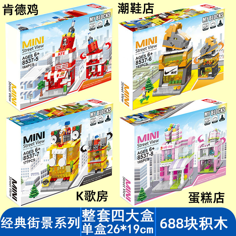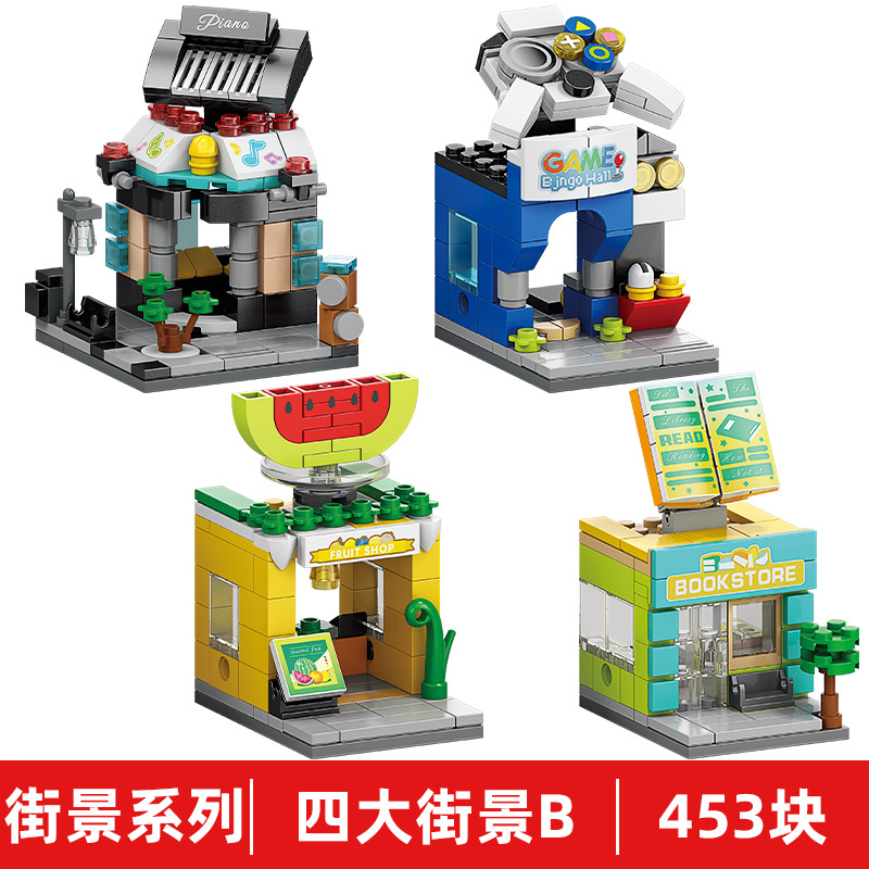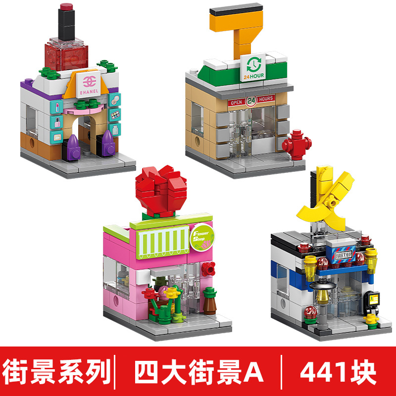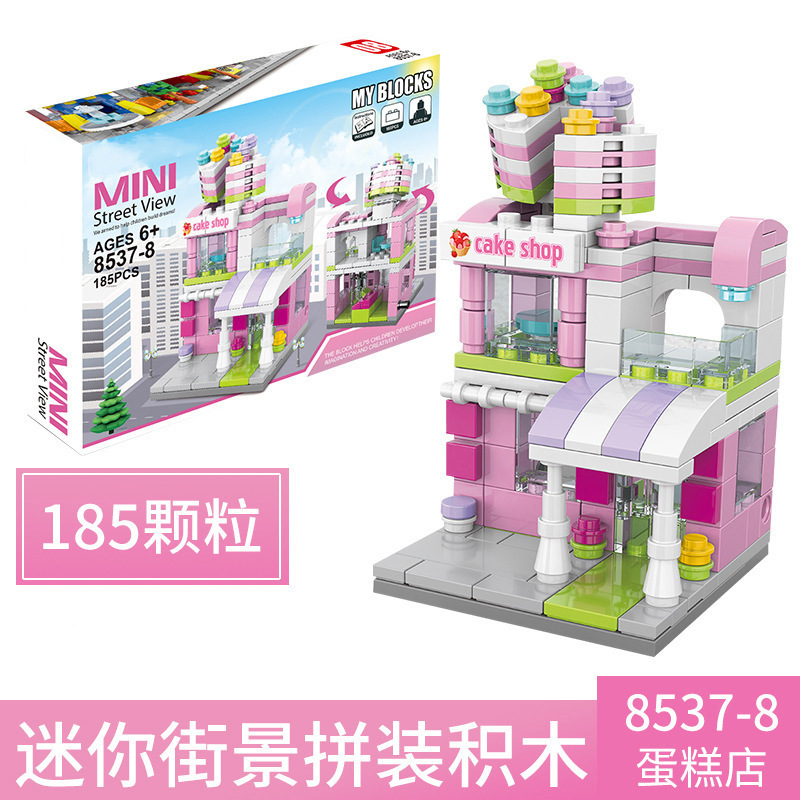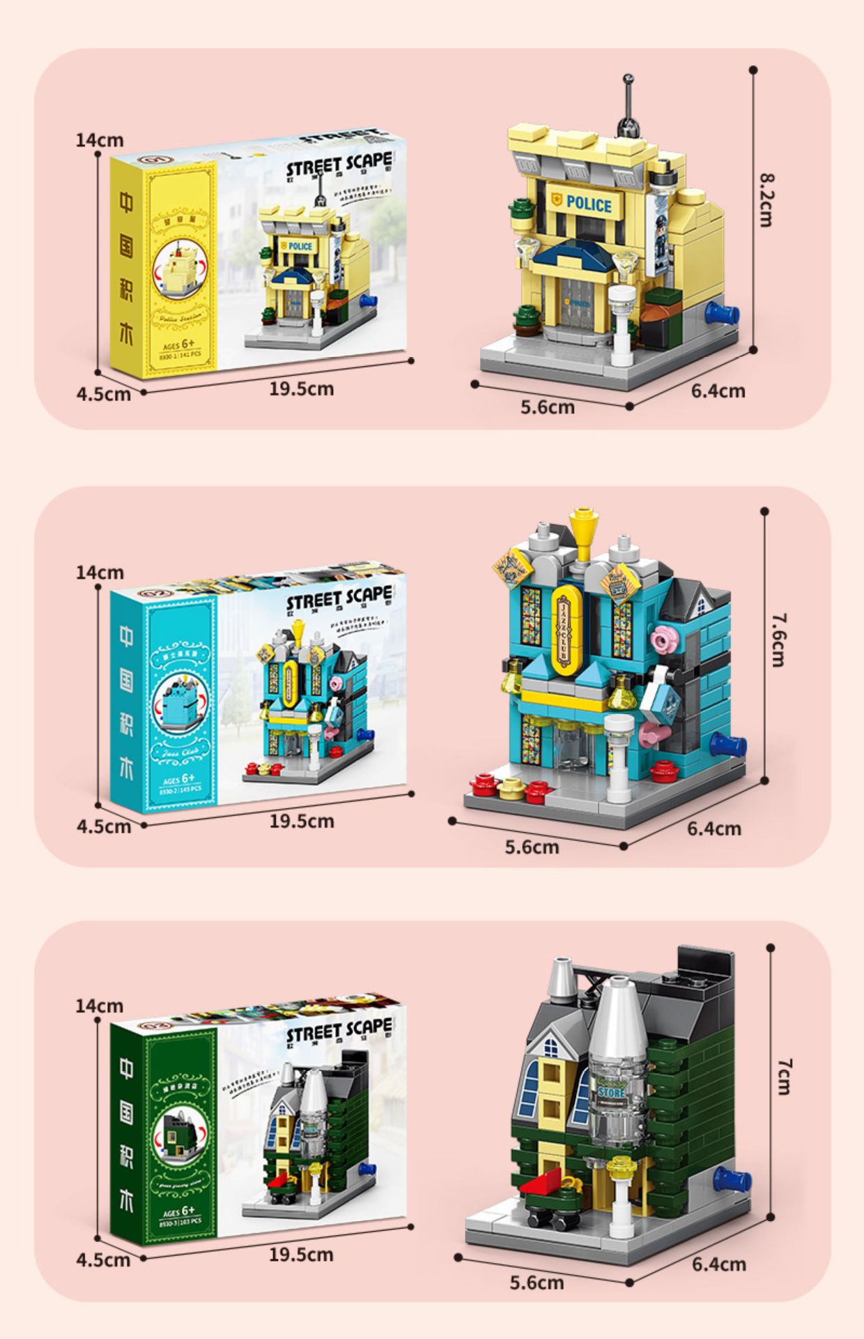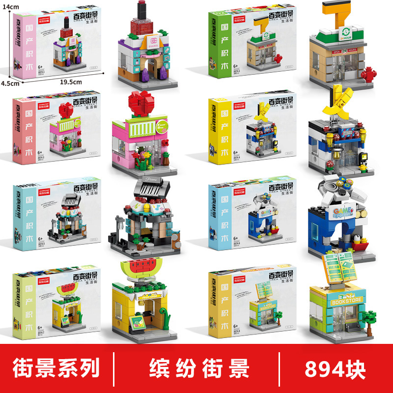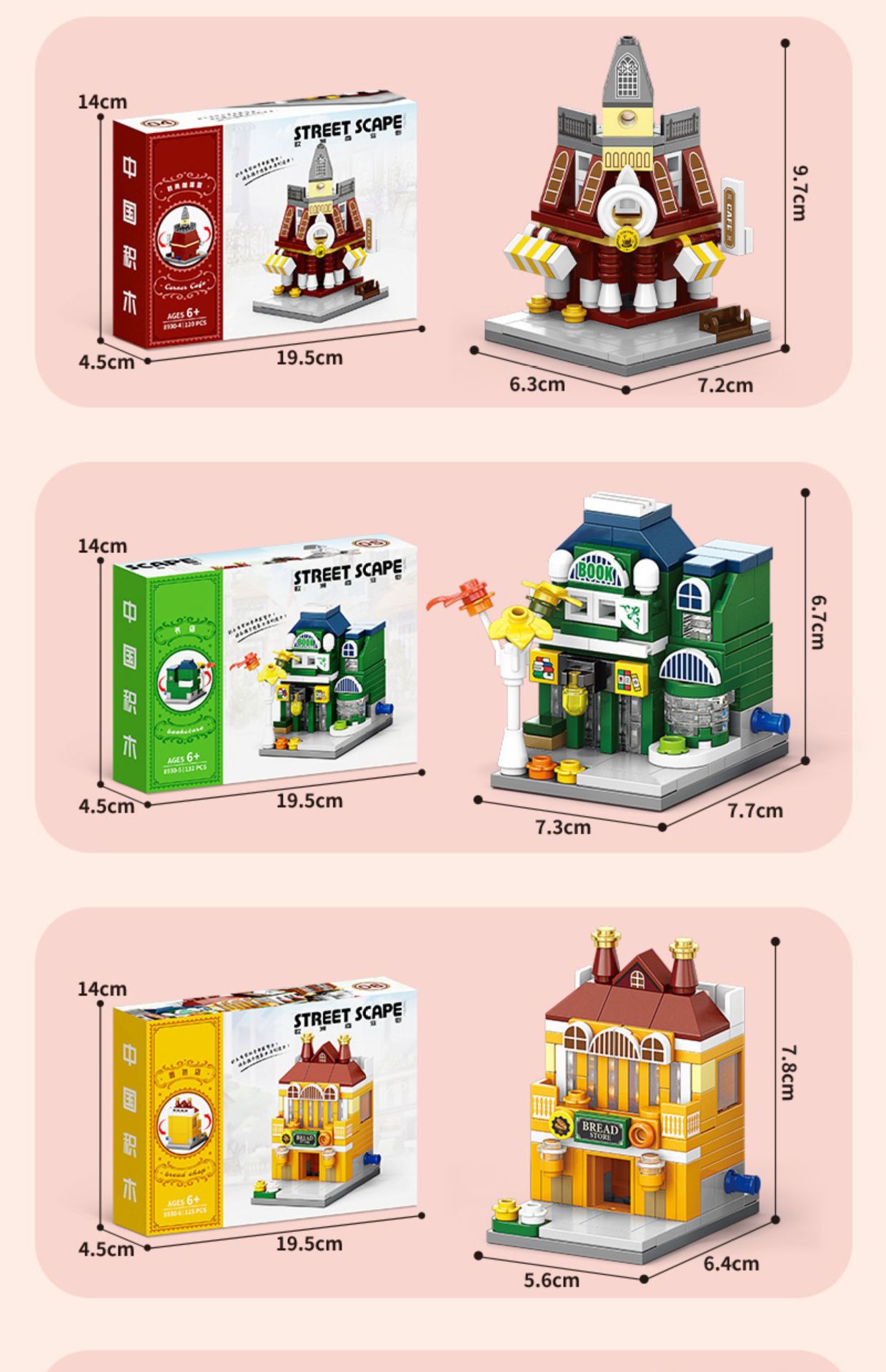 2025 새로운 빌딩 블록 작은 입자 유럽 거리 풍경 건물 모델 어린이 조립 장난감 남성 졸업생 생일 선물스토어 가기