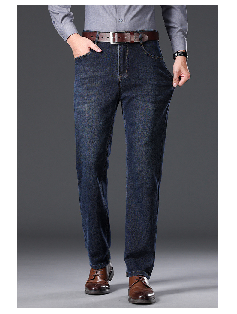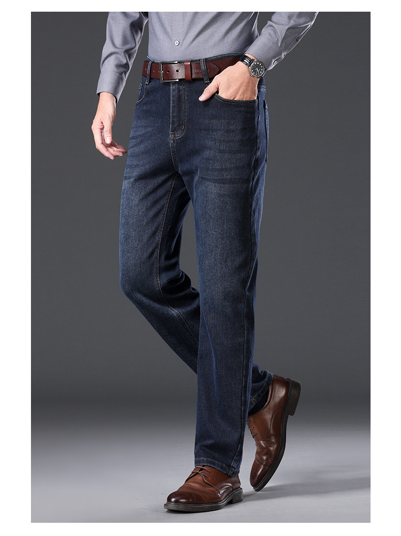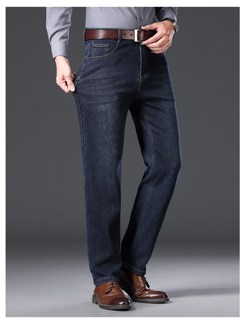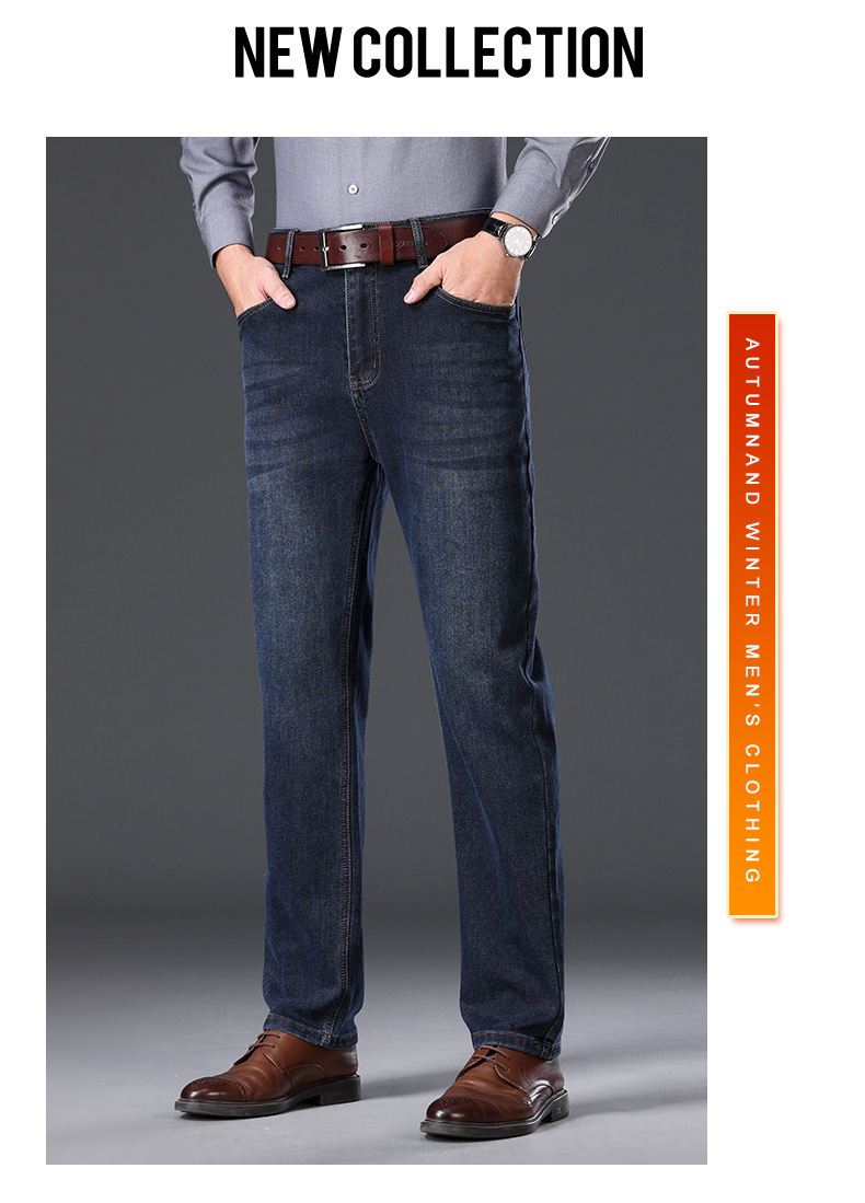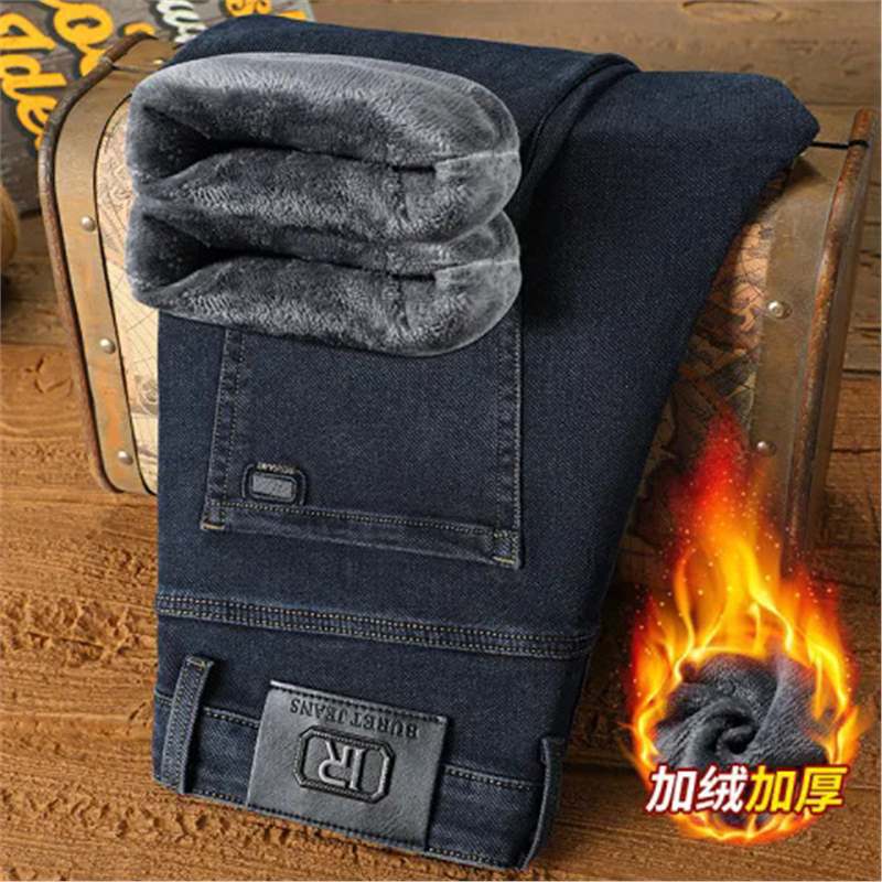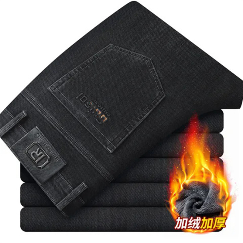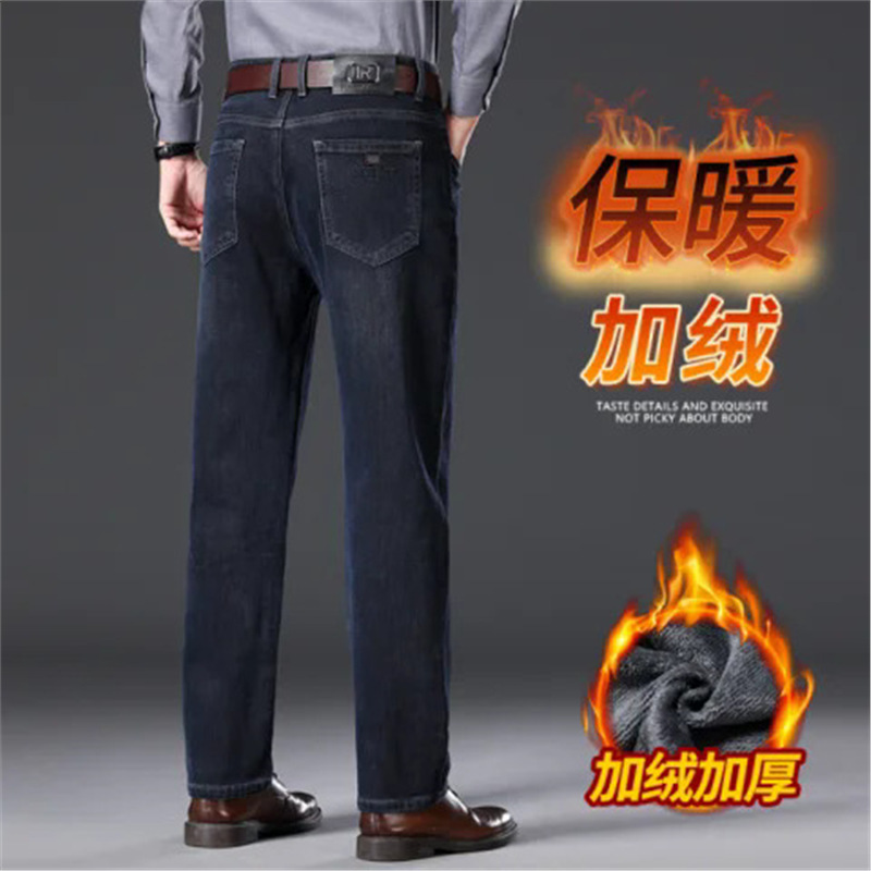 하이 엔드 겨울 남성 청바지 스트레이트 루즈 두꺼운 대외 무역 따뜻한 비즈니스 캐주얼 긴 바지