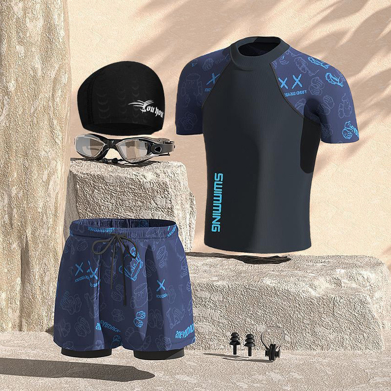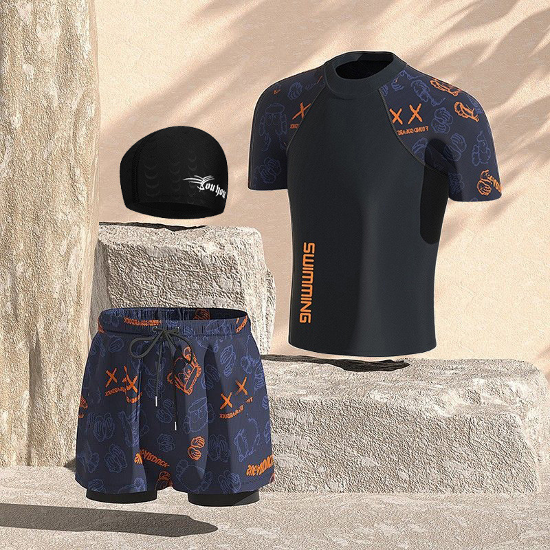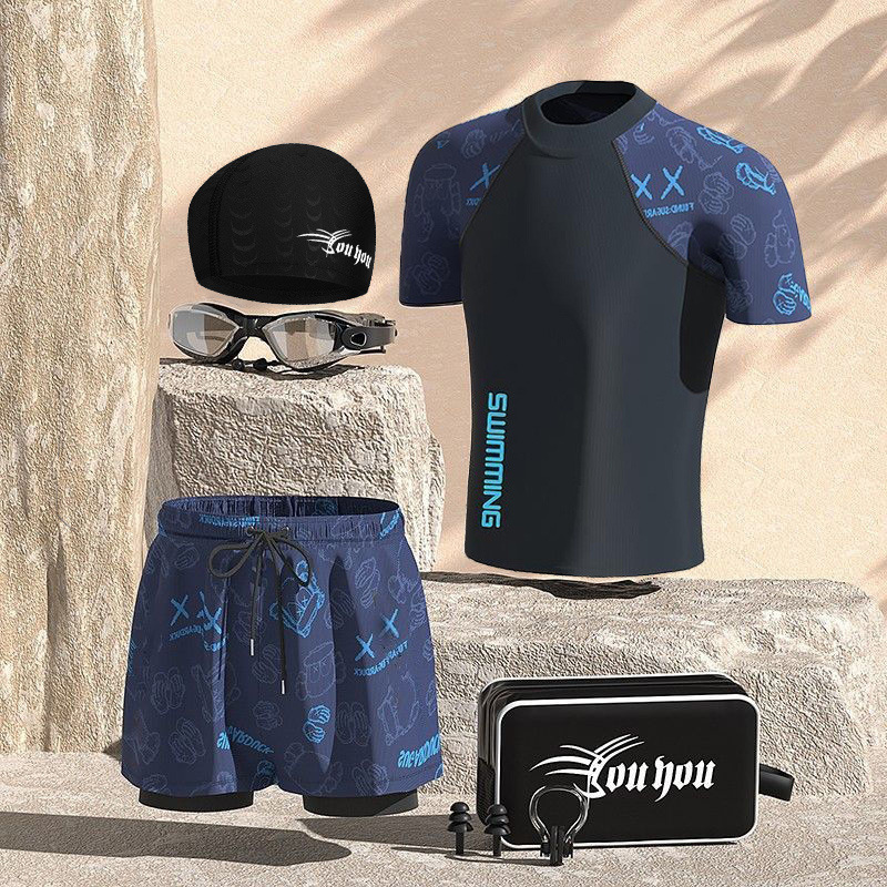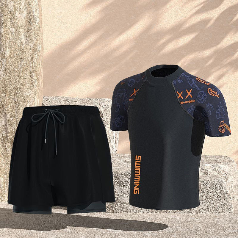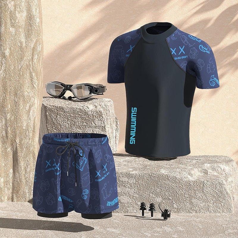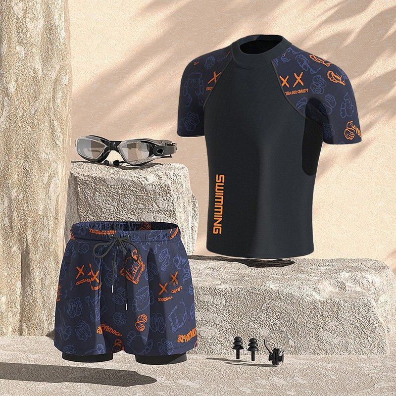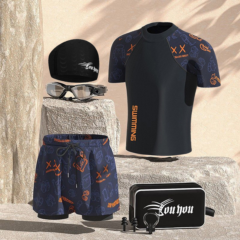 수영복 남성용 양복 더블 레이어 속건성, 당황 방지, 편안함, 피부 친화적, 통기성, 온천 해변 수영 남성용 풀 세트