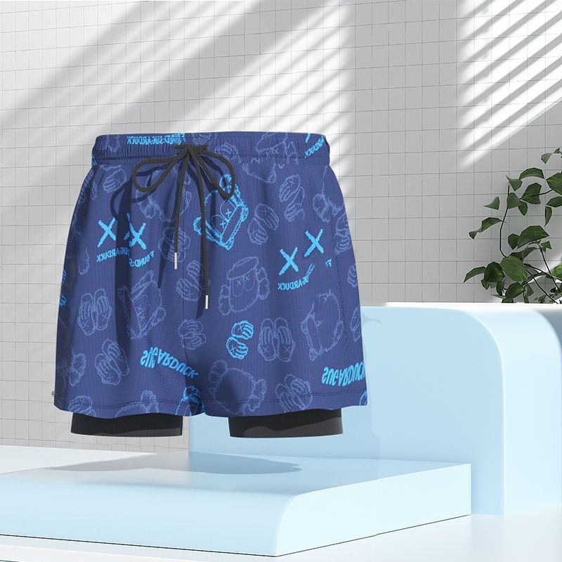 수영복 남성용 양복 더블 레이어 속건성, 당황 방지, 편안함, 피부 친화적, 통기성, 온천 해변 수영 남성용 풀 세트스토어 가기