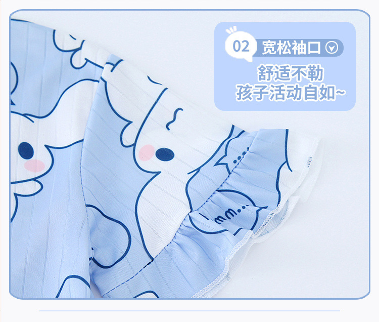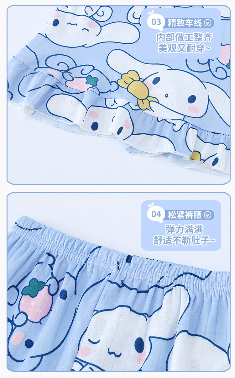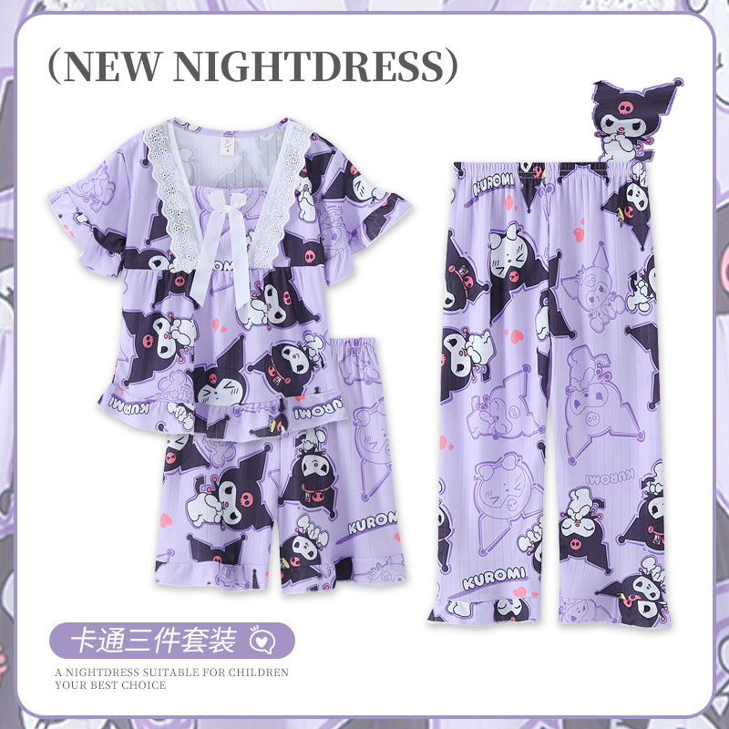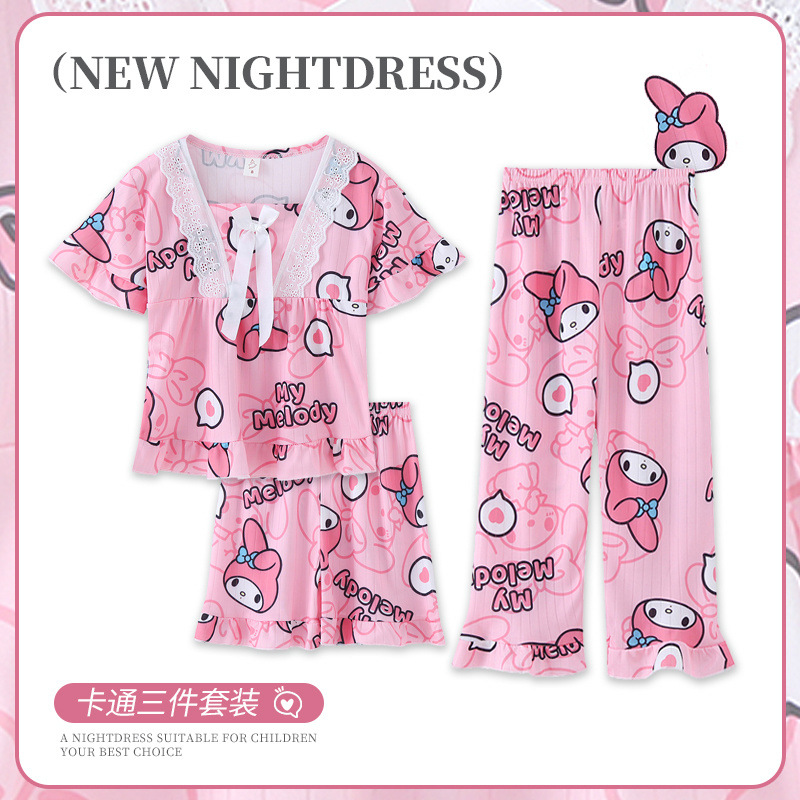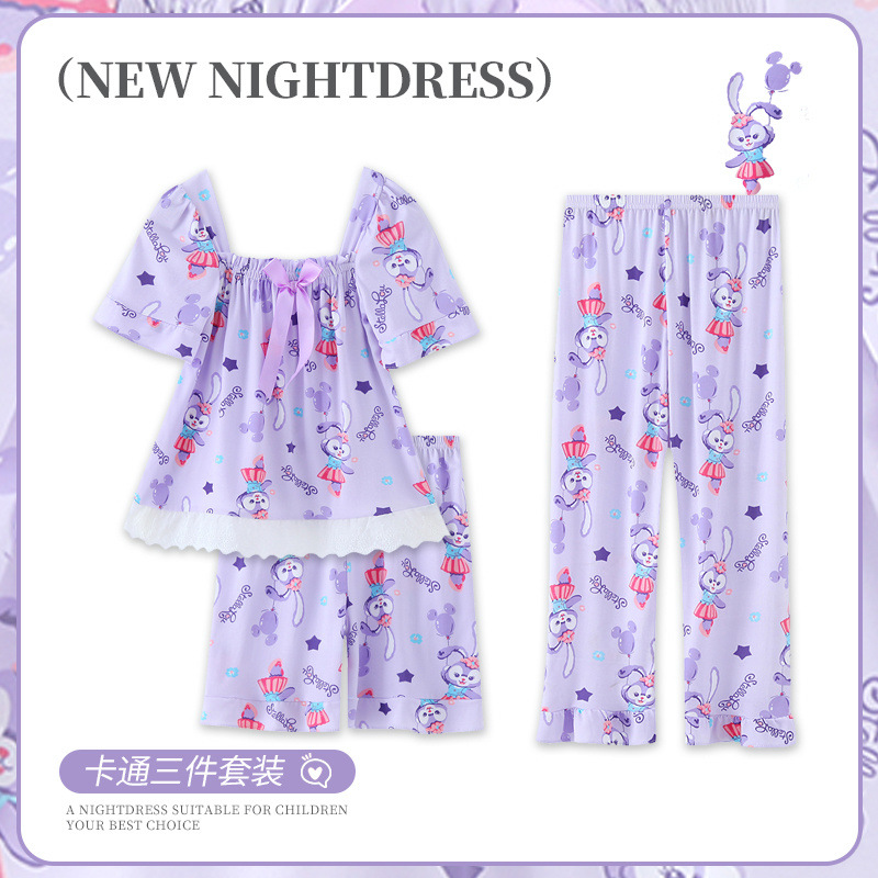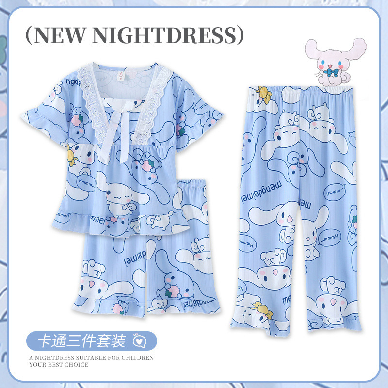 여름 어린이 잠옷, 여아용 반팔 바지 3피스 슈트, 여아용 여름 얇은 중대형 아동복스토어 가기