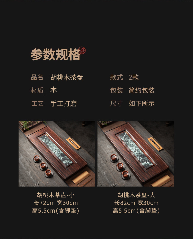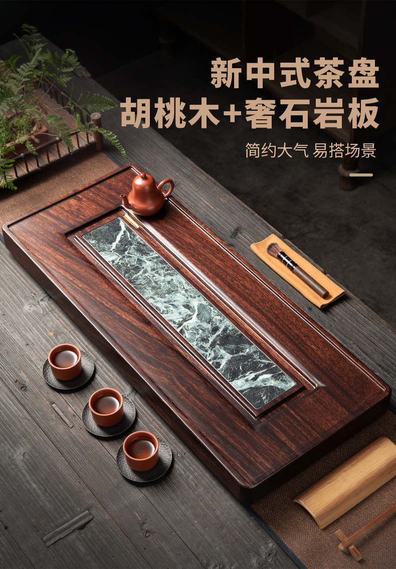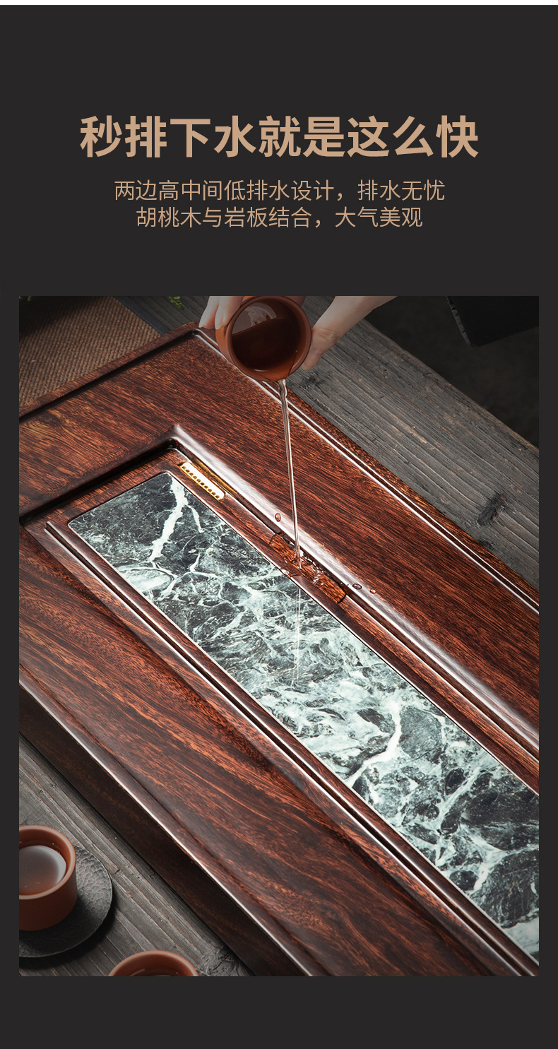 하이 엔드 새로운 호두 고급 석재 차 트레이 홈 오피스 쿵푸 차 세트 차 테이블 작은 단단한 나무 차 트레이