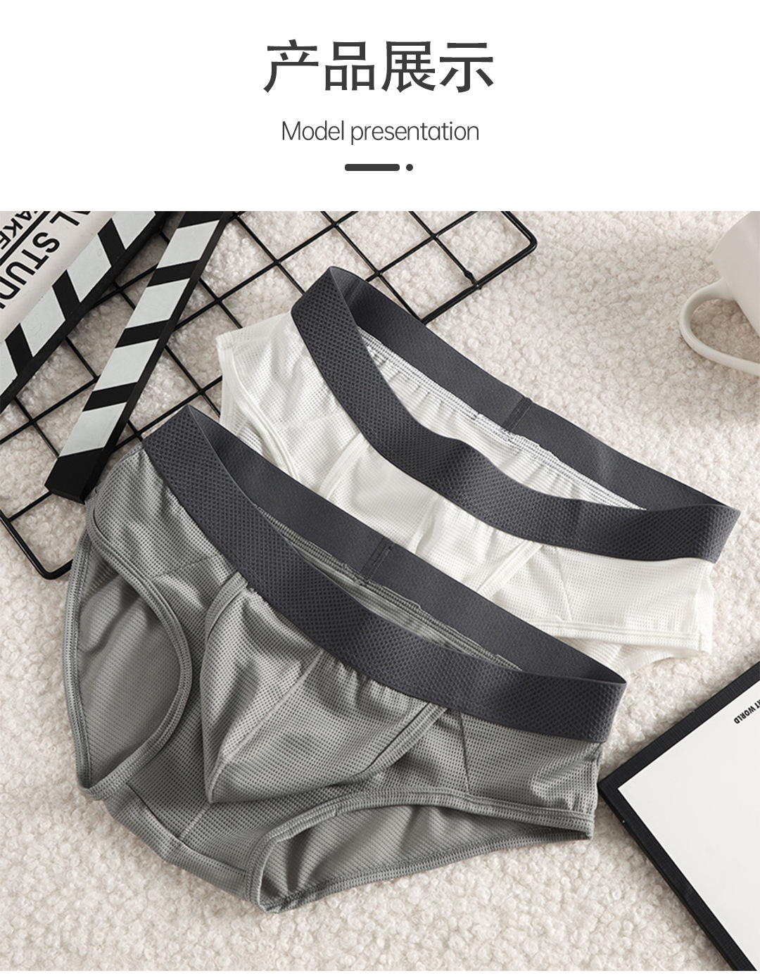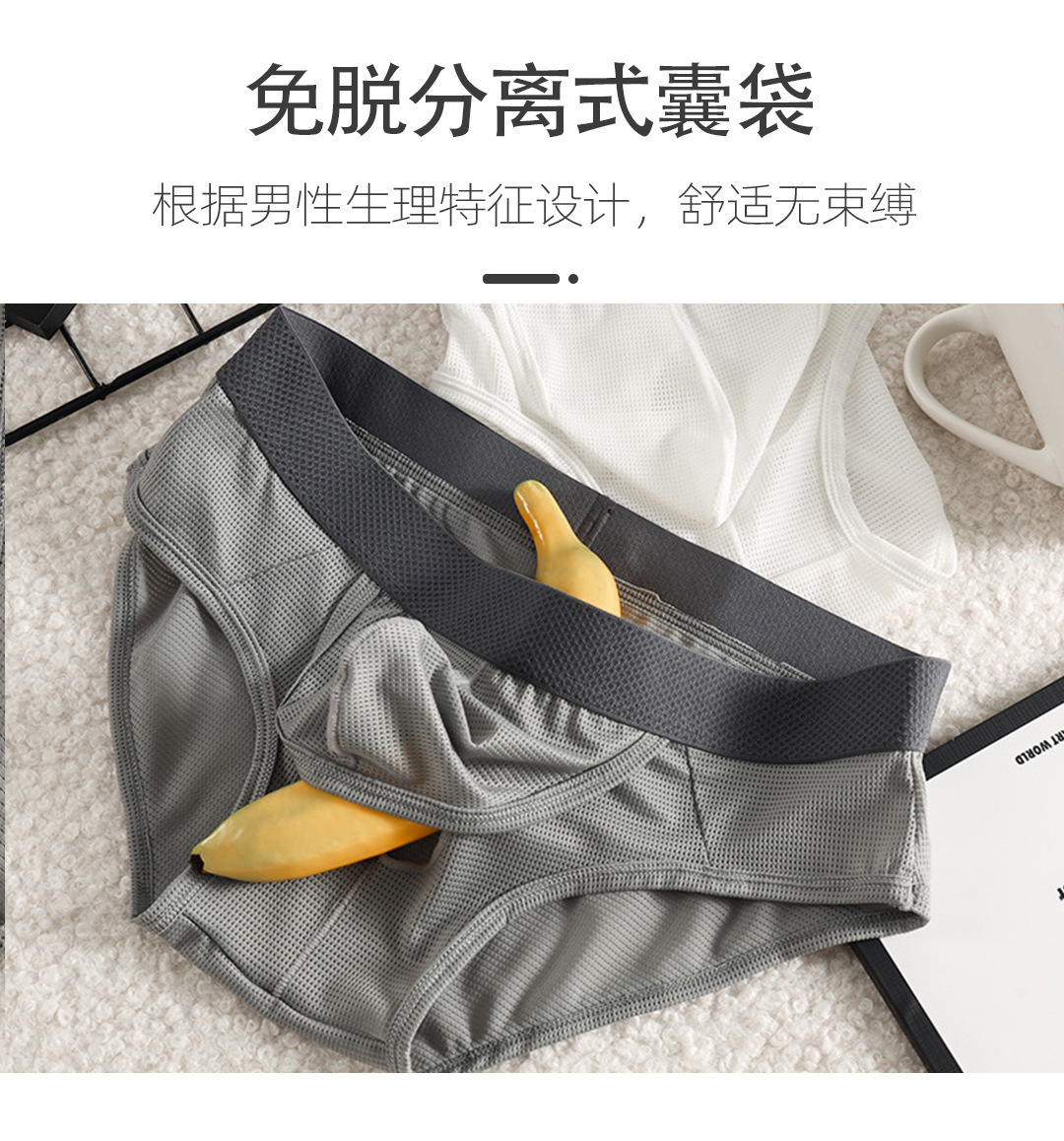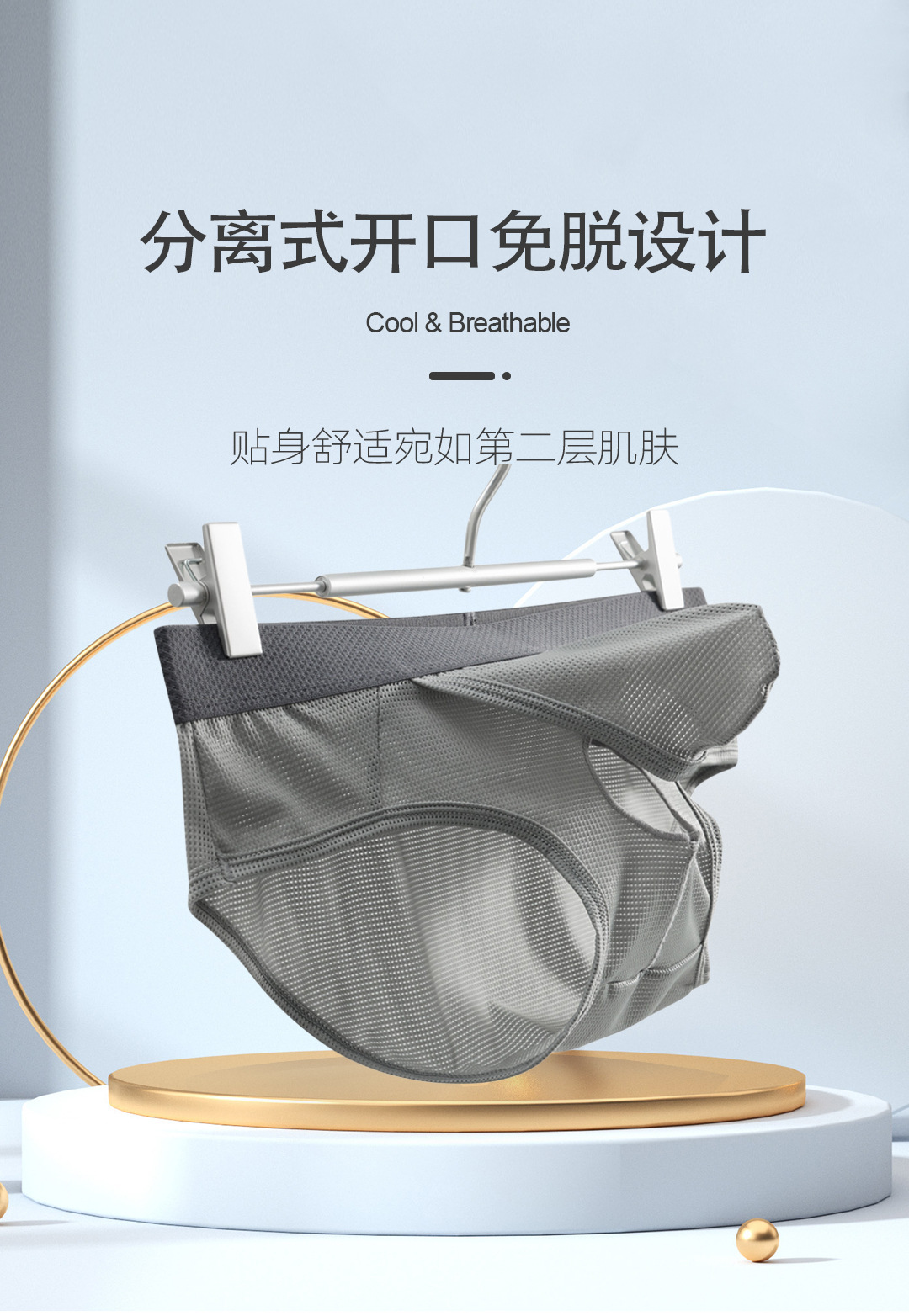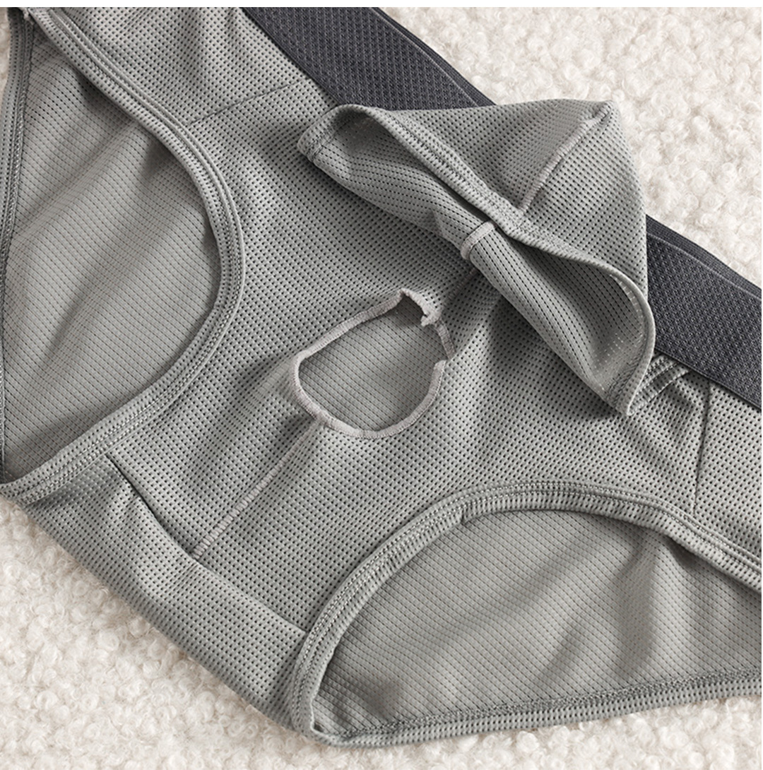 여름철 남성용 오픈형 삼각팬티, 아이스 실크 통기성 섹시팬티, 남성용 삼각총알 분리팬티