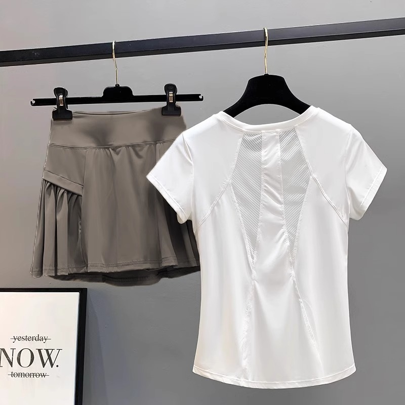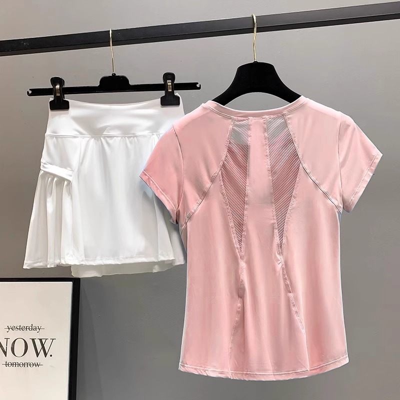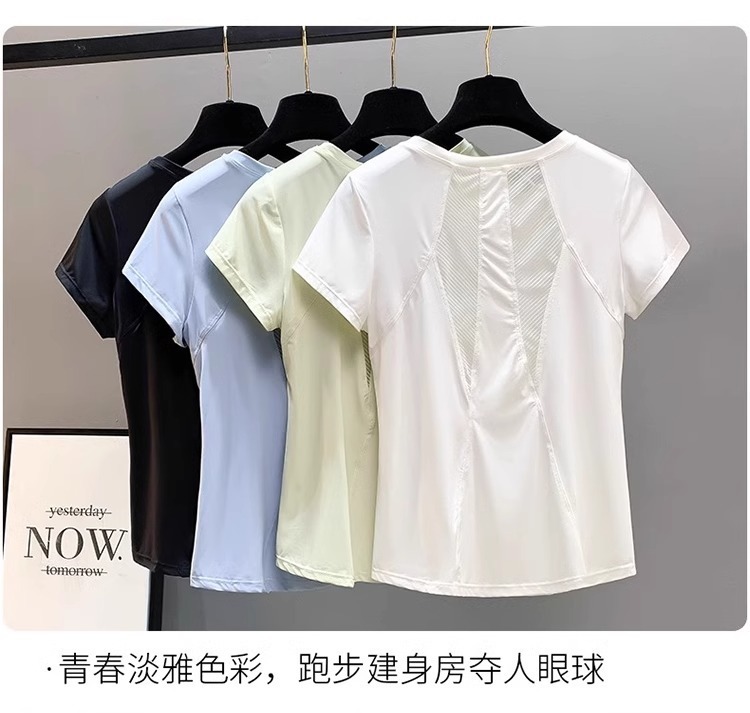 여성용 야외 스포츠 슈트 여름 마라톤 달리기 속건성 피트니스 반팔 티셔츠 통기성 아침 달리기 요가 의류 제조업체스토어 가기
