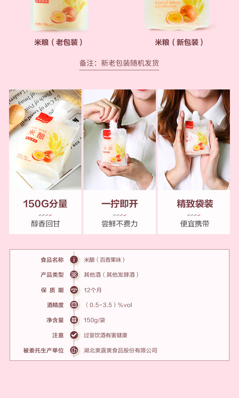 Bestore 쌀 발효 패션프루트 맛 150g Xiaogan 특산 달콤한 찹쌀 술 발효 음료 스낵 포장