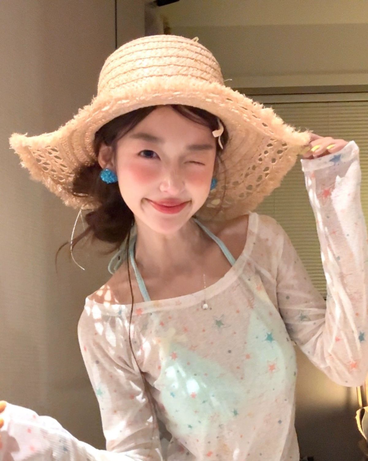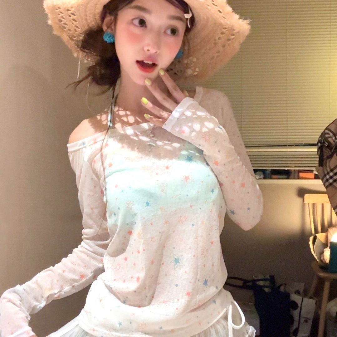 태국 스타 프린트 캐주얼 얇은 자외선 차단제 블라우스 여성 여름 비키니 수영복 레이스 비치 커튼 수영복스토어 가기