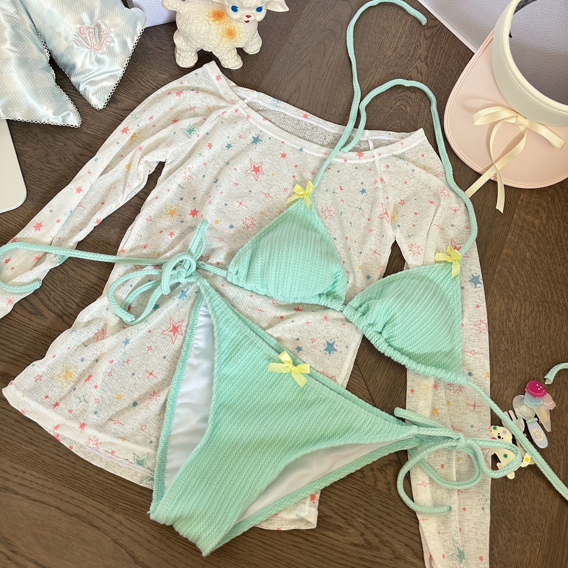 • 그린비키니+엉덩이커튼+별커버업 4종세트