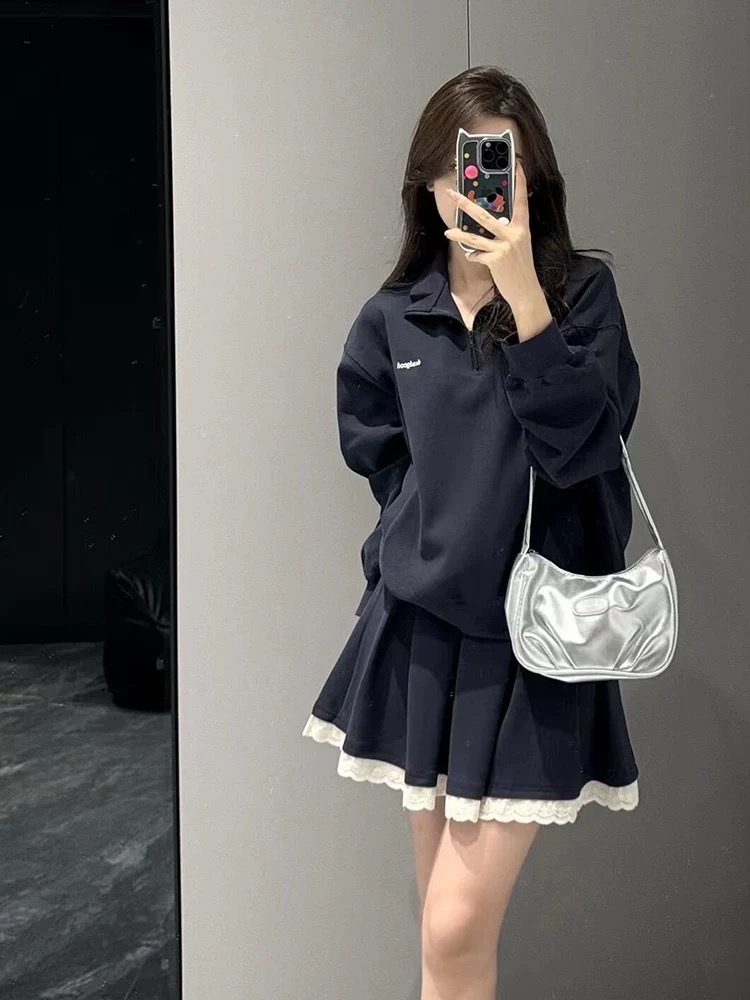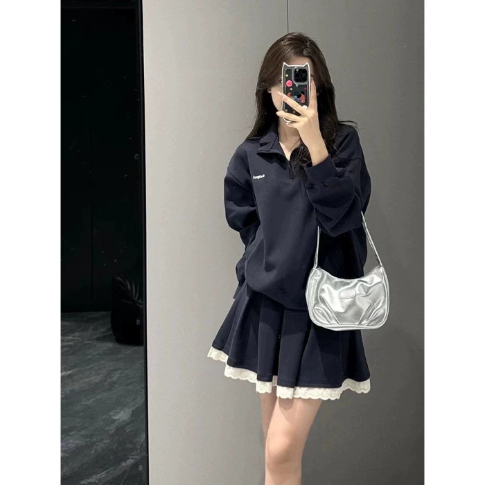 가을 신상 여성 슬림 스웨트셔츠와 짧은 스커트로 키가 작은 분들도 키가 커보이고 스커트 한 세트와 고급 투피스 세트로 완성됩니다.