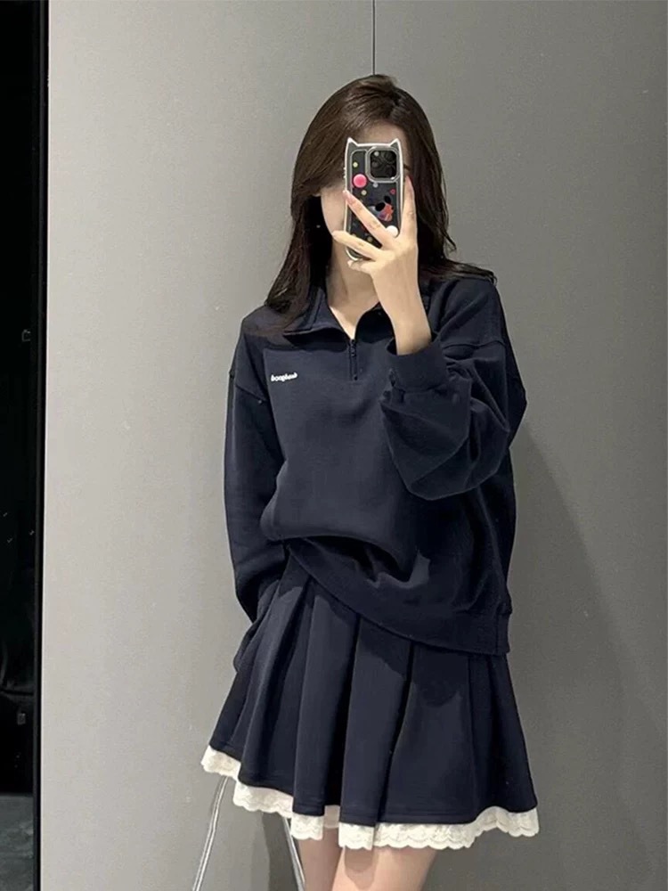 가을 신상 여성 슬림 스웨트셔츠와 짧은 스커트로 키가 작은 분들도 키가 커보이고 스커트 한 세트와 고급 투피스 세트로 완성됩니다.스토어 가기