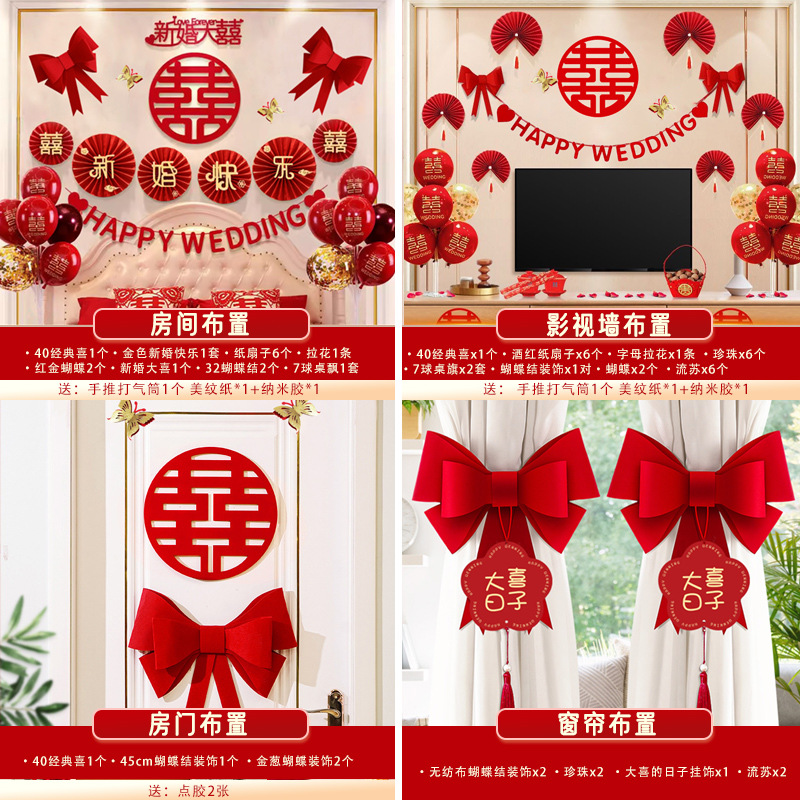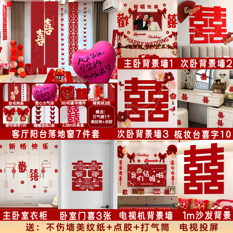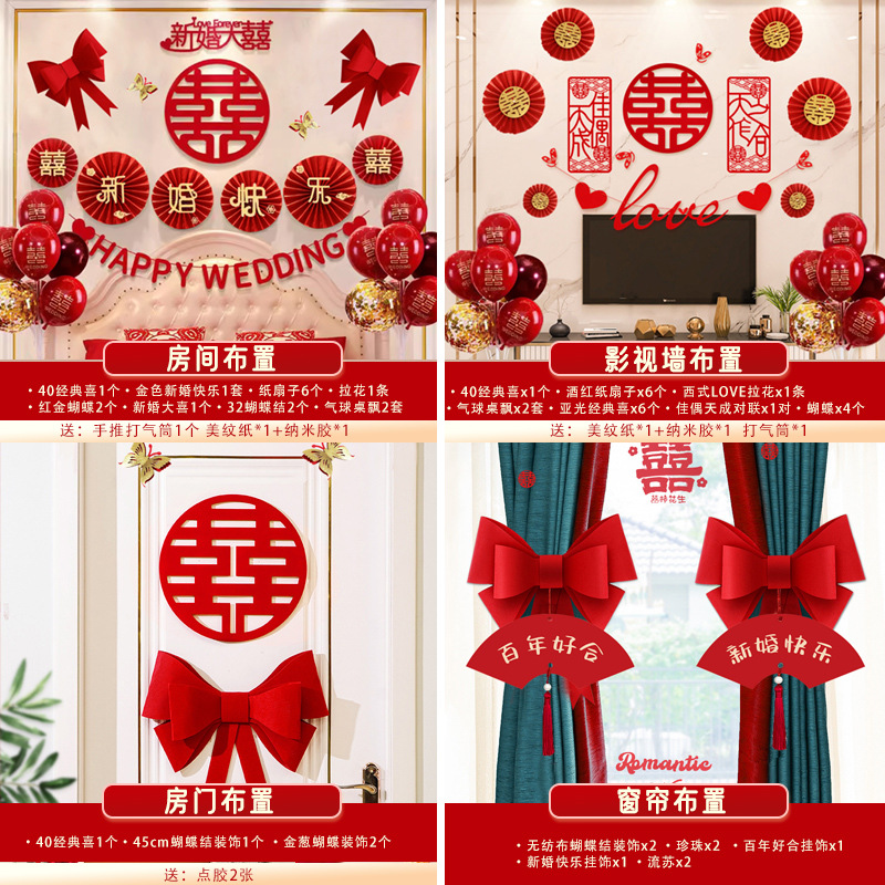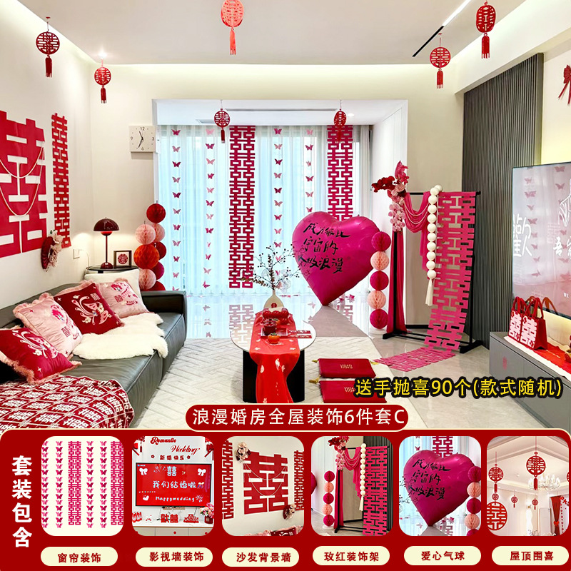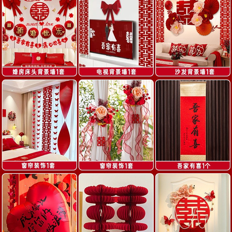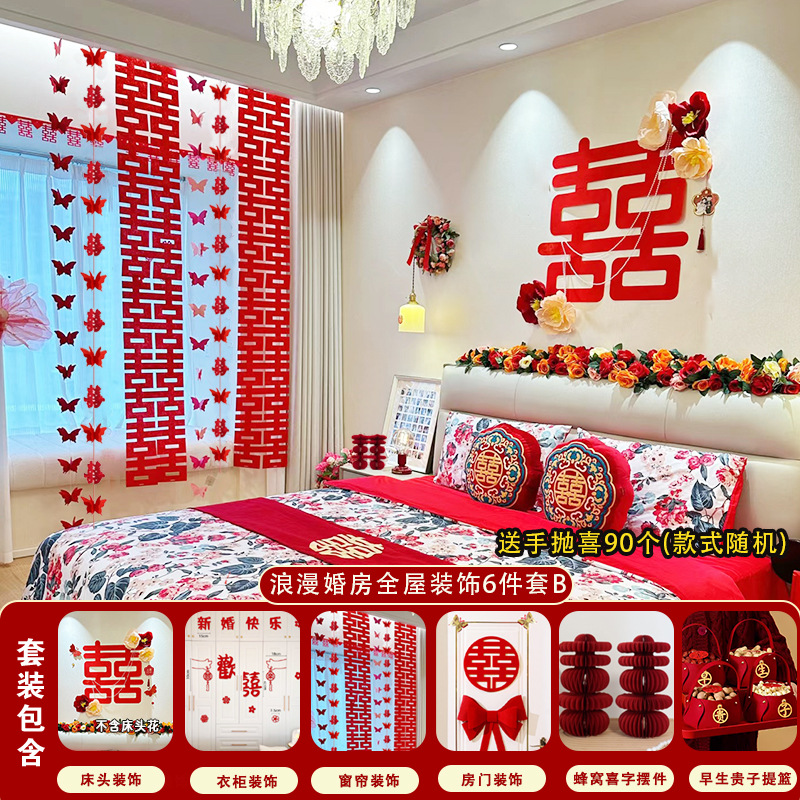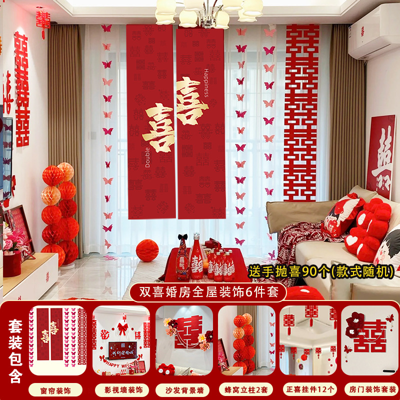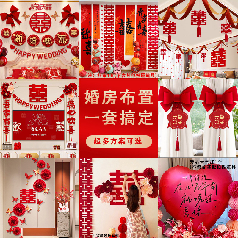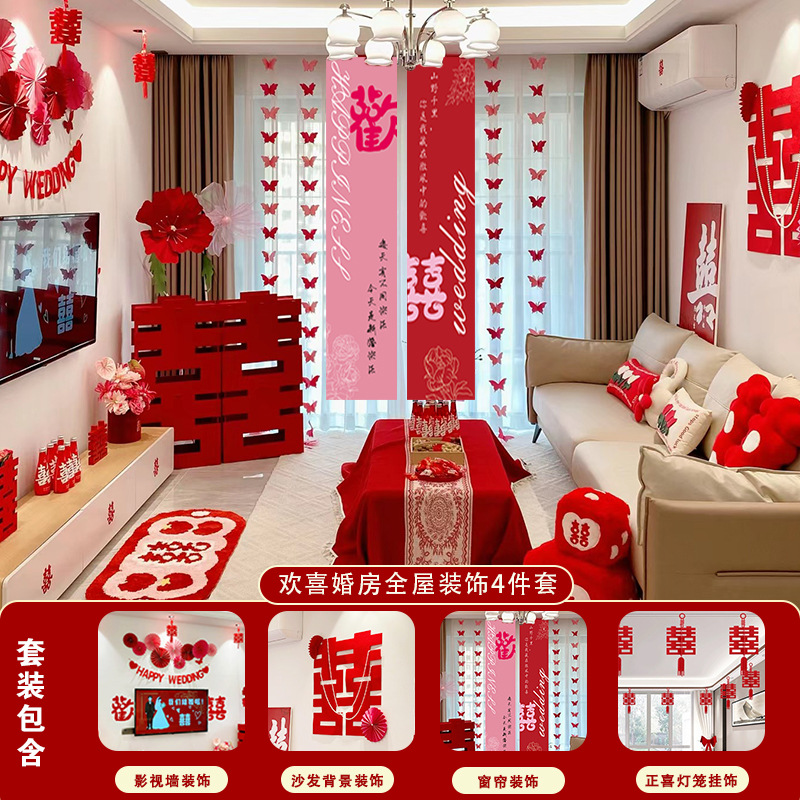 남성과 여성을 위한 웨딩룸 레이아웃 세트, 웨딩 장식, 새 집 침실, 집 전체 장식 용품, 커튼 걸이 천 전체 세트스토어 가기
