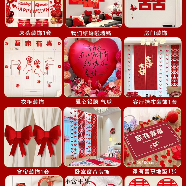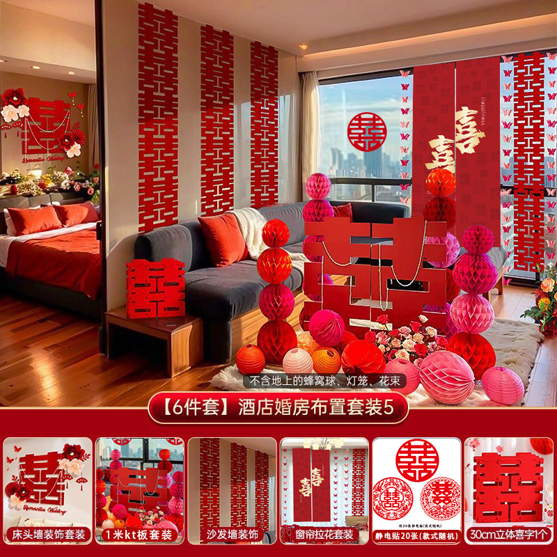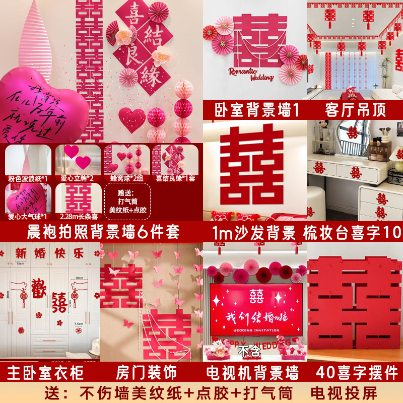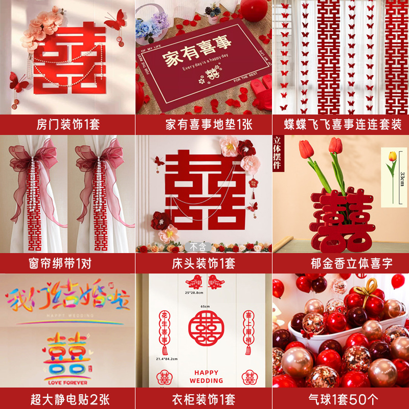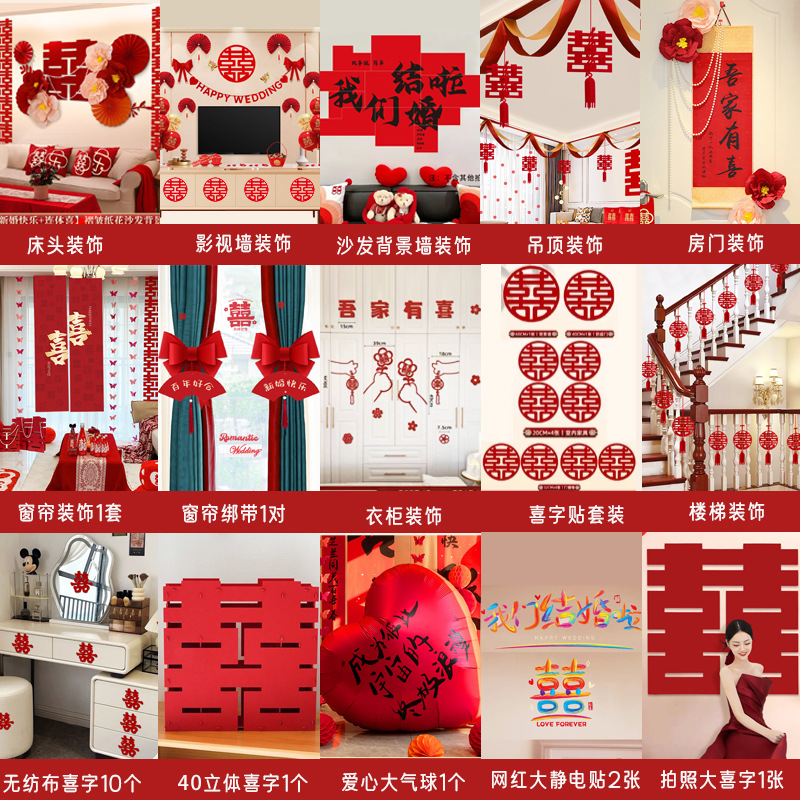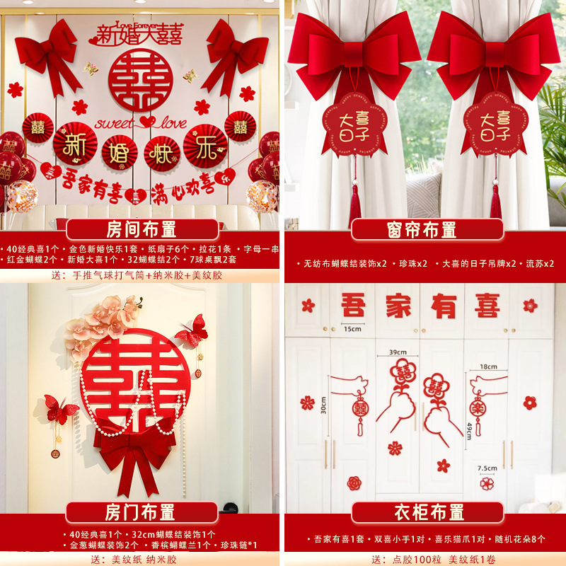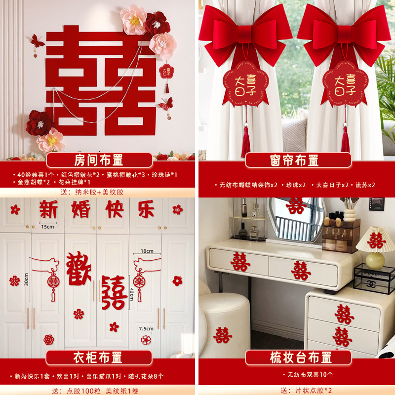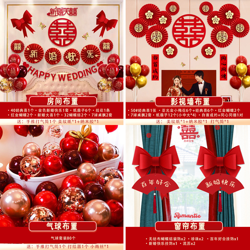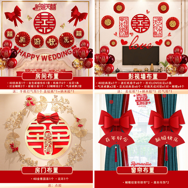 남성과 여성을 위한 웨딩룸 레이아웃 세트, 웨딩 장식, 새 집 침실, 집 전체 장식 용품, 커튼 걸이 천 전체 세트스토어 가기