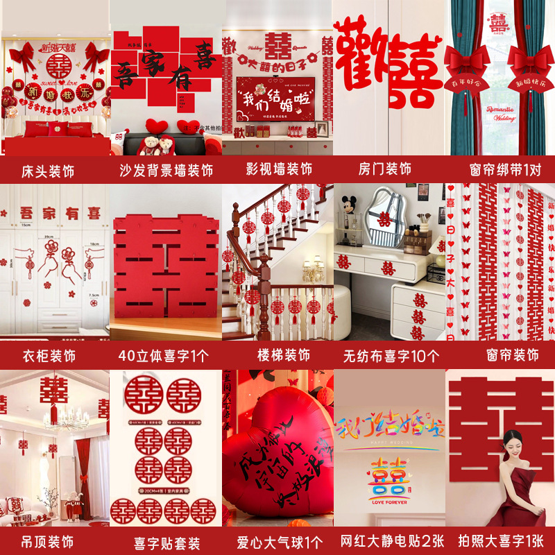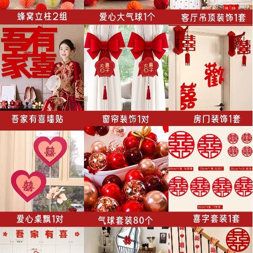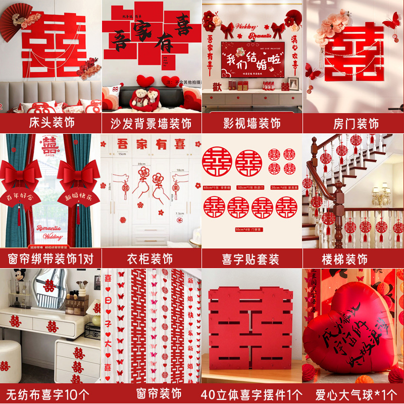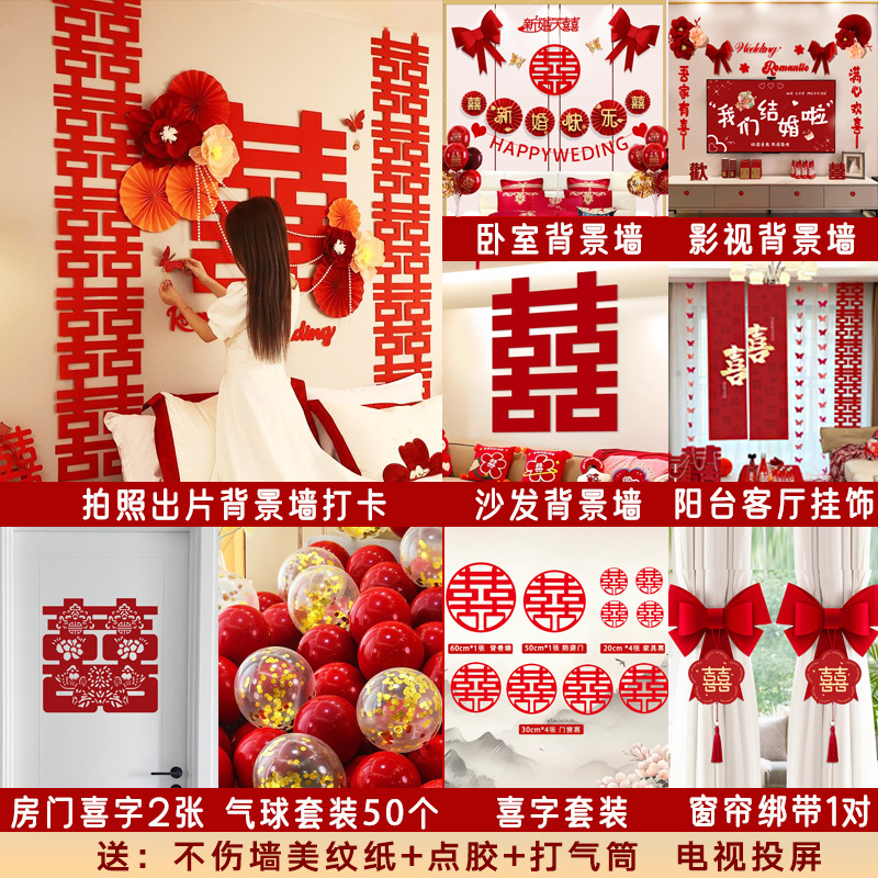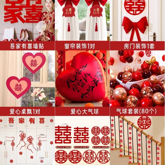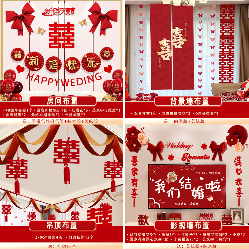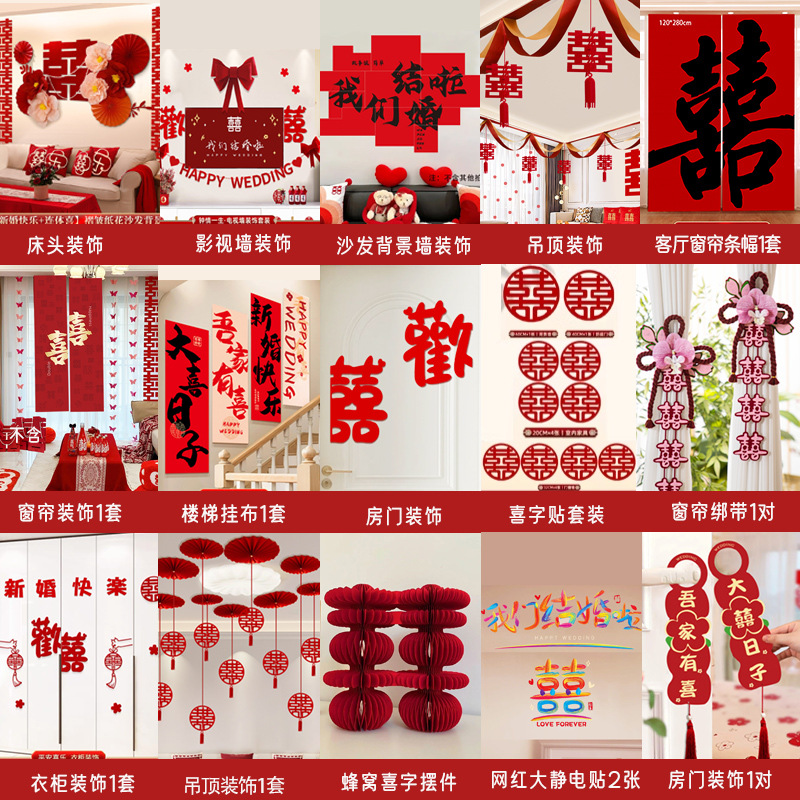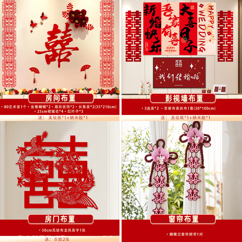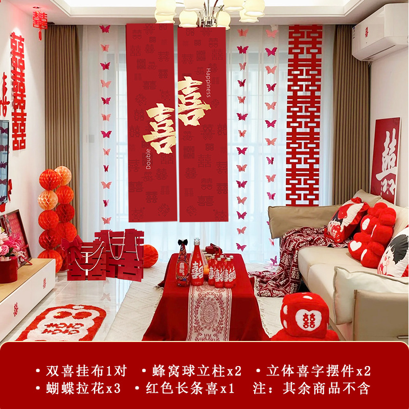 남성과 여성을 위한 웨딩룸 레이아웃 세트, 웨딩 장식, 새 집 침실, 집 전체 장식 용품, 커튼 걸이 천 전체 세트스토어 가기