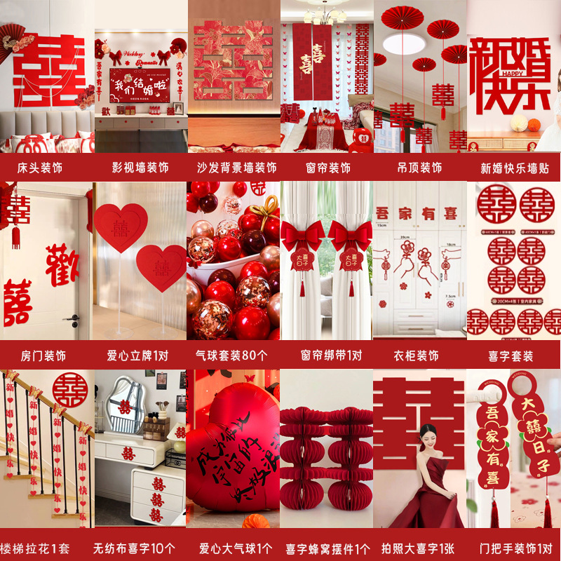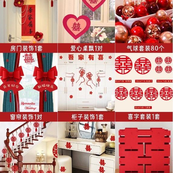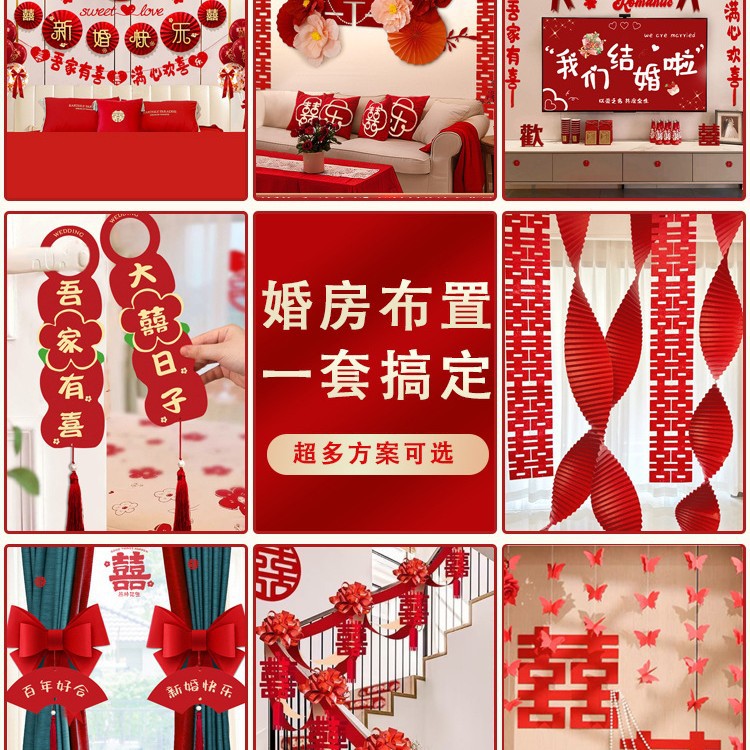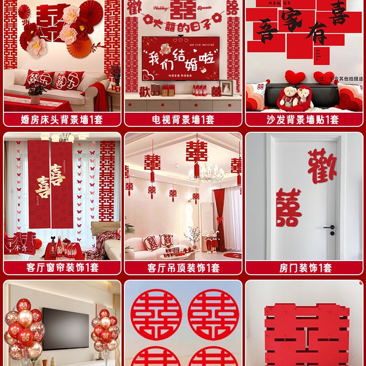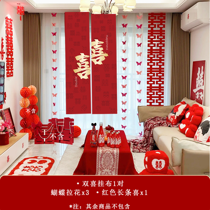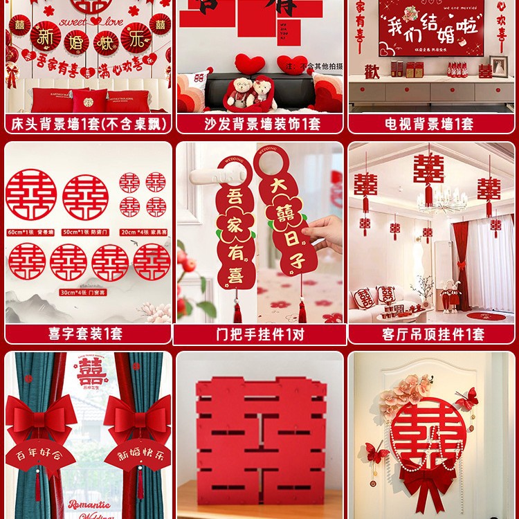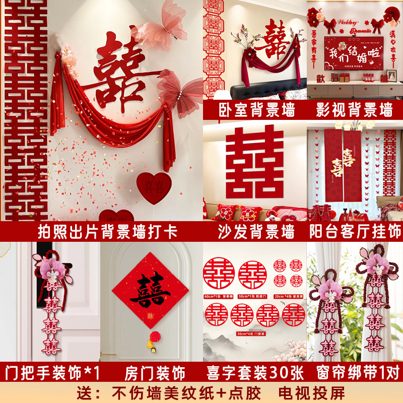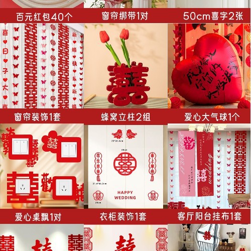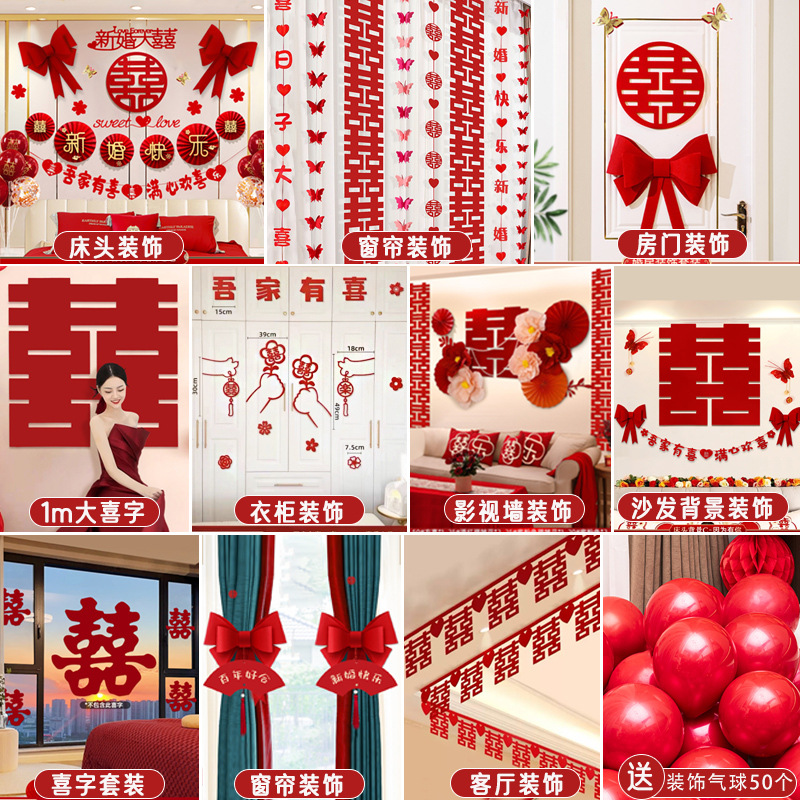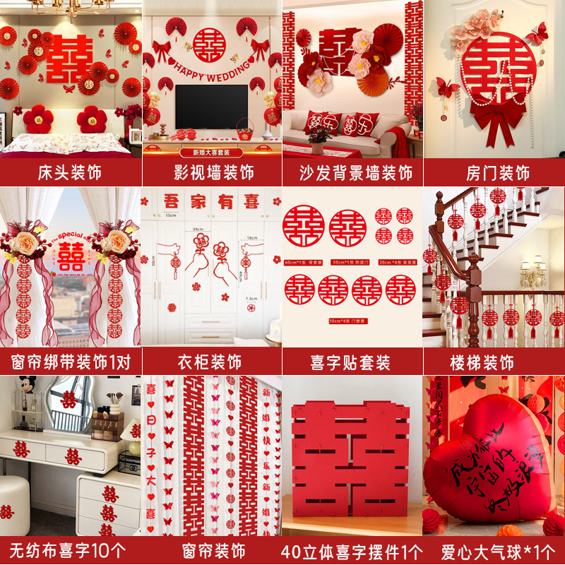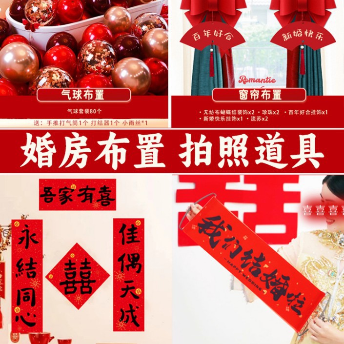 남성과 여성을 위한 웨딩룸 레이아웃 세트, 웨딩 장식, 새 집 침실, 집 전체 장식 용품, 커튼 걸이 천 전체 세트스토어 가기