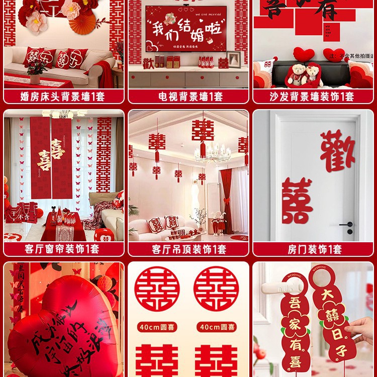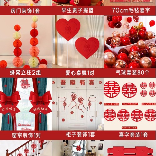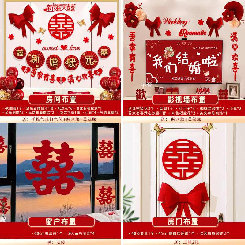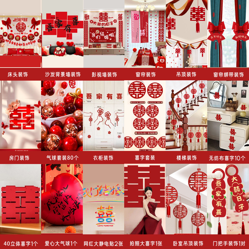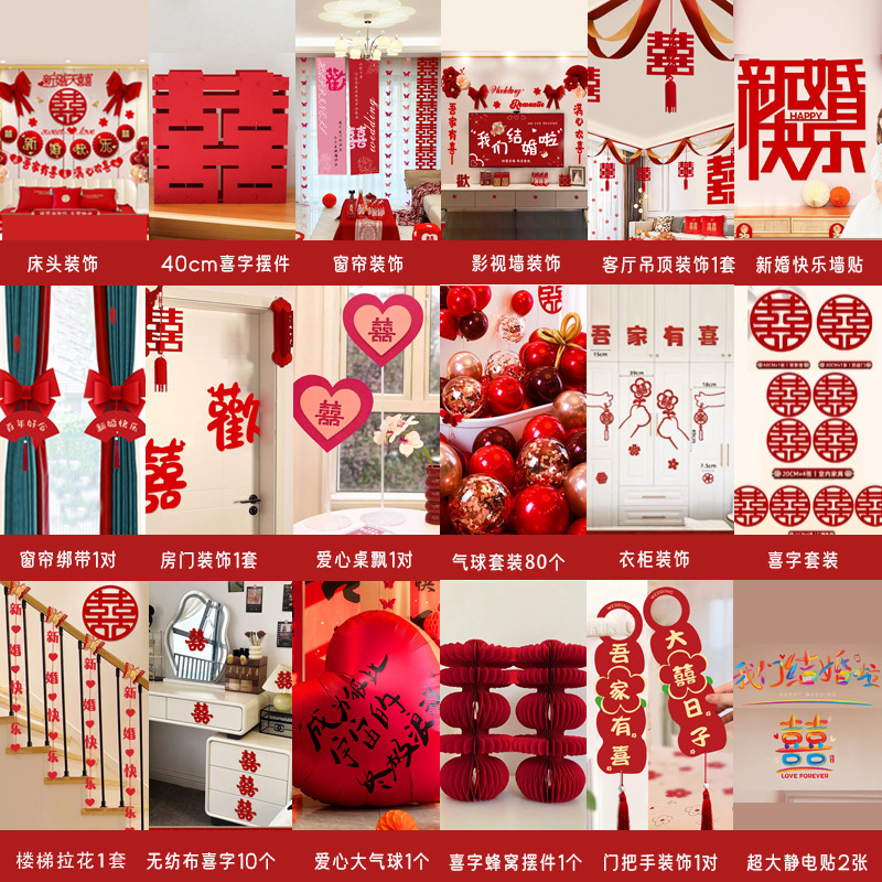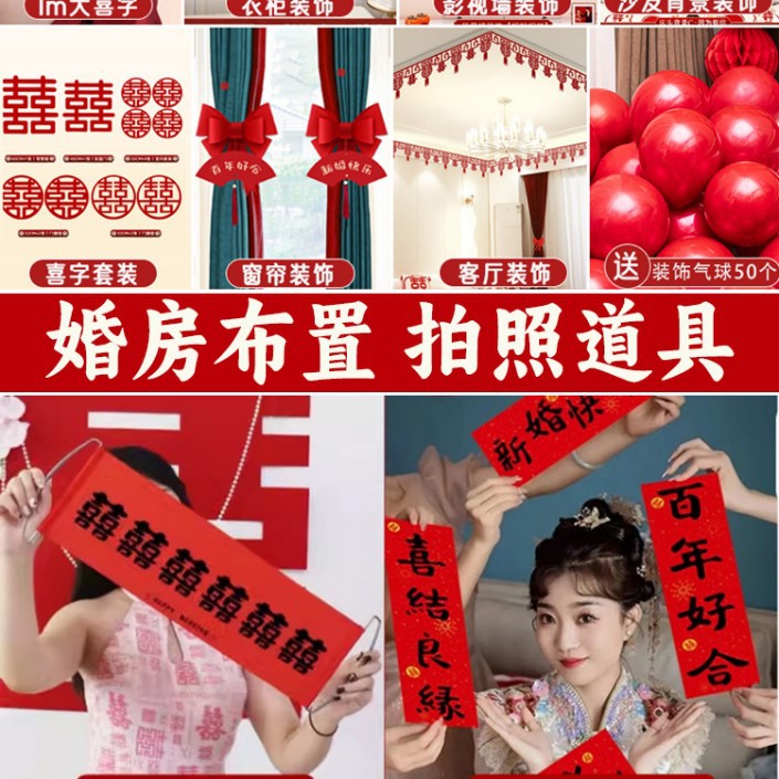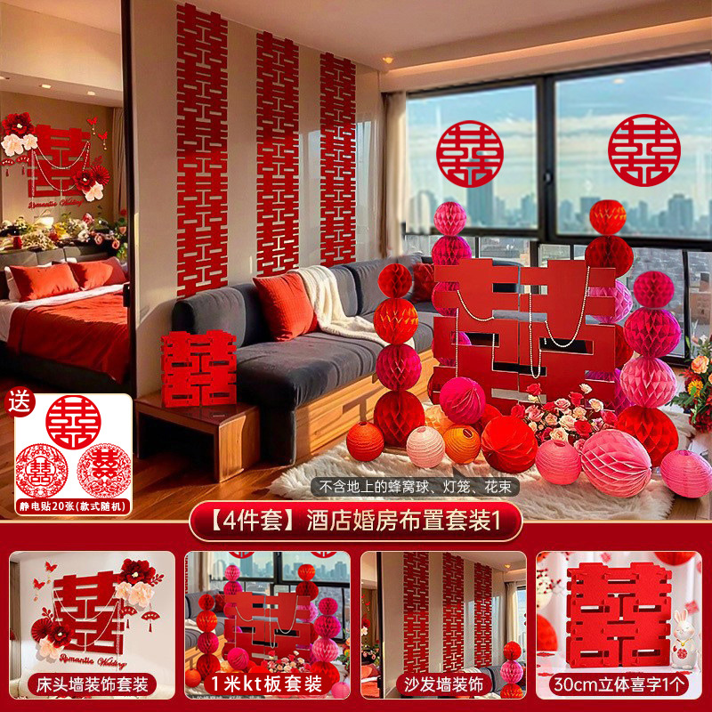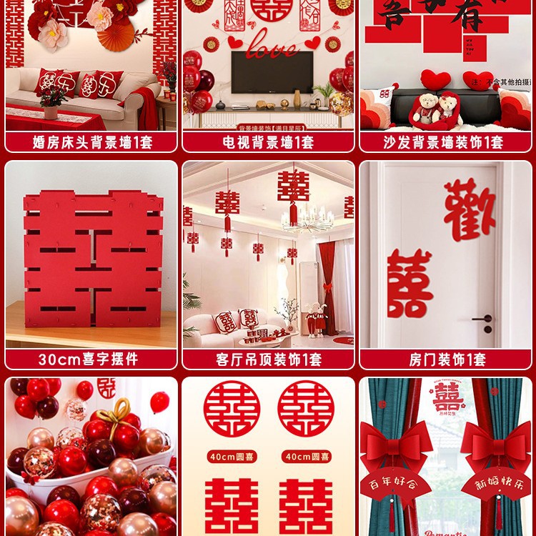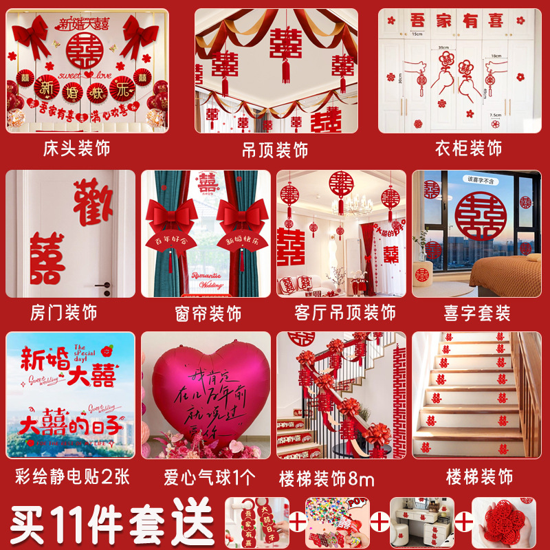 남성과 여성을 위한 웨딩룸 레이아웃 세트, 웨딩 장식, 새 집 침실, 집 전체 장식 용품, 커튼 걸이 천 전체 세트스토어 가기