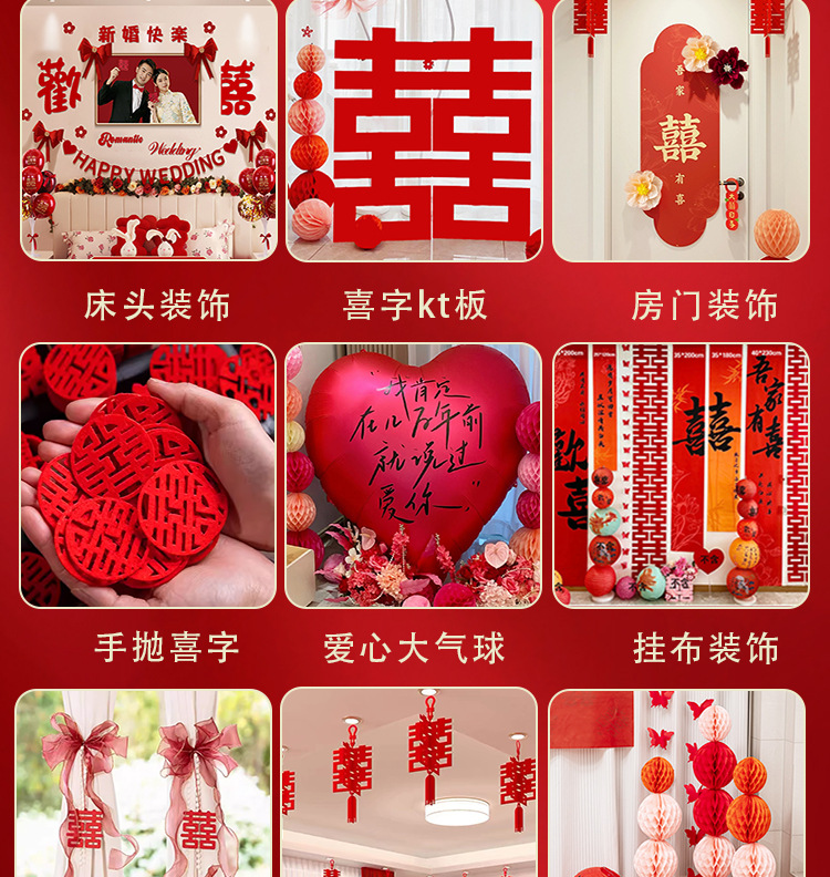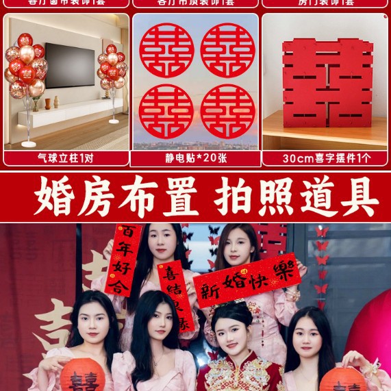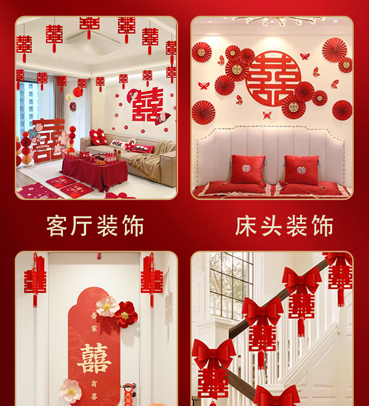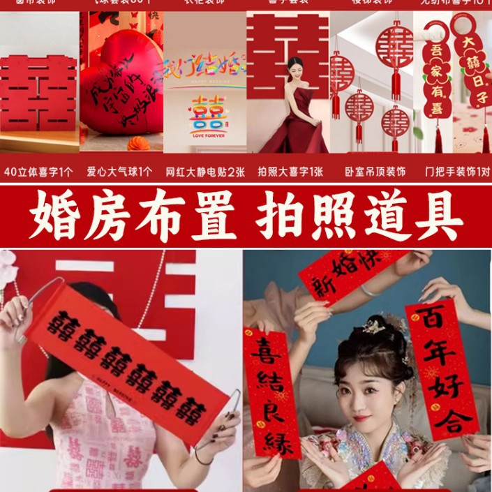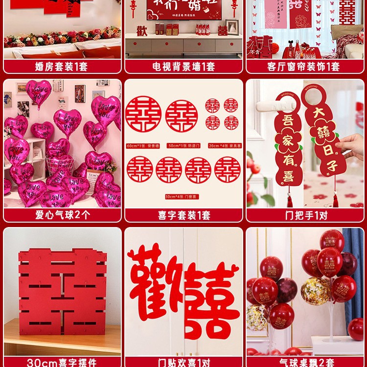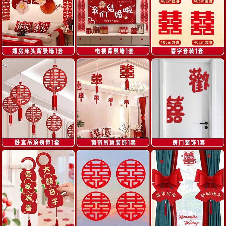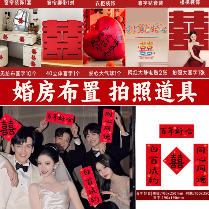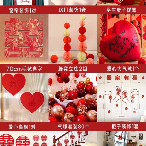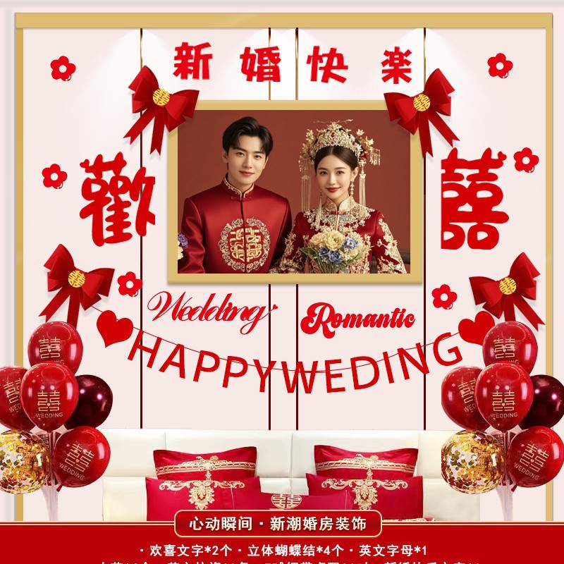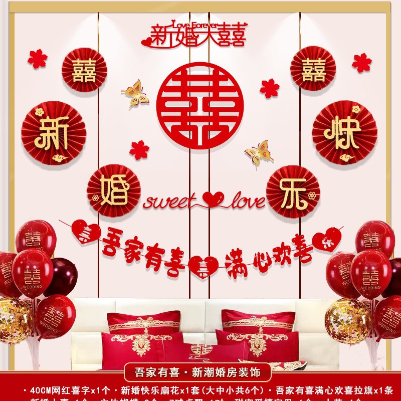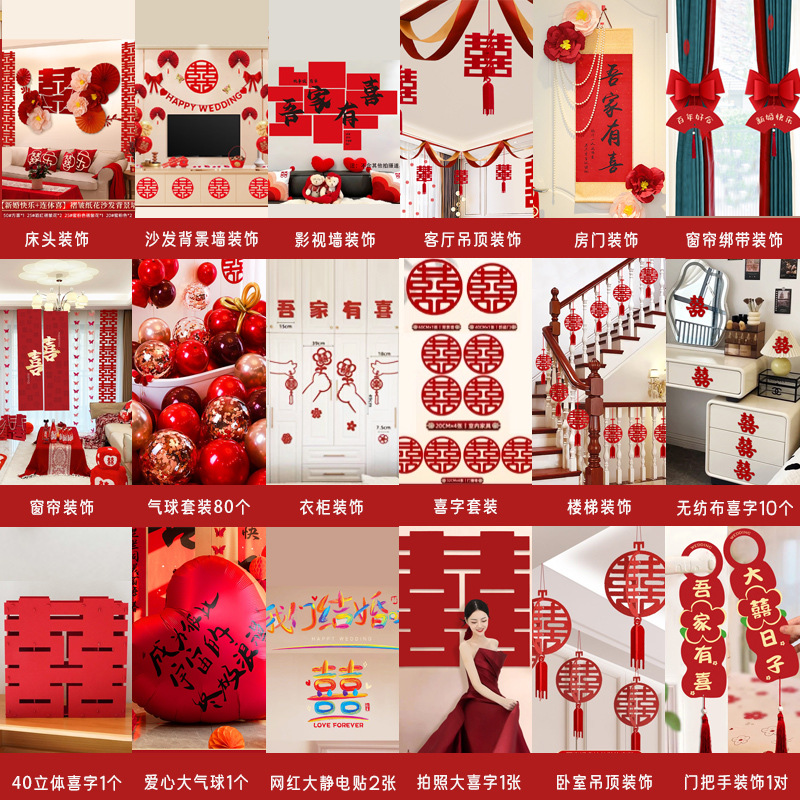 남성과 여성을 위한 웨딩룸 레이아웃 세트, 웨딩 장식, 새 집 침실, 집 전체 장식 용품, 커튼 걸이 천 전체 세트스토어 가기