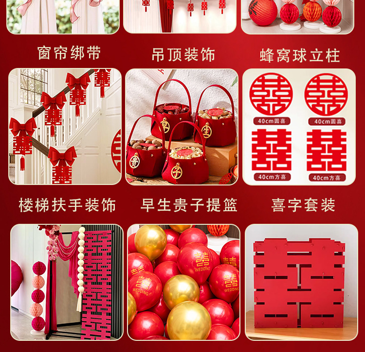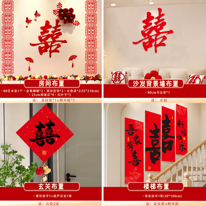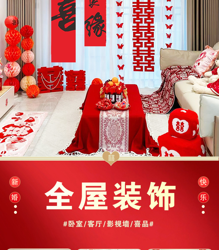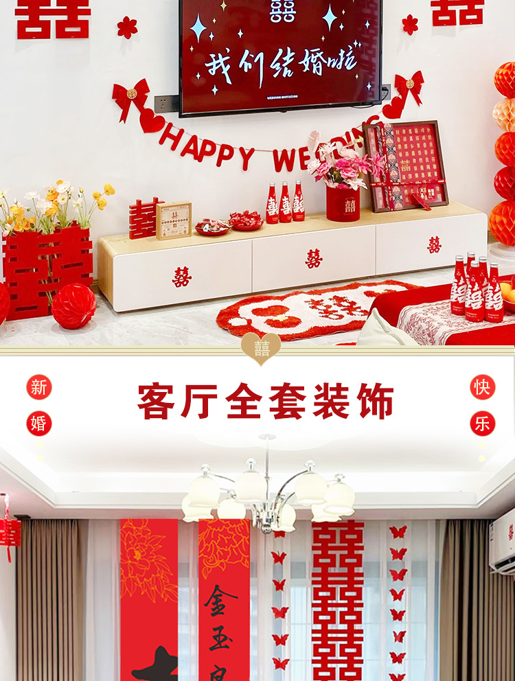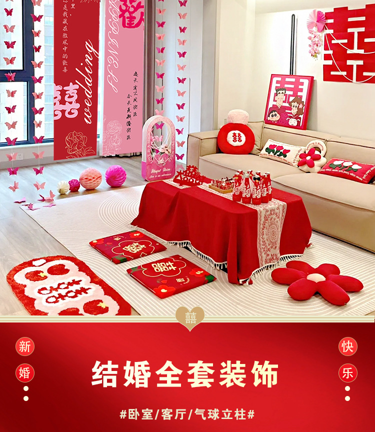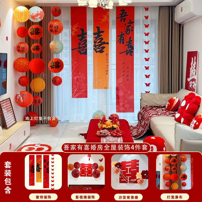남성과 여성을 위한 웨딩룸 레이아웃 세트, 웨딩 장식, 새 집 침실, 집 전체 장식 용품, 커튼 걸이 천 전체 세트