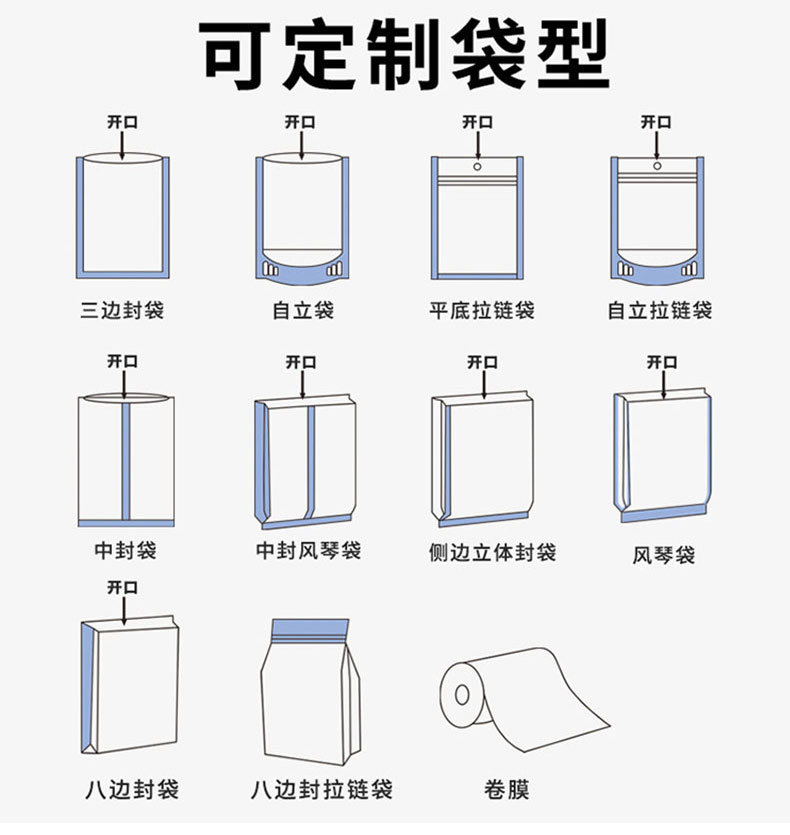 플라스틱 식품 포장 가방 사용자 정의 인쇄 복합 스낵 견과류 식품 진공 가방 차 지 플락 가방 알루미늄 호일 가방