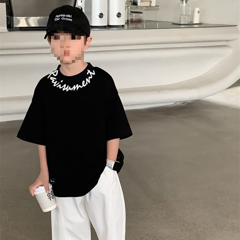 남아용 티셔츠 반팔 힙합 트렌디 아동용 신형 순면 여름 티셔츠 중대형 아동용 반팔 루즈하고 패셔너블스토어 가기