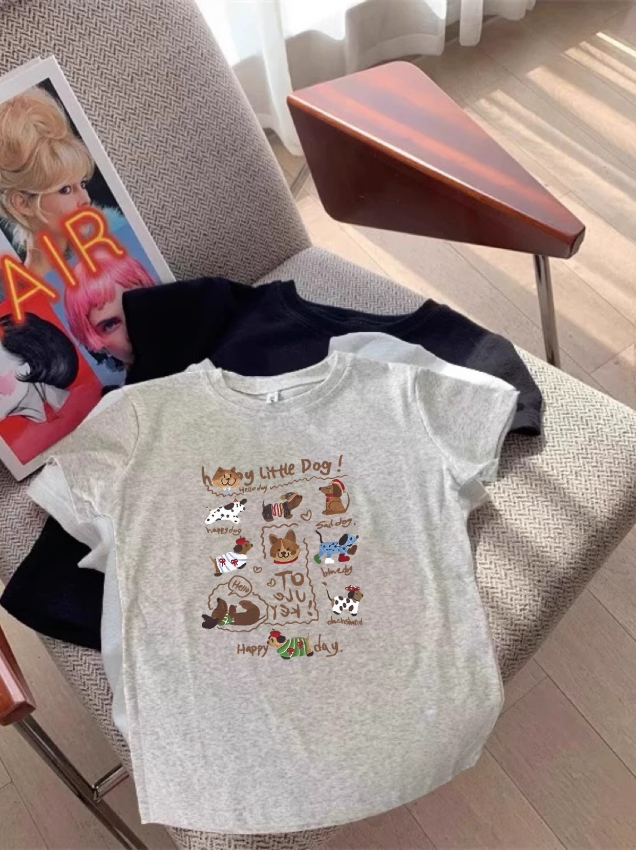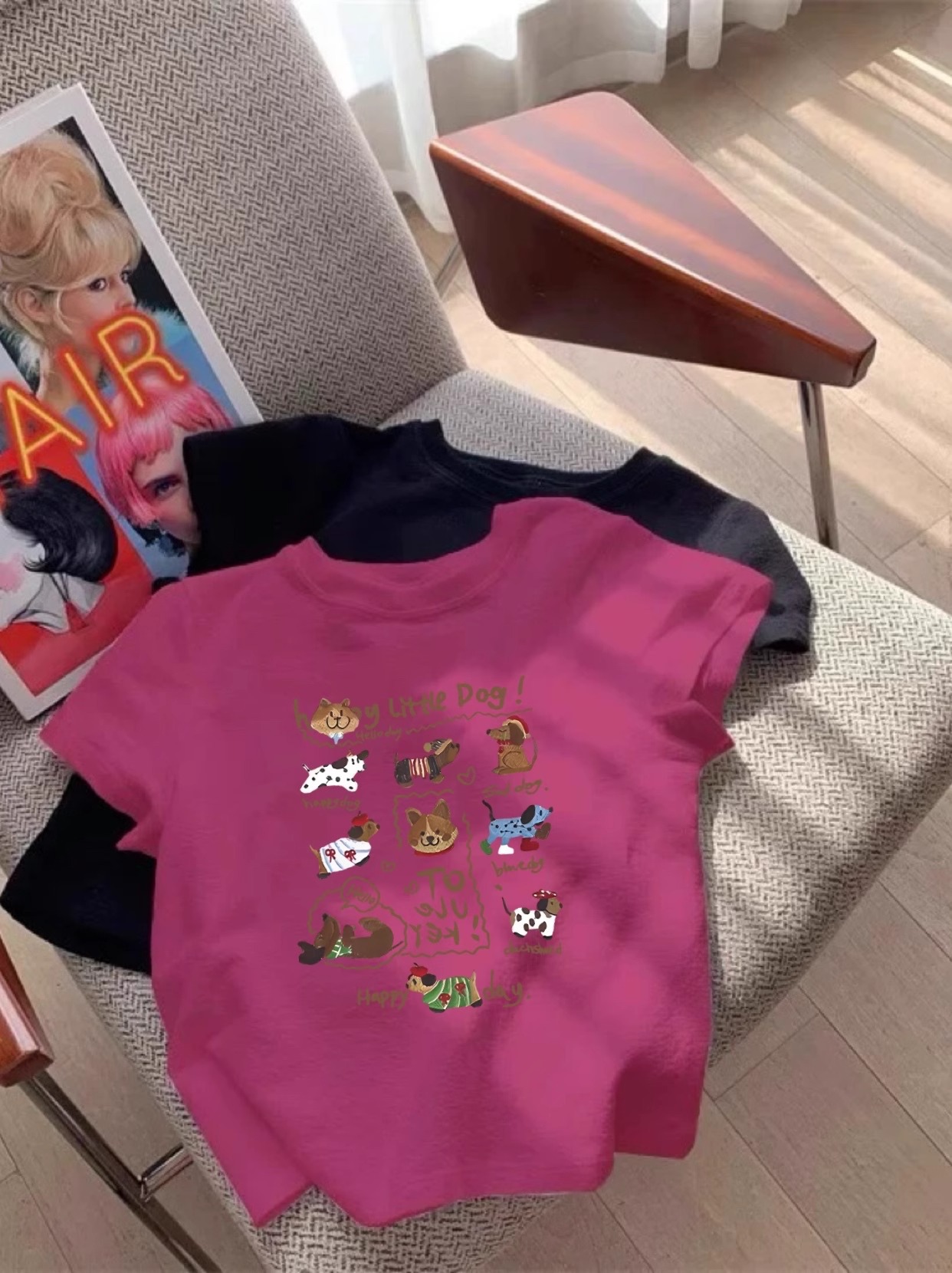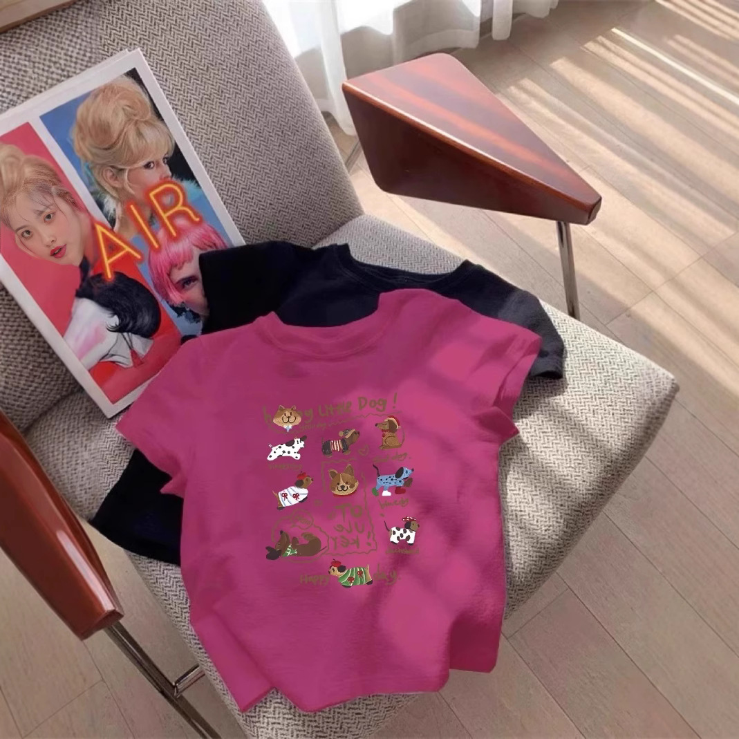 여성용 네이비 블루 퓨어 코튼 반팔 티셔츠 2025 인터넷 연예인 핫 스타일 아메리칸 프린트 탑 오른쪽 어깨 라운드 넥 핫 소녀 셔츠