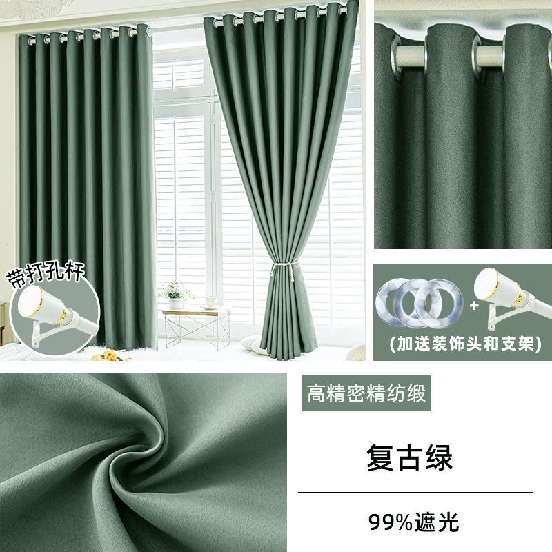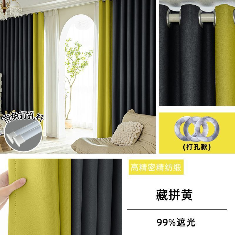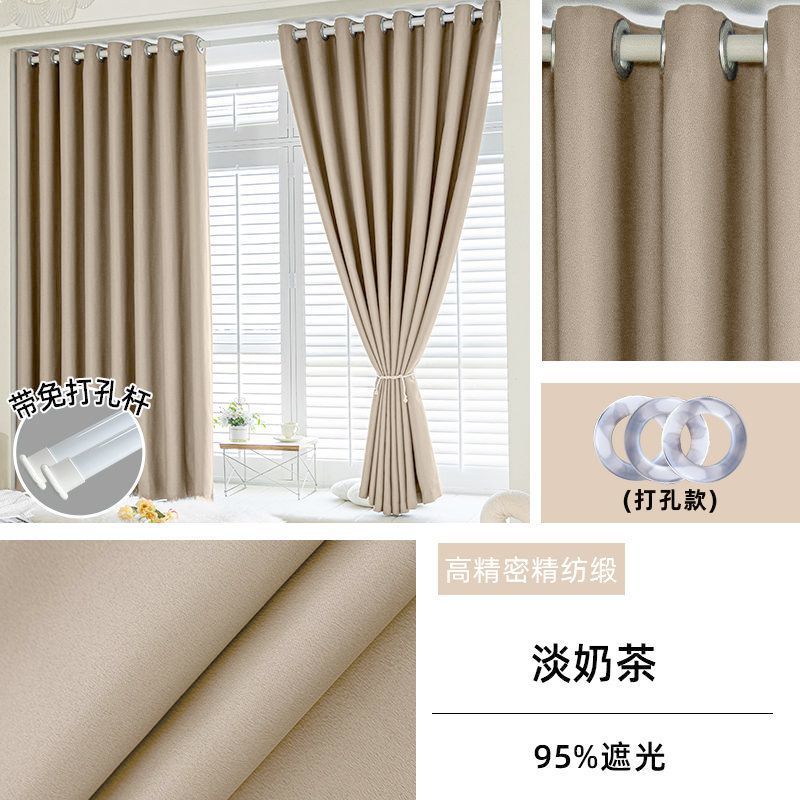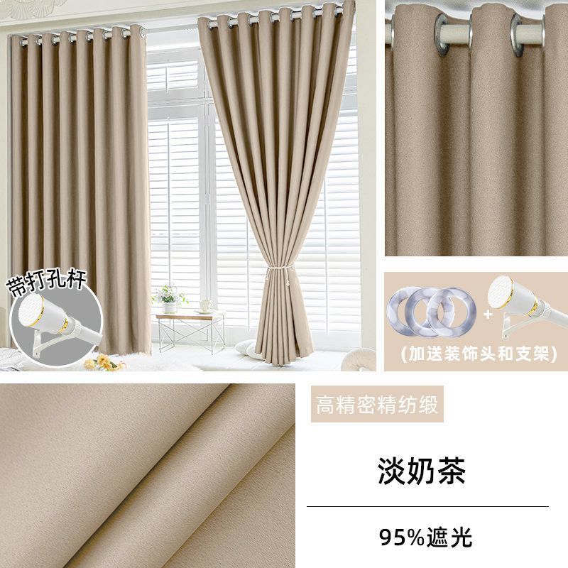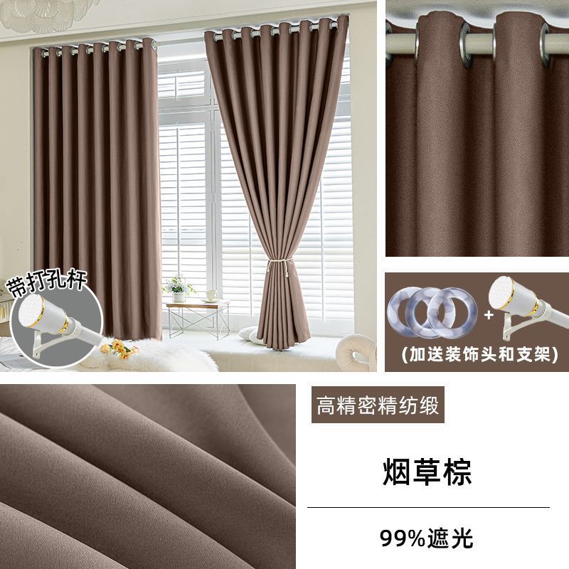 구멍이 없는 완전 암막 커튼, 텔레스코픽 막대 포함, 간단한 설치, 침실 및 거실 베이 창 파티션 도어 커튼 세트