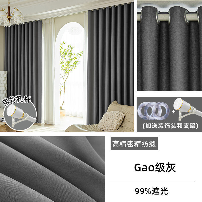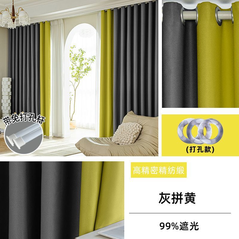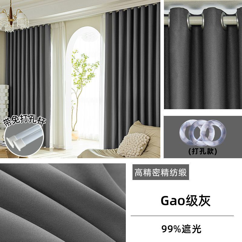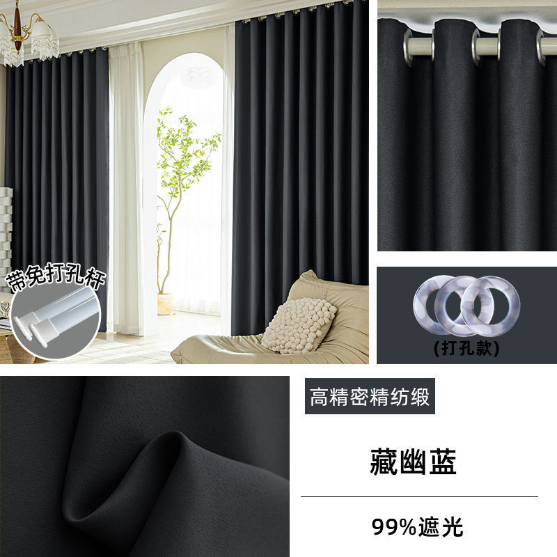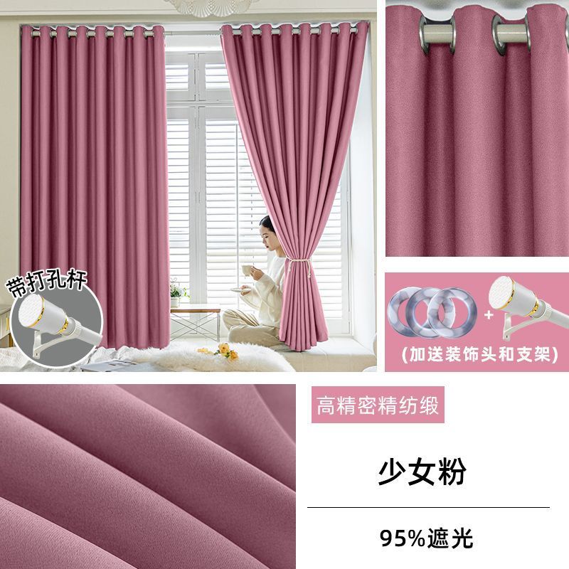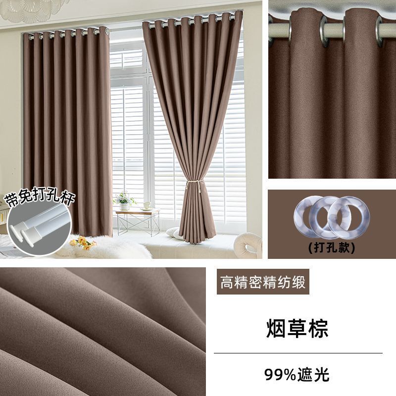 구멍이 없는 완전 암막 커튼, 텔레스코픽 막대 포함, 간단한 설치, 침실 및 거실 베이 창 파티션 도어 커튼 세트