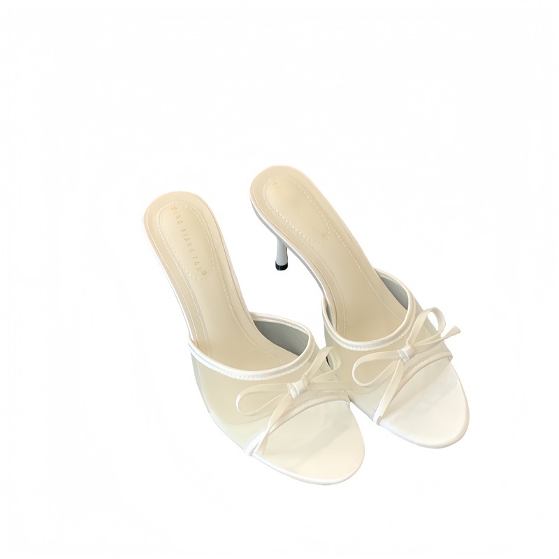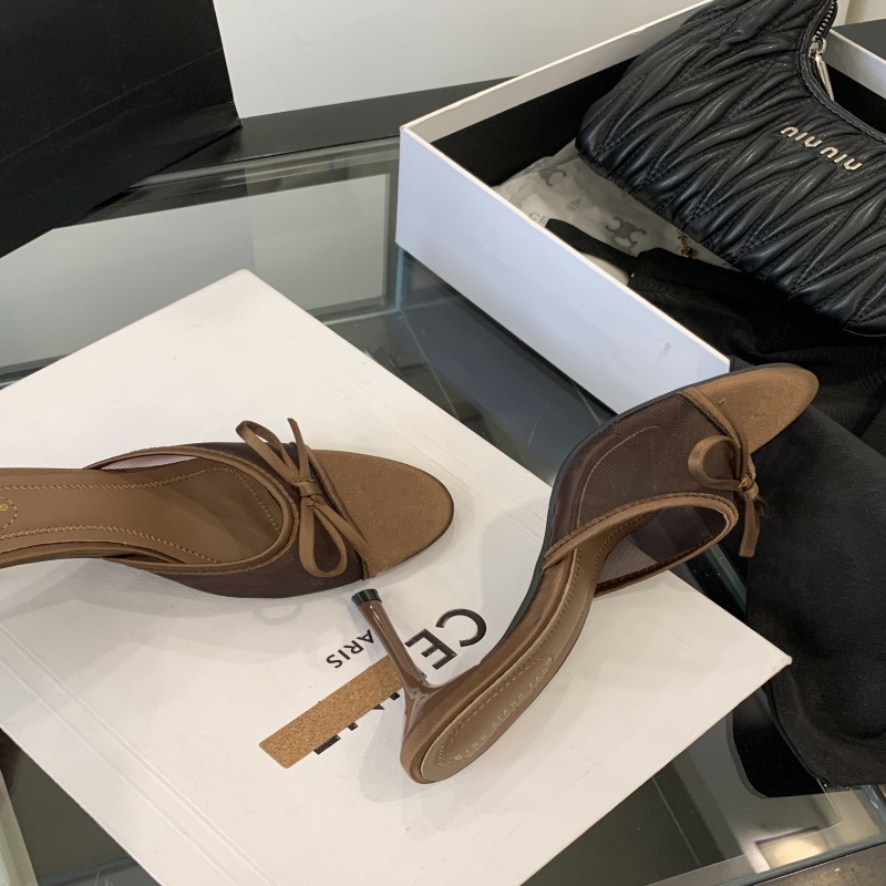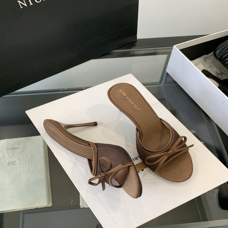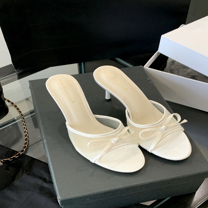 2025년 신상 여름 신발, 리본 하이힐, 메쉬 원단, 하프 드래그 오픈 토, 스틸레토 하이힐 샌들