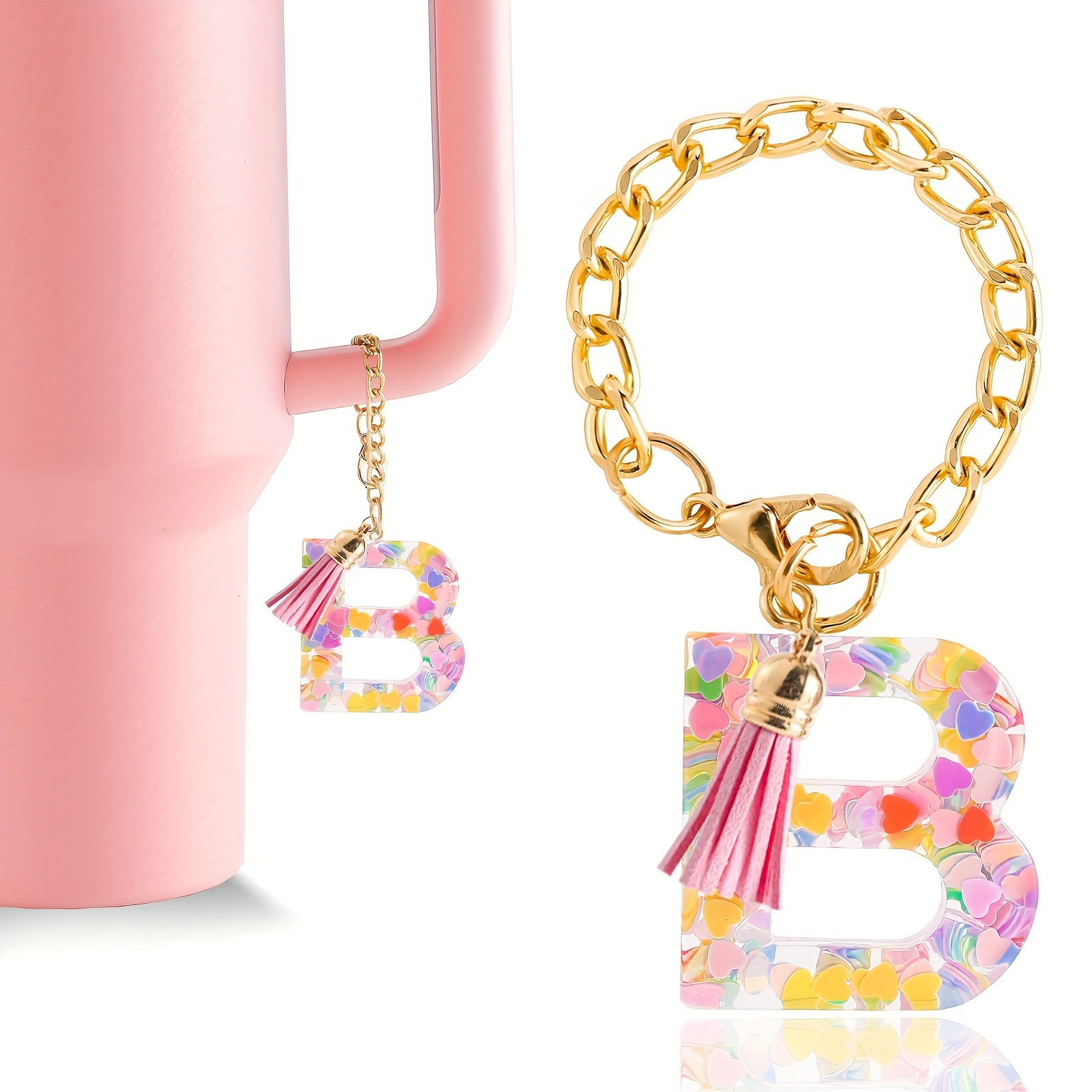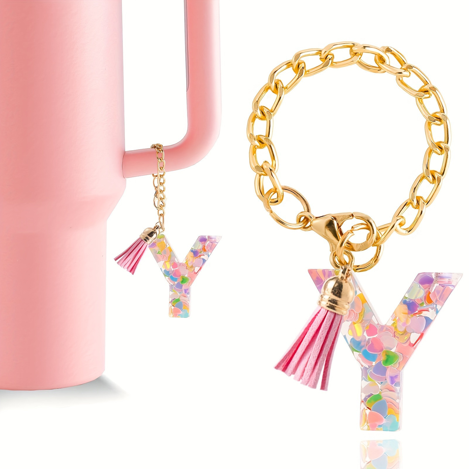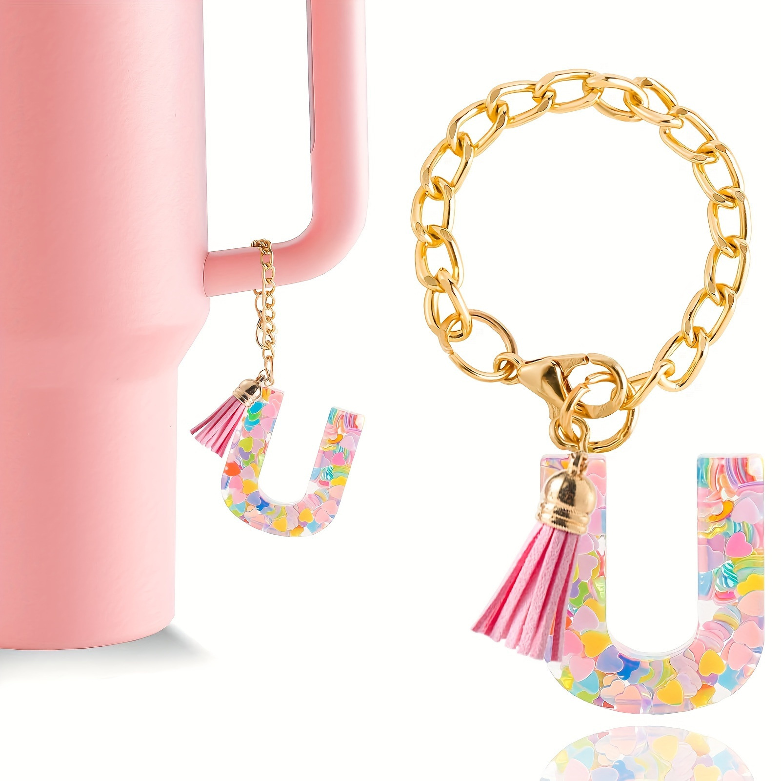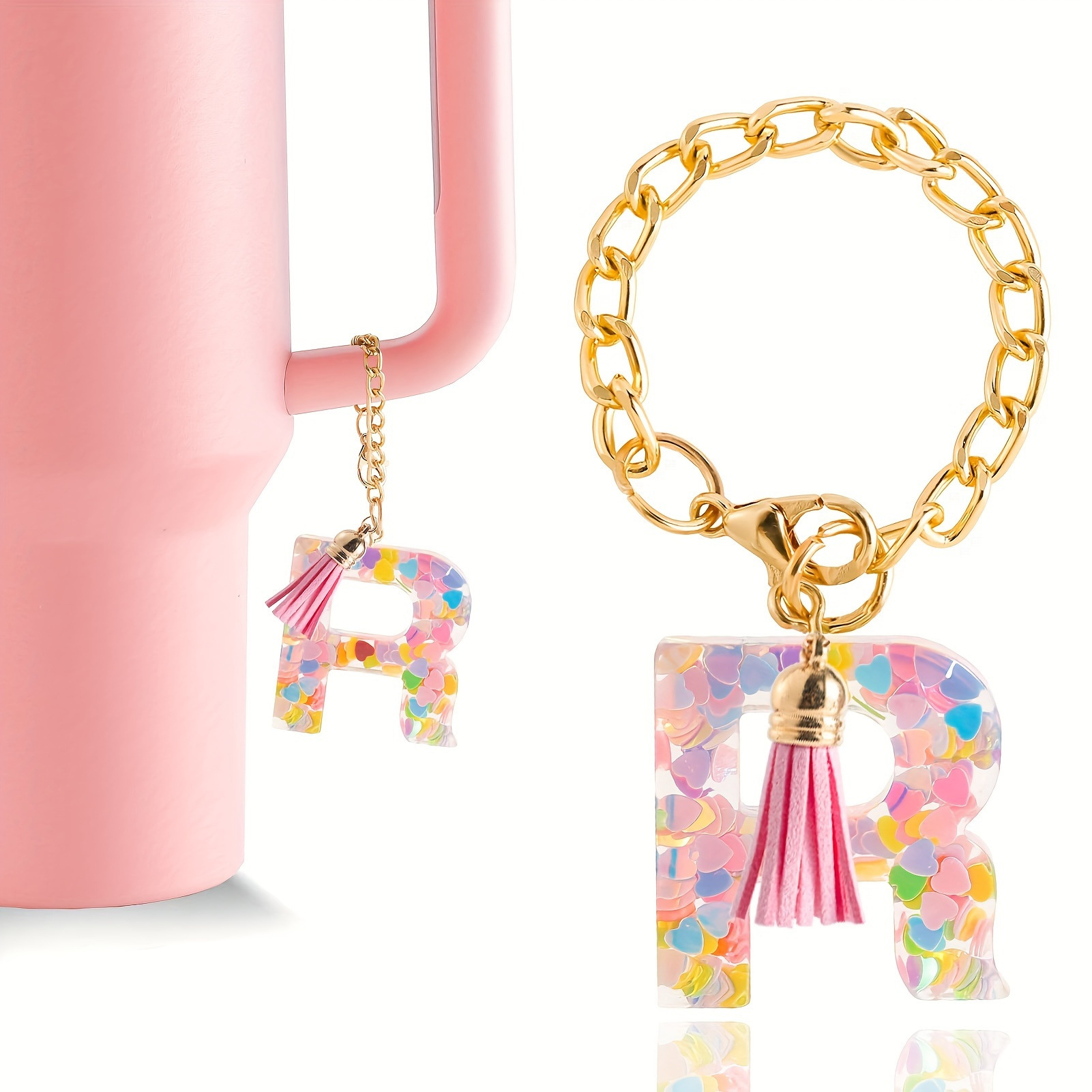 국경 간 특별히 제공되는 핫 글루 수지 영어 문자 diy 밀짚 컵 펜던트 열쇠 고리 스포츠 컵 액세서리