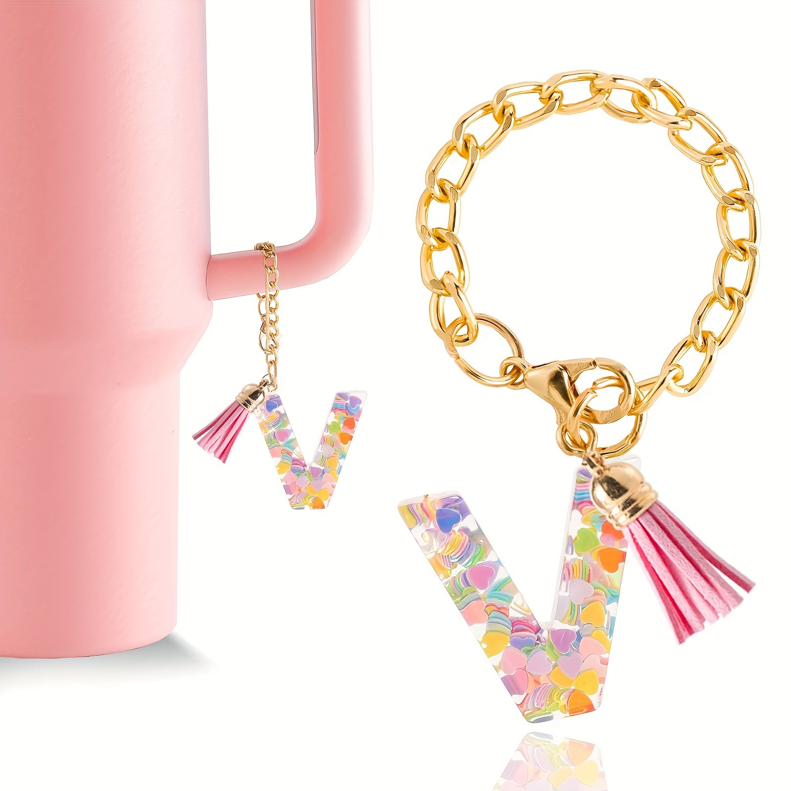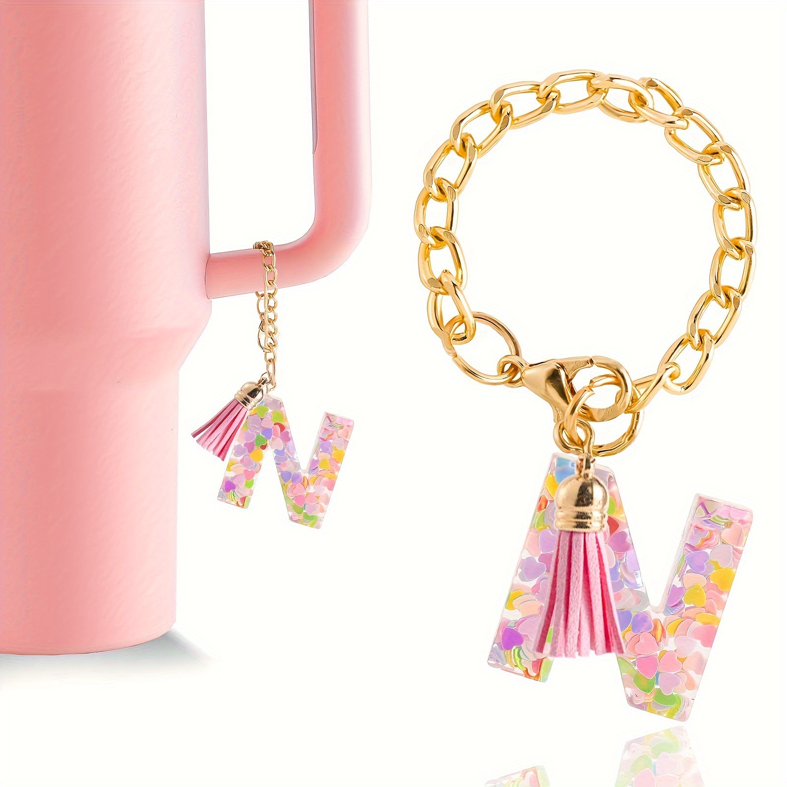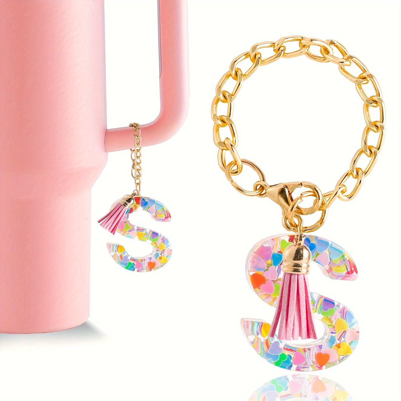 국경 간 특별히 제공되는 핫 글루 수지 영어 문자 diy 밀짚 컵 펜던트 열쇠 고리 스포츠 컵 액세서리