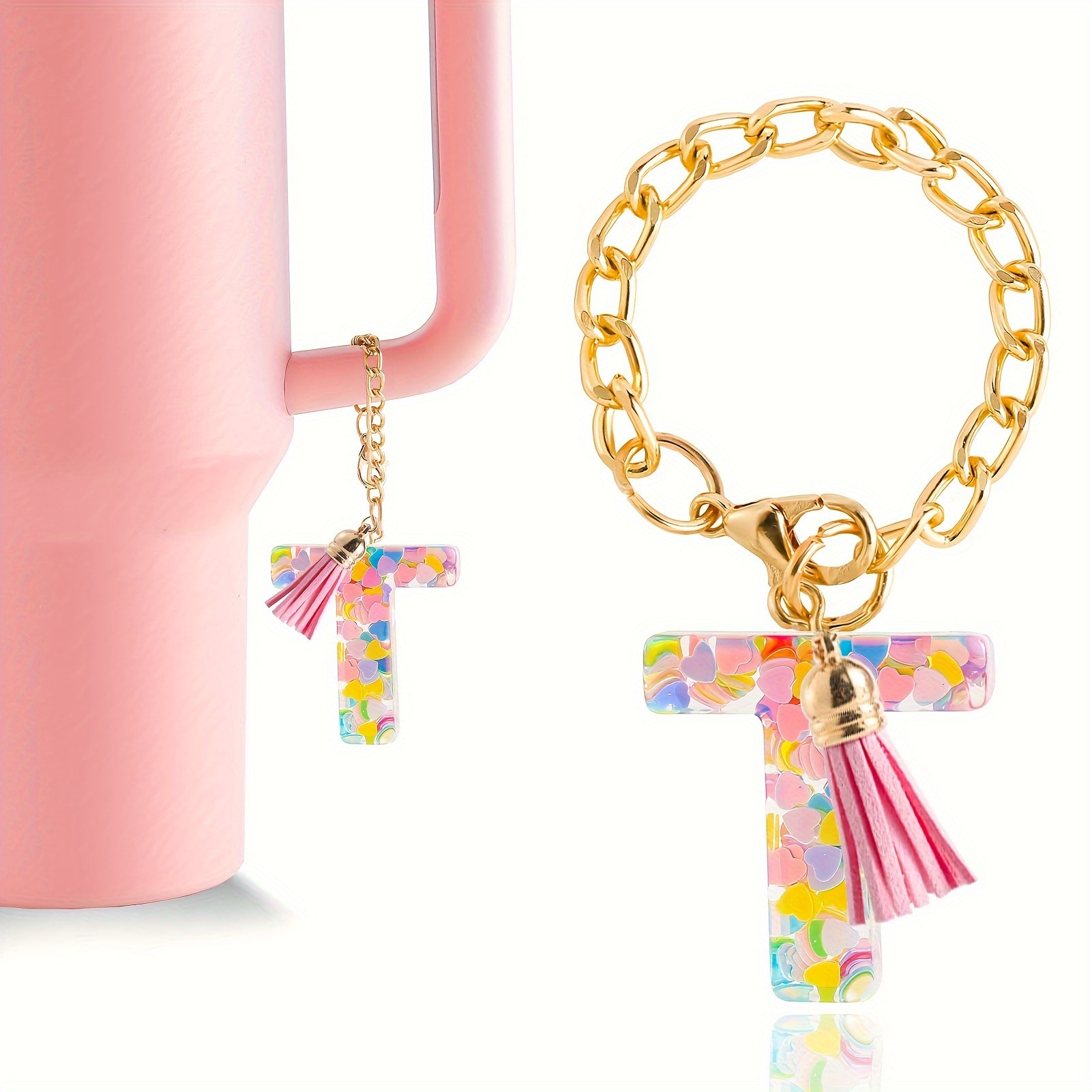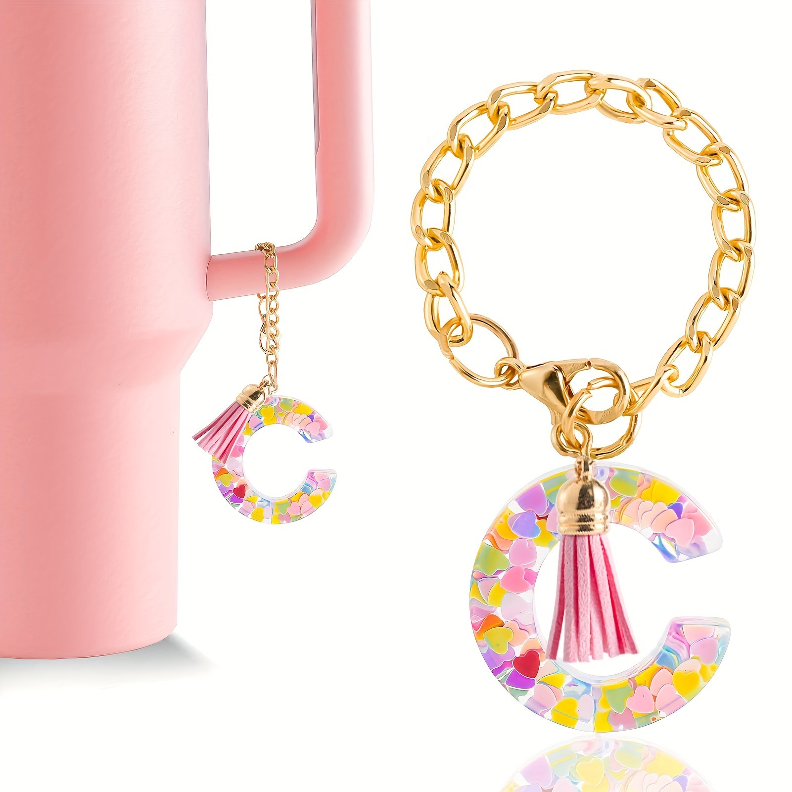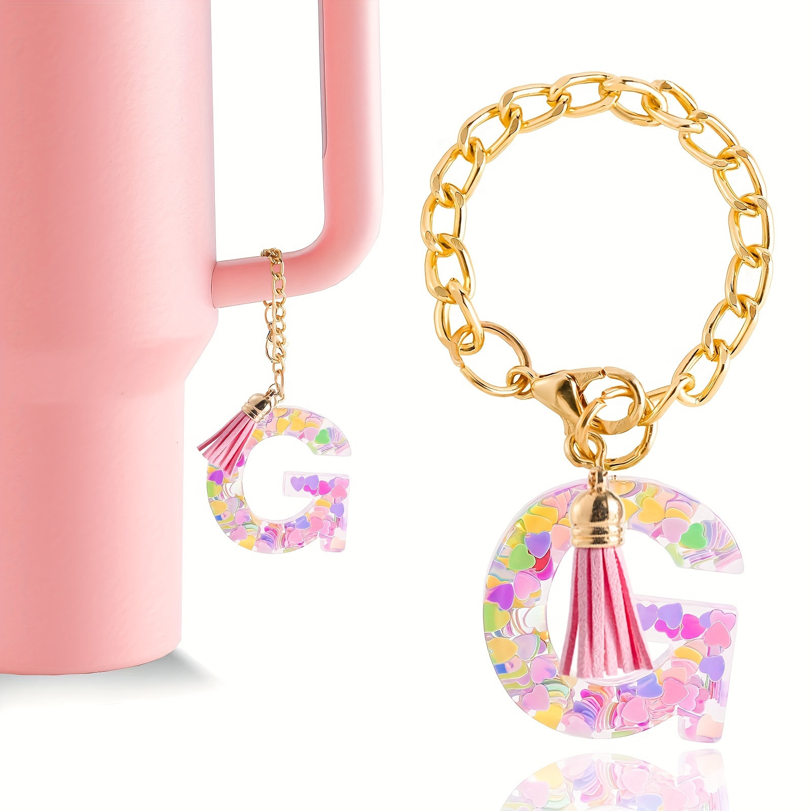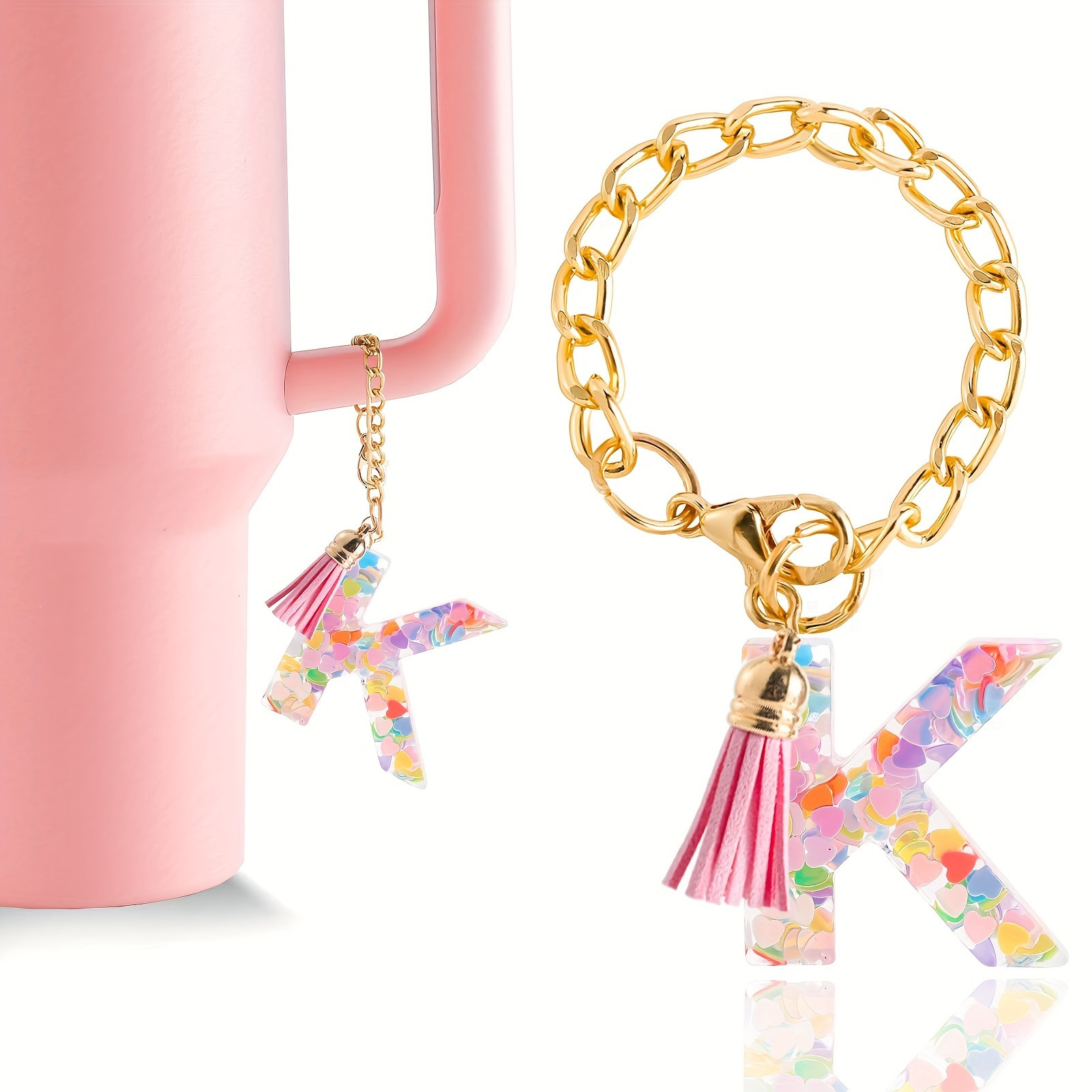 국경 간 특별히 제공되는 핫 글루 수지 영어 문자 diy 밀짚 컵 펜던트 열쇠 고리 스포츠 컵 액세서리