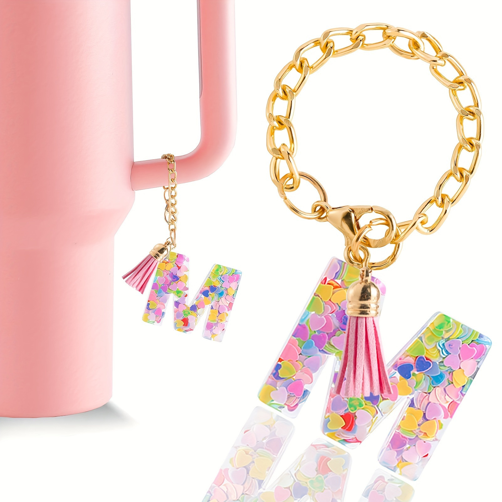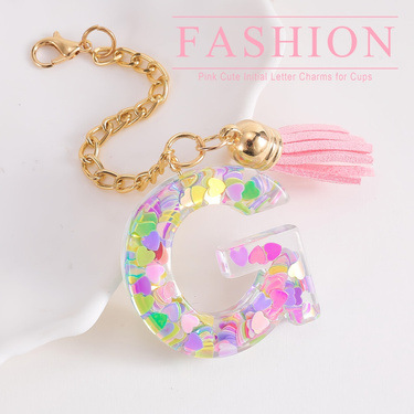 국경 간 특별히 제공되는 핫 글루 수지 영어 문자 diy 밀짚 컵 펜던트 열쇠 고리 스포츠 컵 액세서리스토어 가기