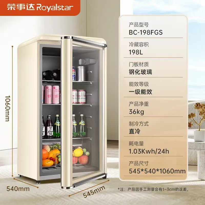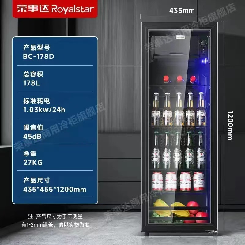 Royalstar 아이스 바 레드 와인 캐비닛 냉장고 단일 도어 투명 유리 도어 가정용 소형 음료 차 샘플 냉장고스토어 가기